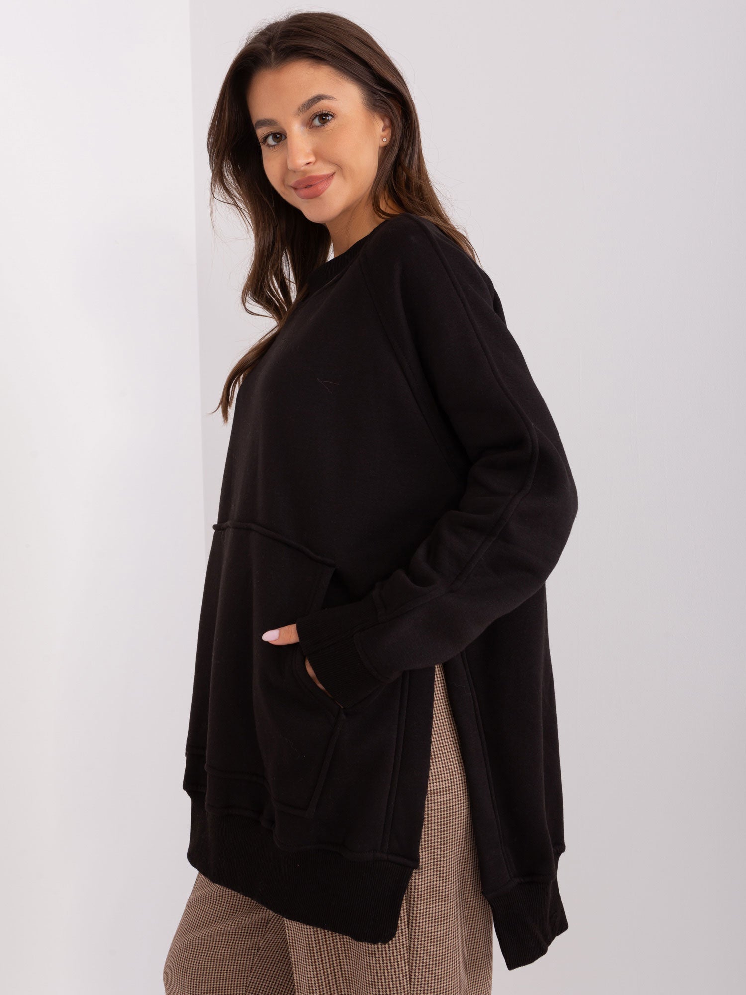 Czarna dresowa bluza bez kaptura z rozcięciami .