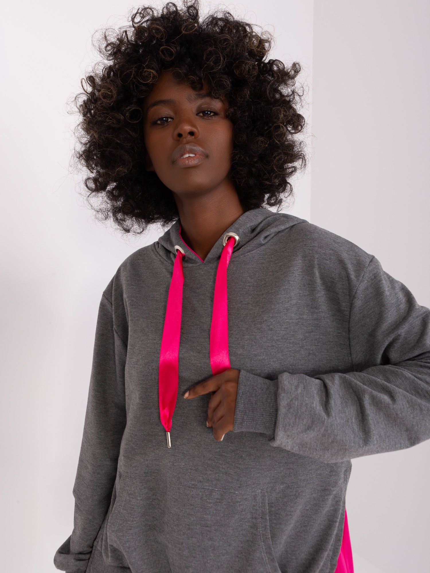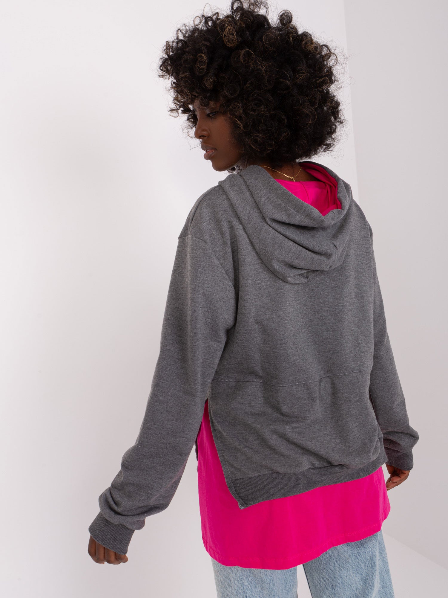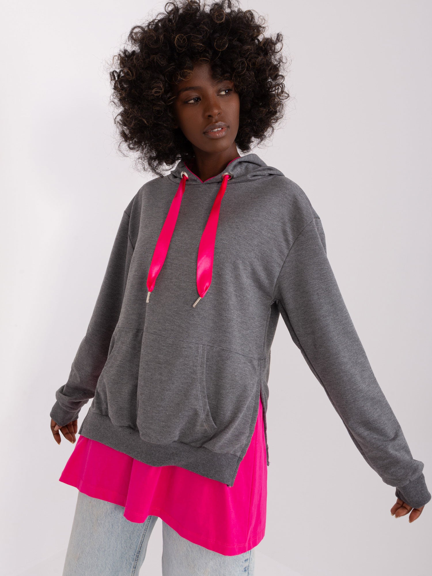 Ciemnoszaro-fuksjowa bluza kangurka z troczkami .