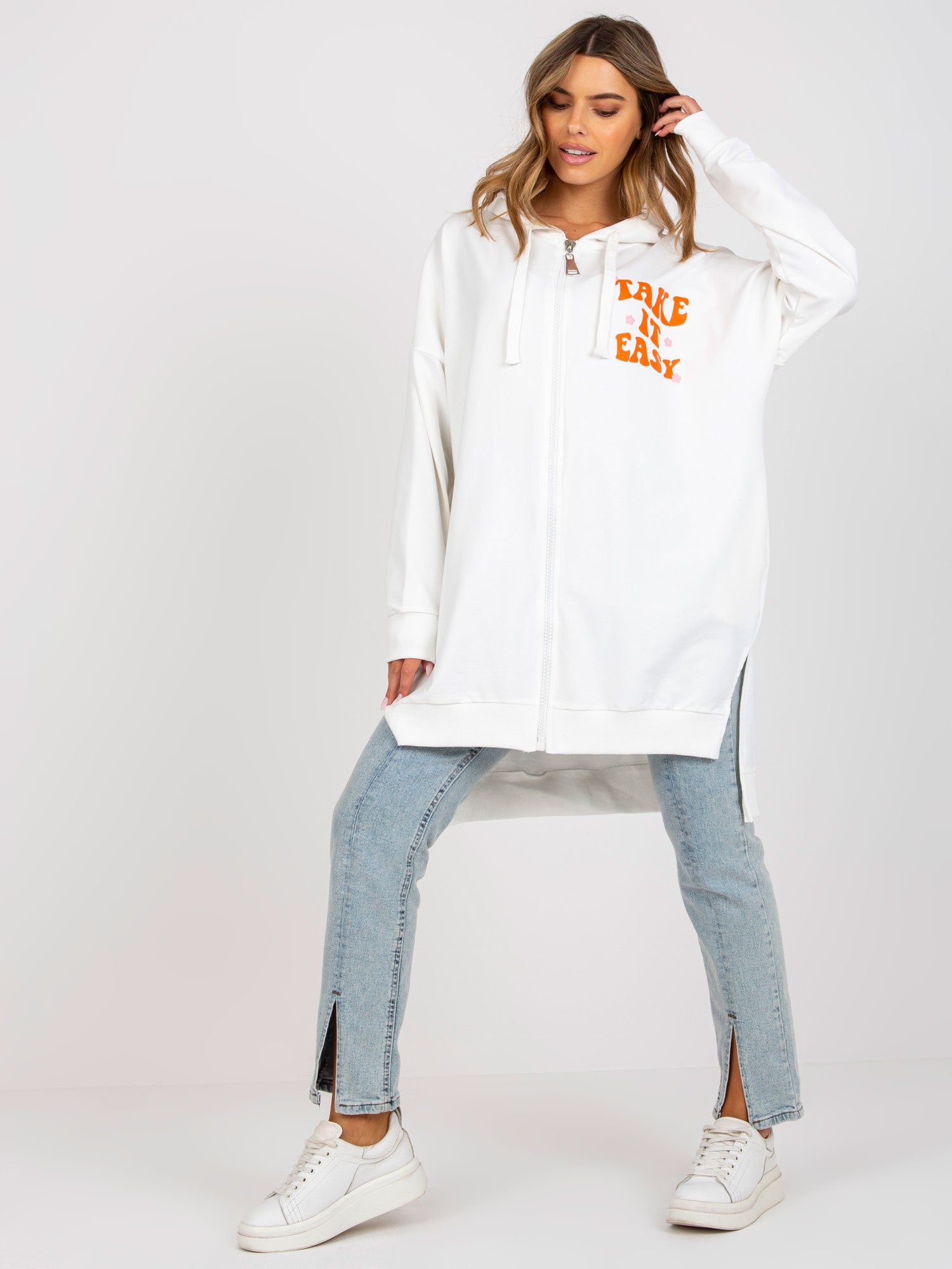 Wymiary bluzy w rozmiarze one size mierzone na płasko: szerokość pod pachami - 67 cm, długość całkowita (przód) - 81 cm, długość całkowita (tył) - 89 cm, długość rękawa - 63 cm.