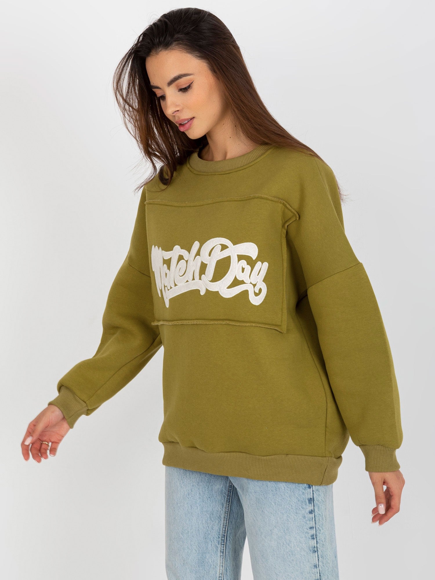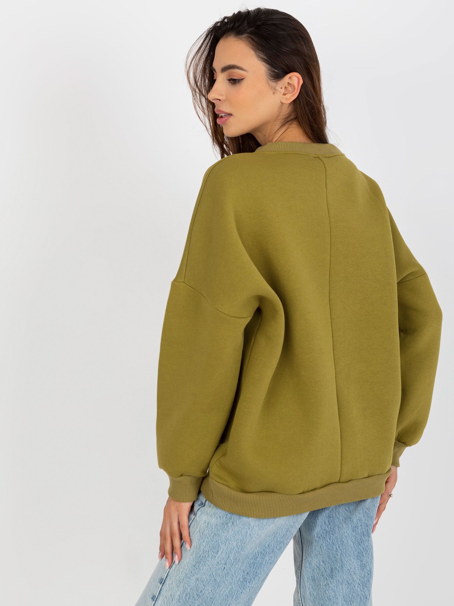 Oliwkowa dresowa bluza bez kaptura oversize .