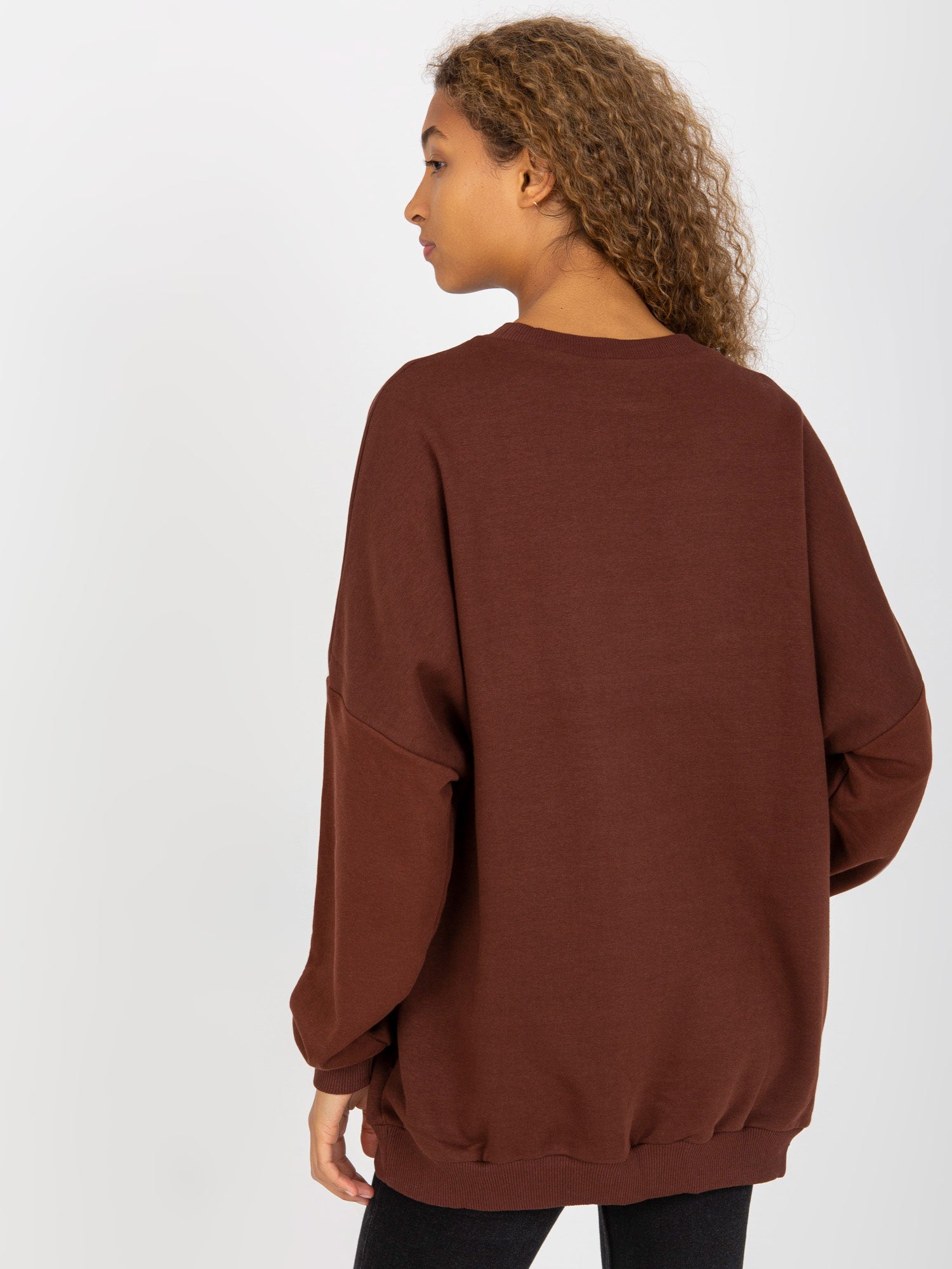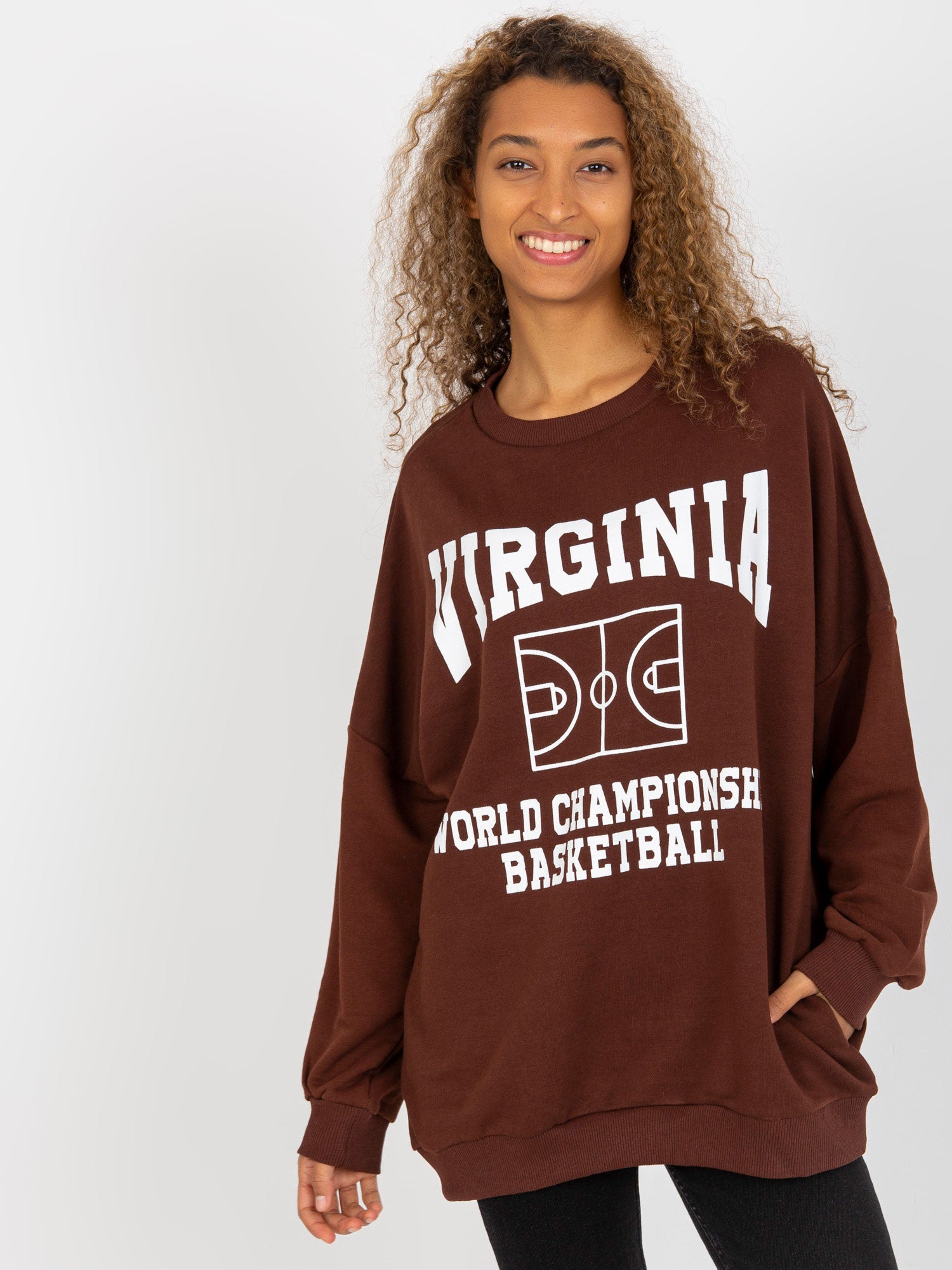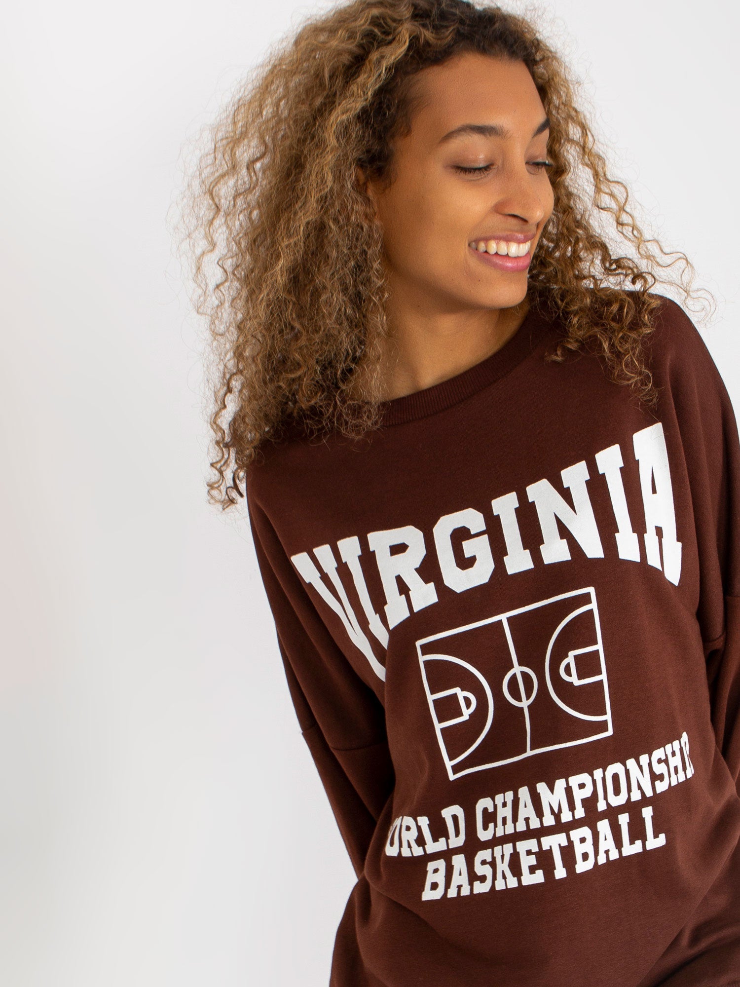 Ciemnobrązowa luźna bluza z nadrukiem i okrągłym dekoltem .