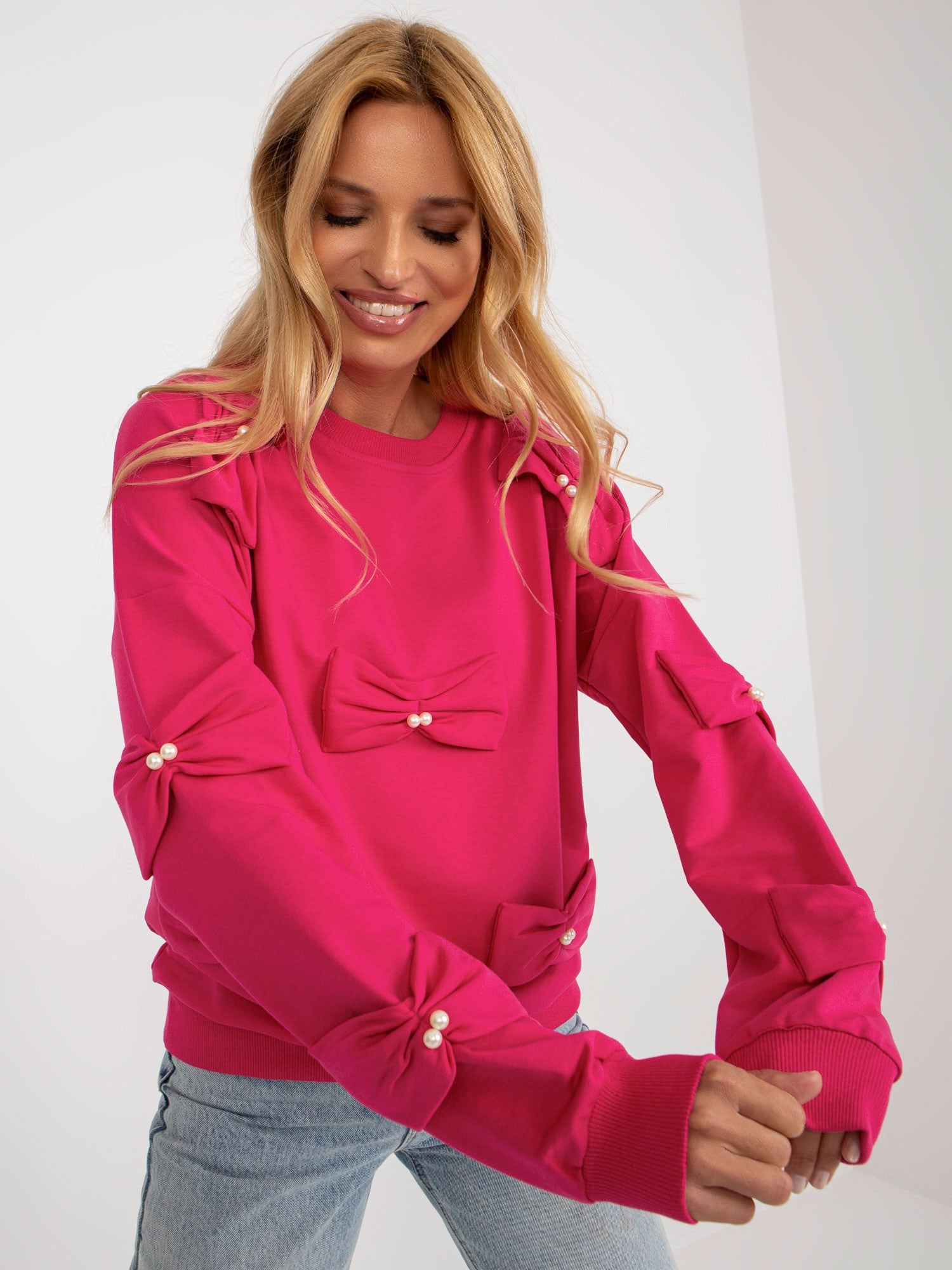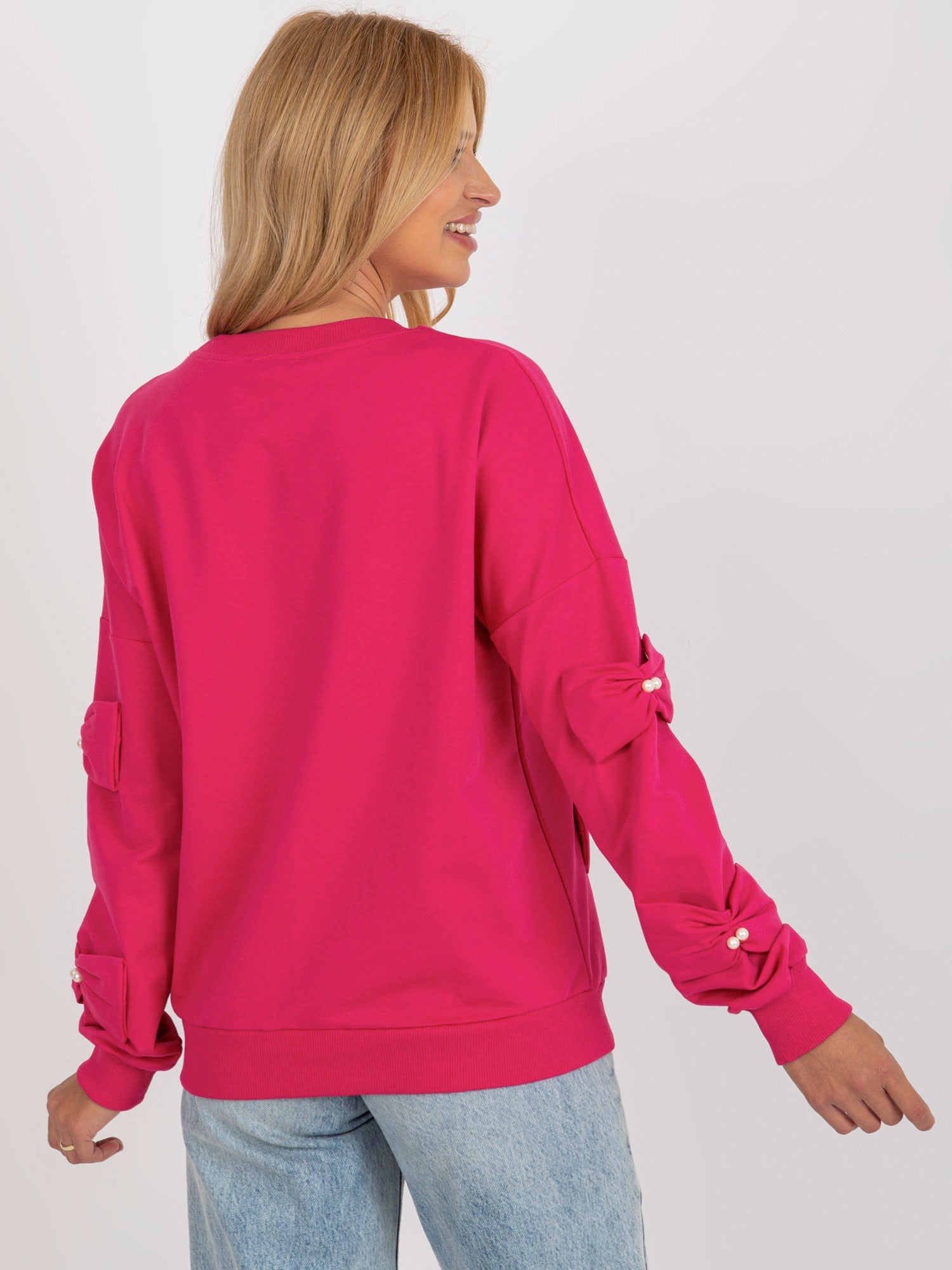 Fuksjowa damska bluza bez kaptura z kokardkami .