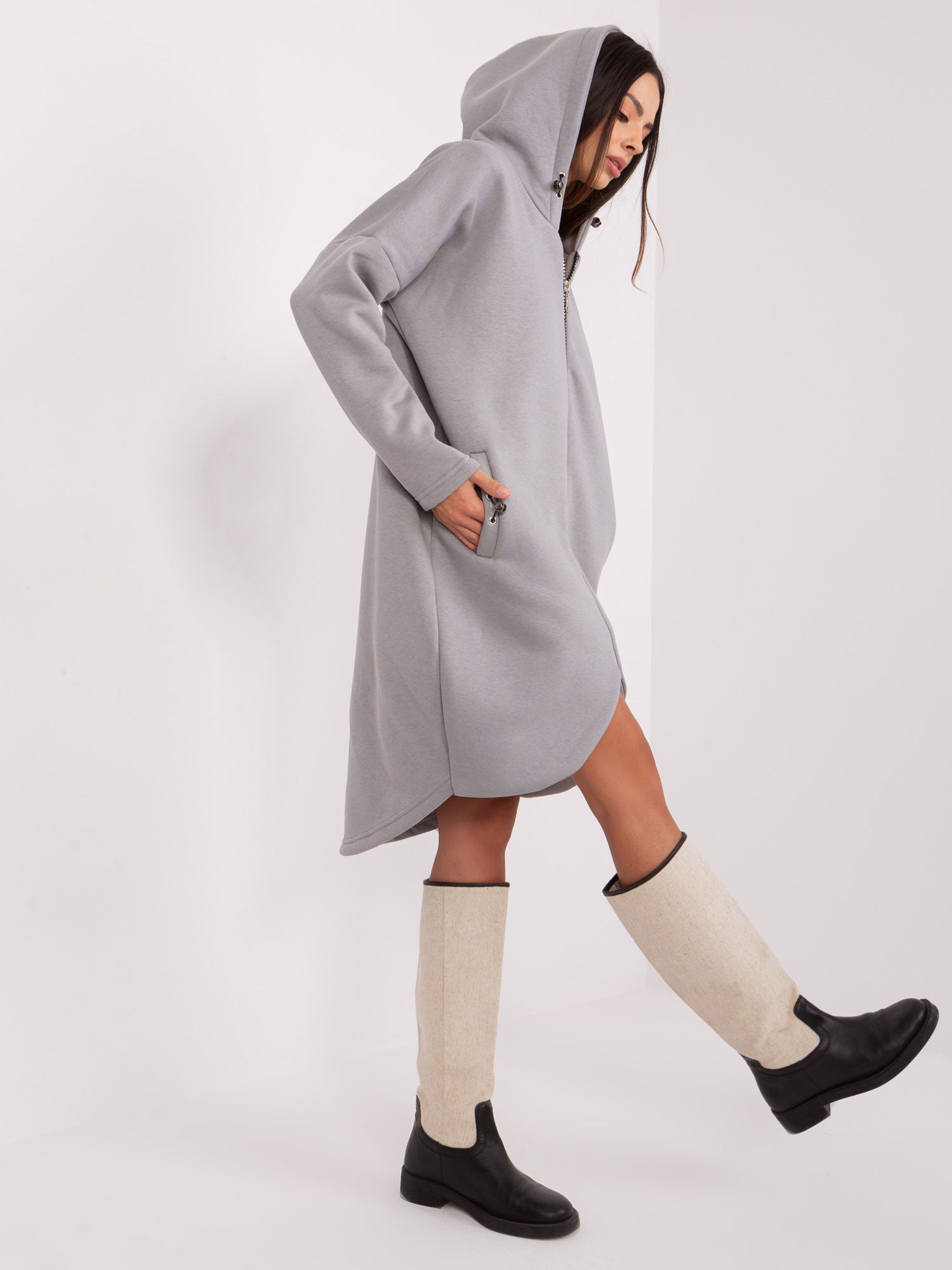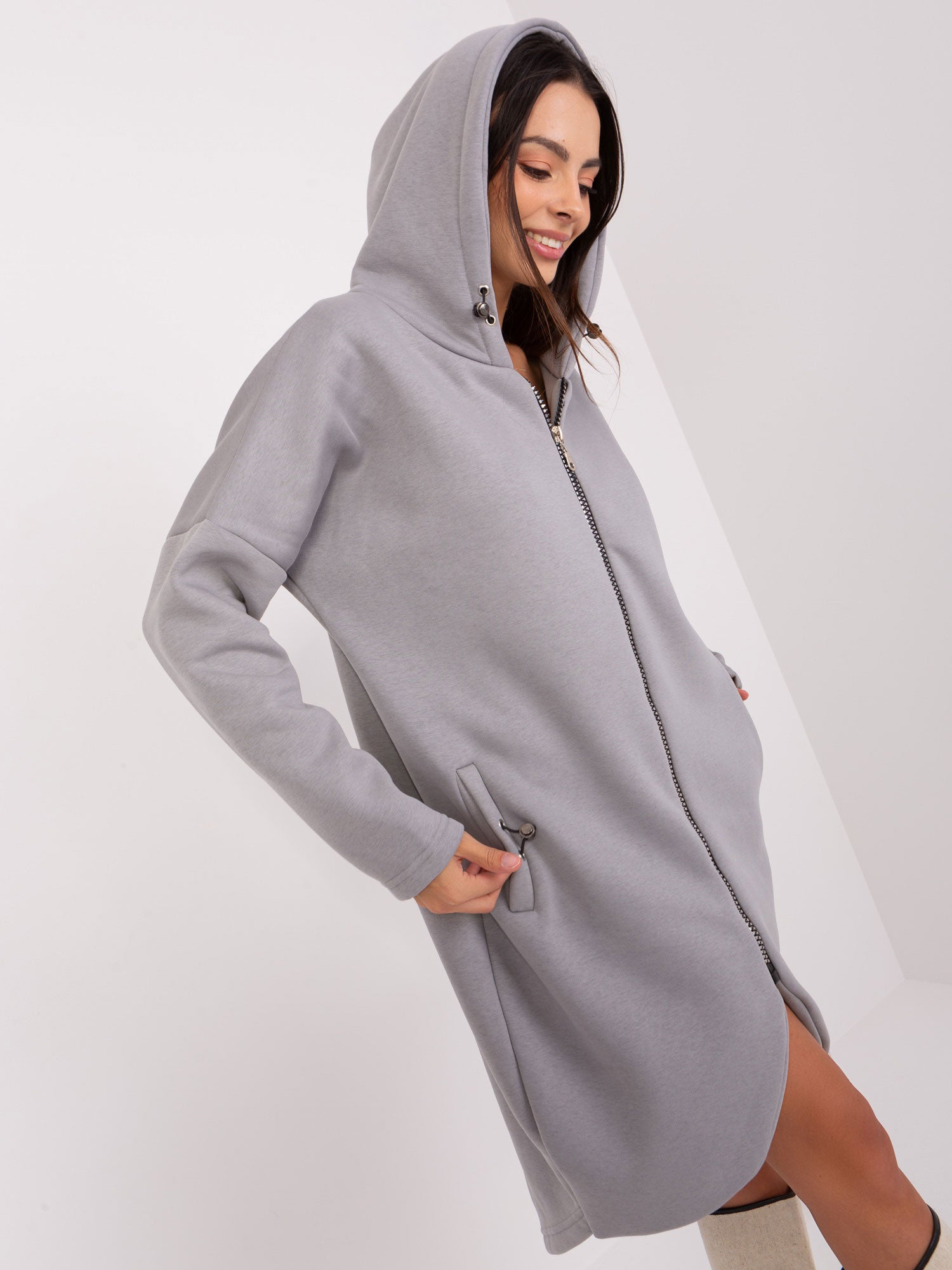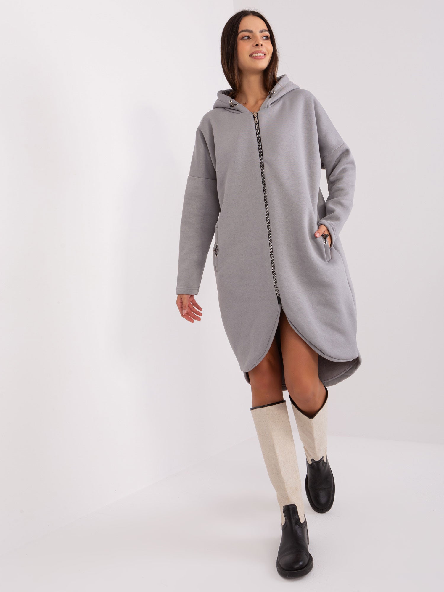 Jasnoszara długa bluza basic z suwakiem Tina RUE PARIS .