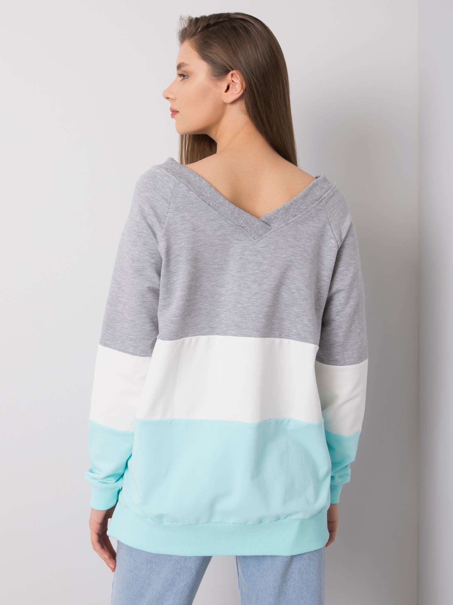 RUE PARIS Szaro-miętowa bluza z dekoltem w serek.