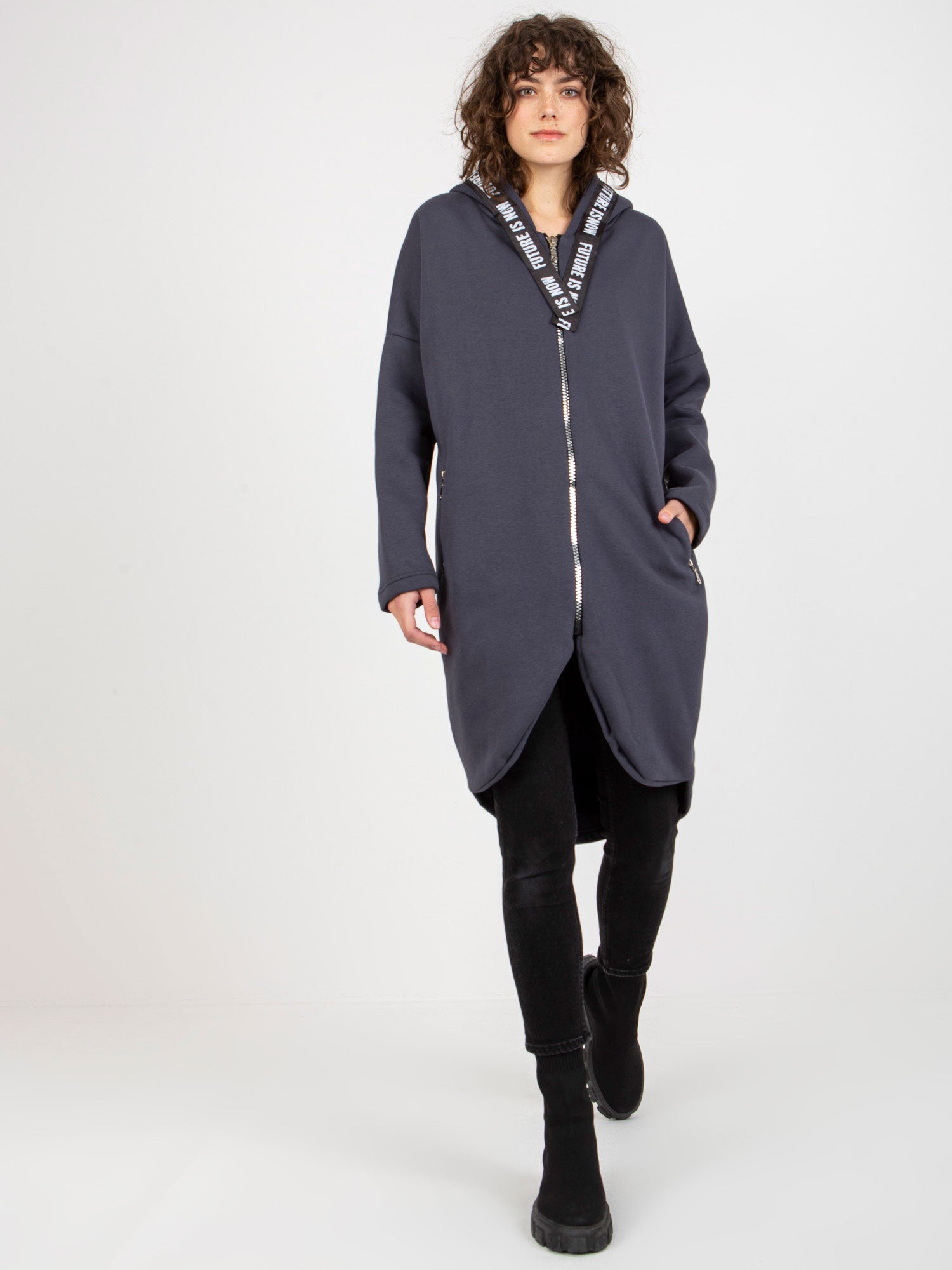 Grafitowa długa dresowa bluza rozpinana oversize .