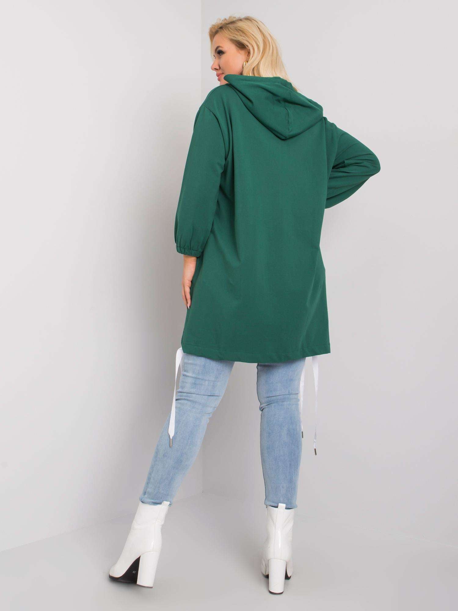 Wymiary bluzy w rozmiarze one size mierzone na płasko: szerokość pod pachami - 64 cm, długość całkowita - 85 cm, długość rękawa - 45 cm