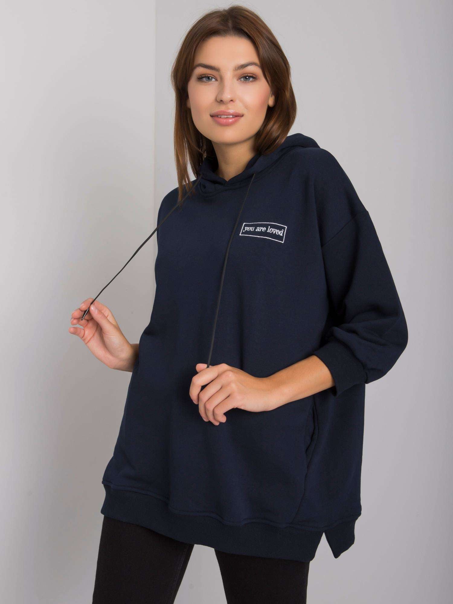 Granatowa bawełniana bluza z kieszeniami.