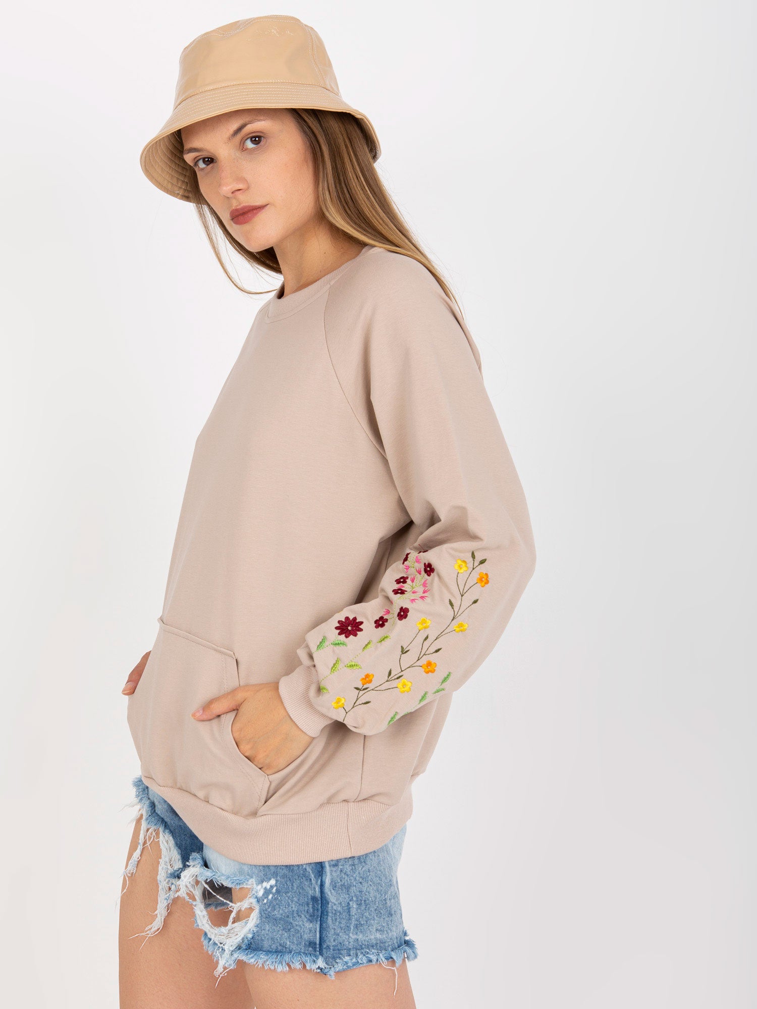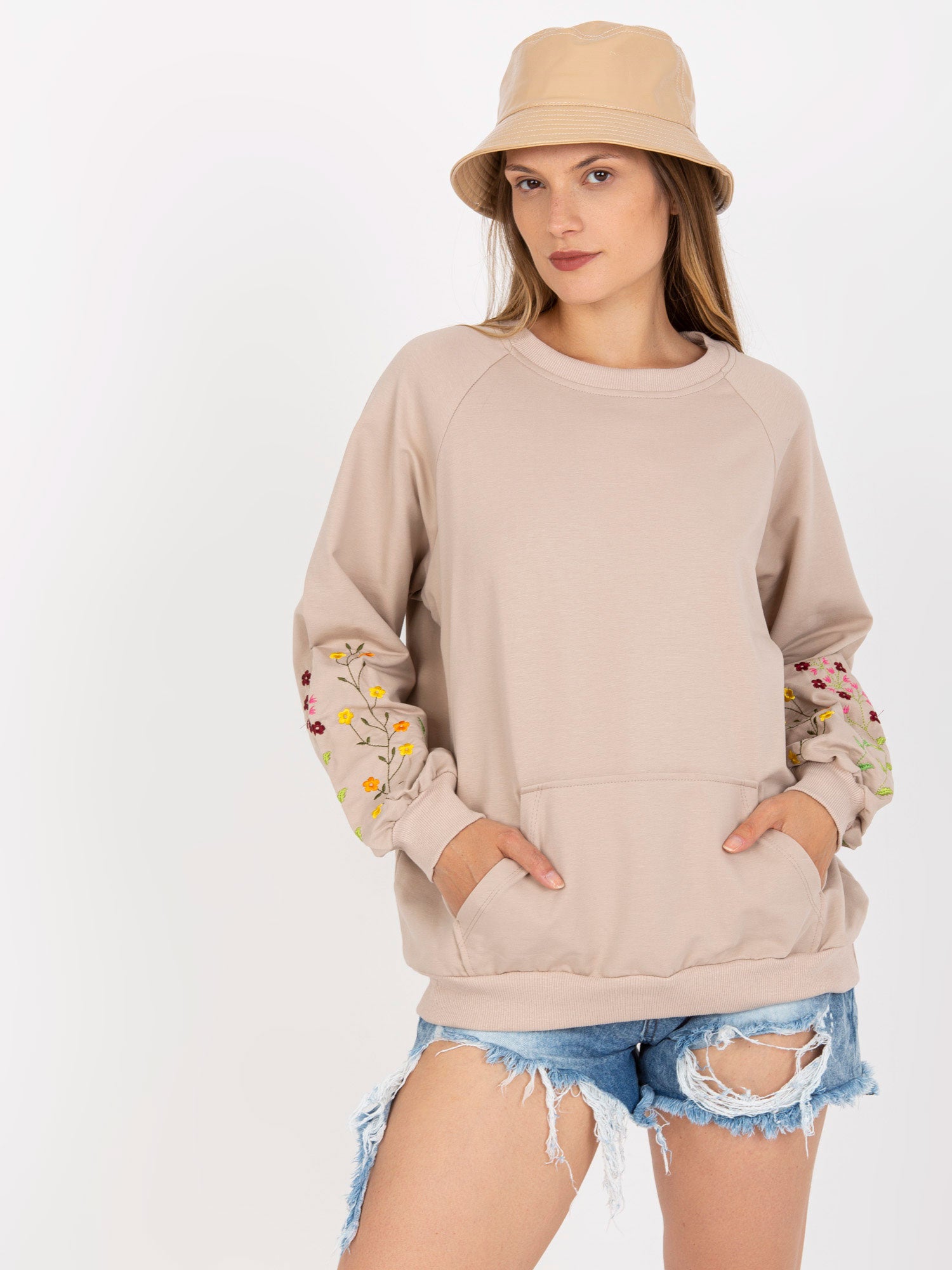 Beżowa bluza bez kaptura z haftem na rękawach RUE PARIS .