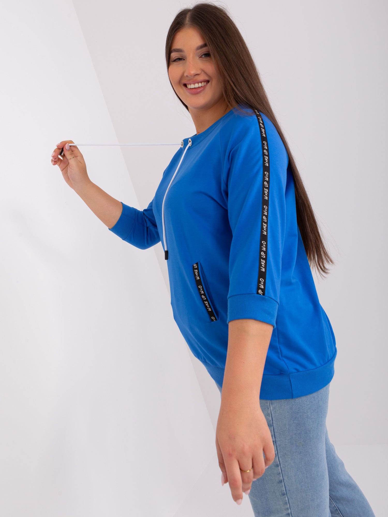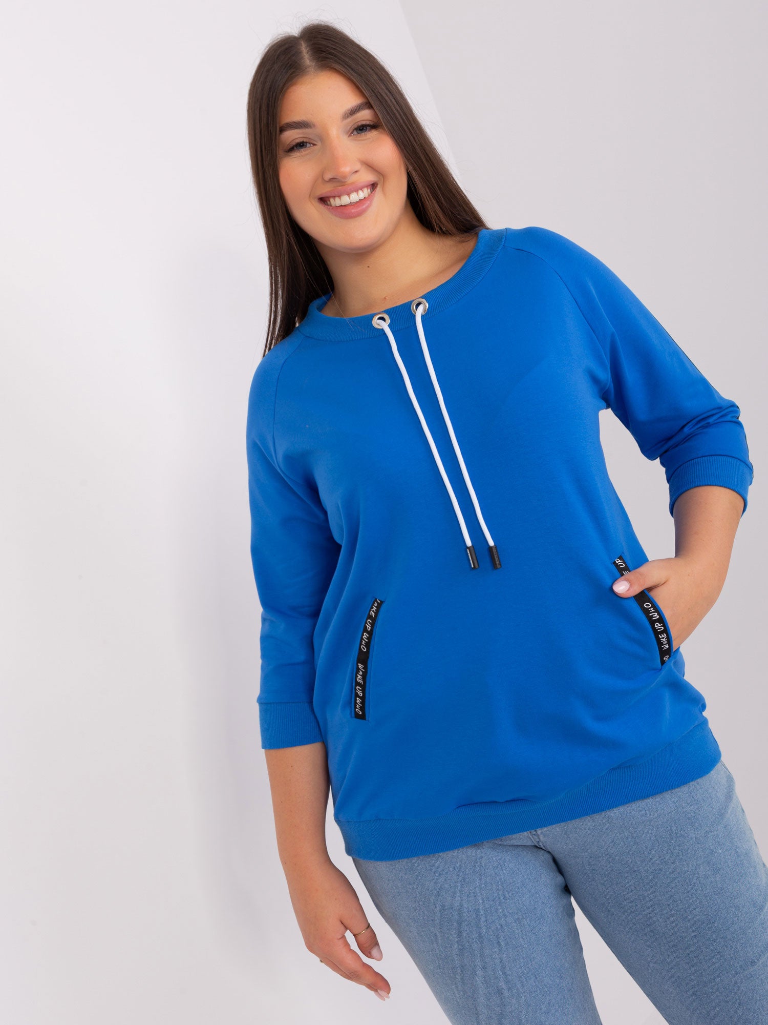 Ciemnoniebieska bluza plus size damska z kieszeniami.