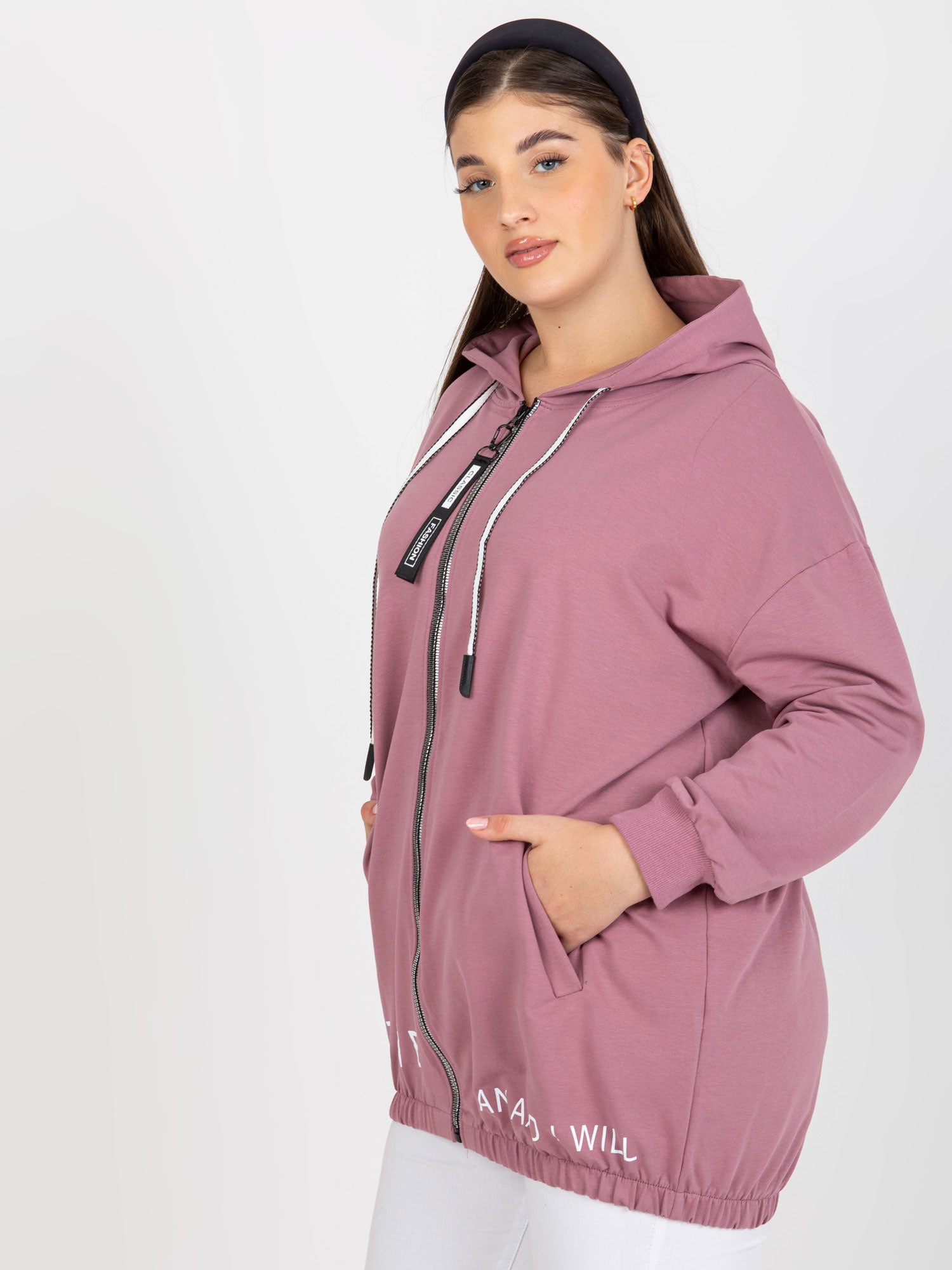 Brudnoróżowa rozpinana bluza plus size z kapturem .