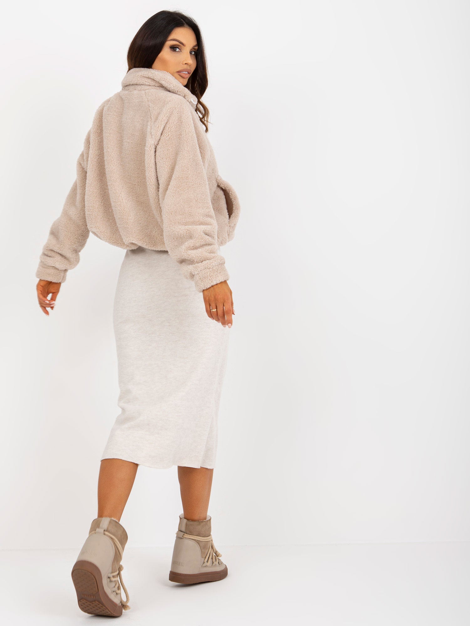 Beżowa krótka rozpinana bluza miś ze ściągaczem .