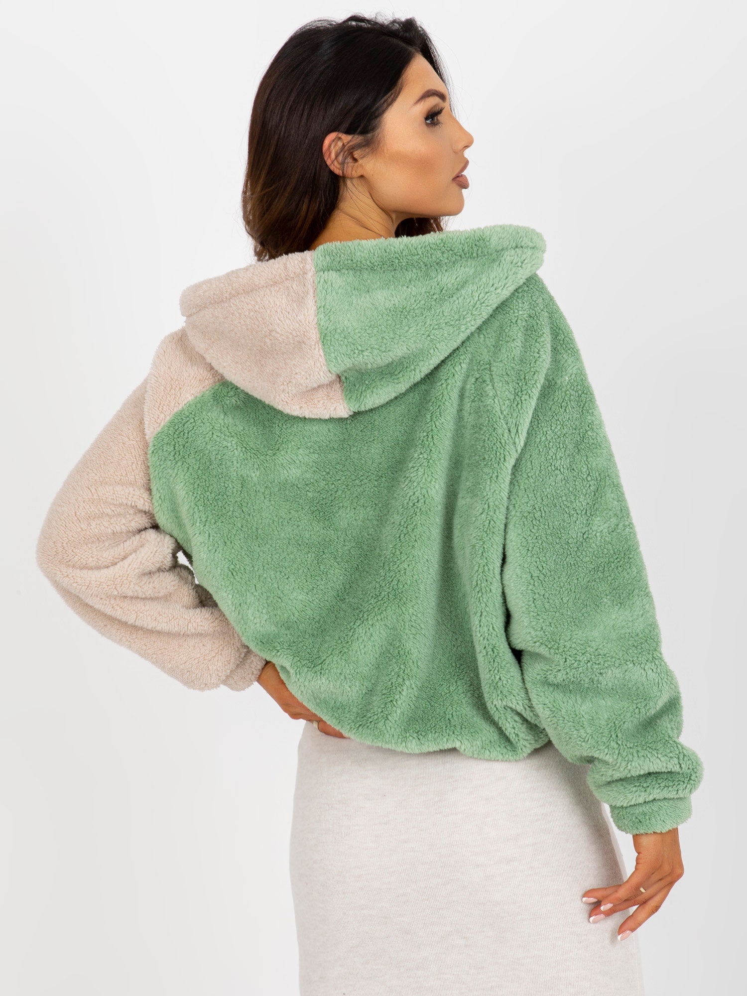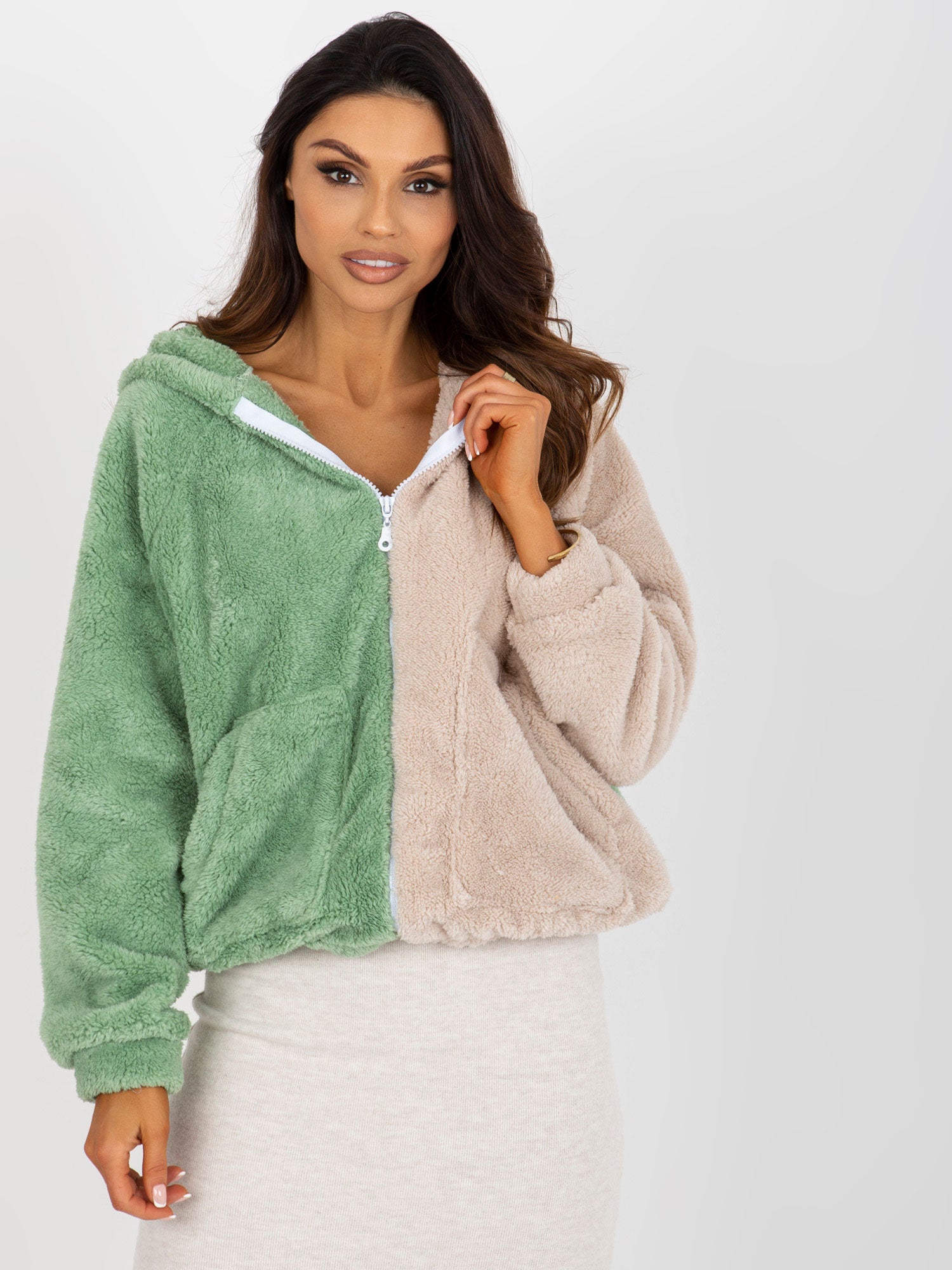 Jasnozielono-beżowa rozpinana bluza miś z kieszeniami .