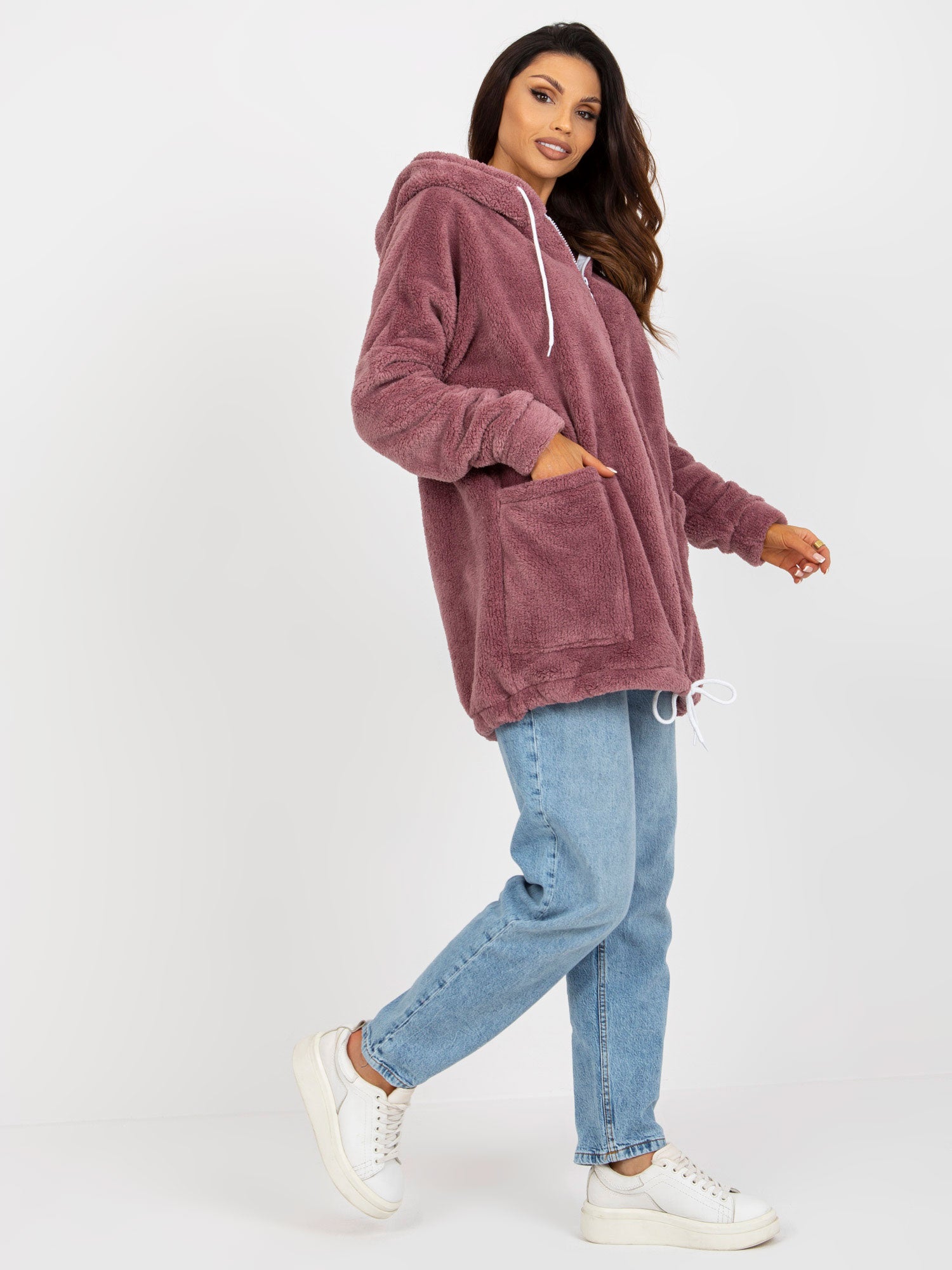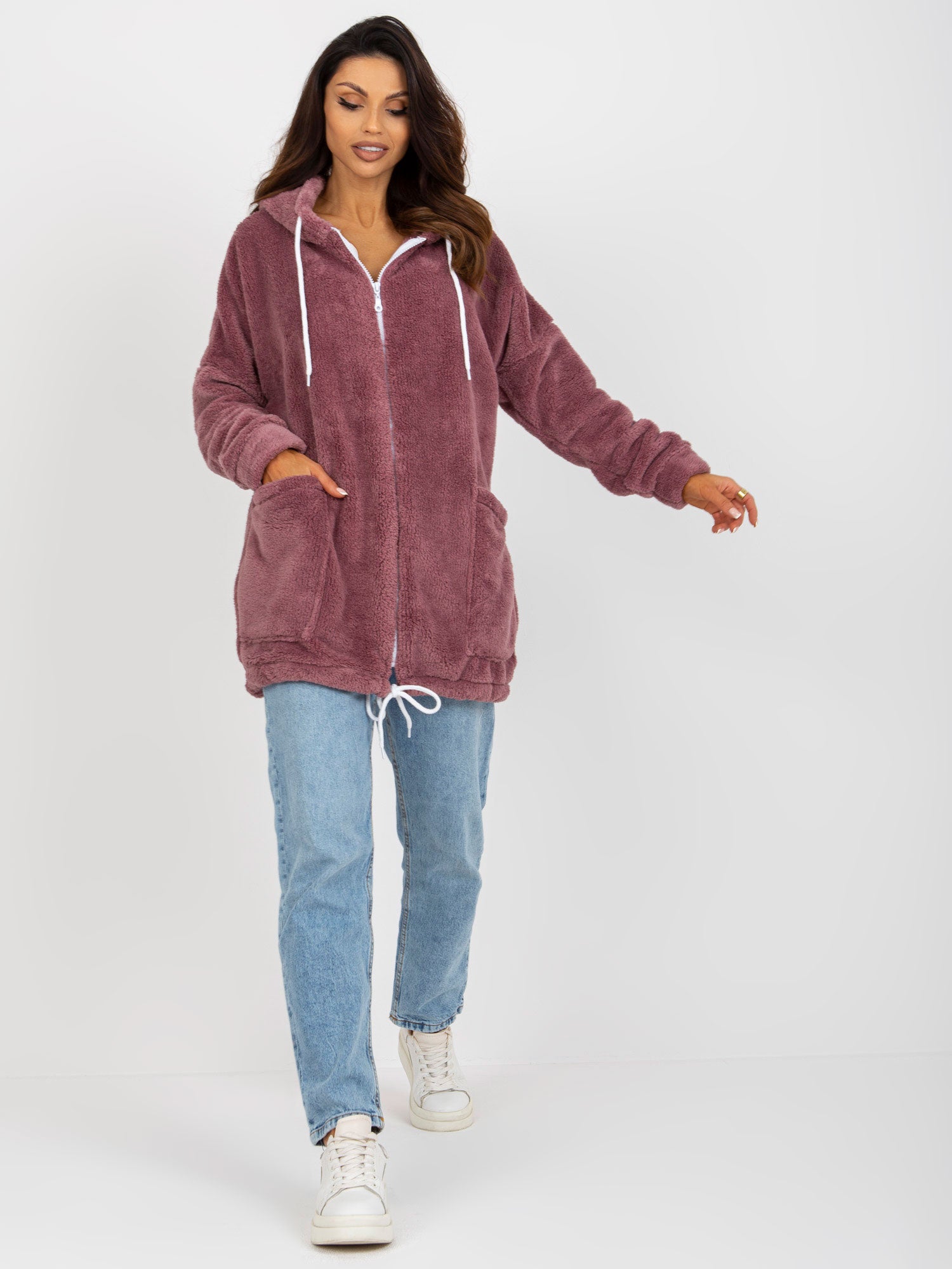 Brudnoróżowa rozpinana bluza miś z kapturem .
