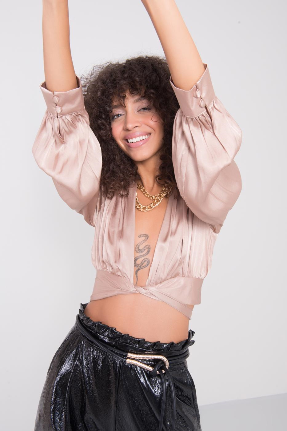 Modelka ma na sobie rozmiar S. Wymiary modelki: wzrost 175 cm, biust 89 cm, talia 64 cm, biodra 92 cm.