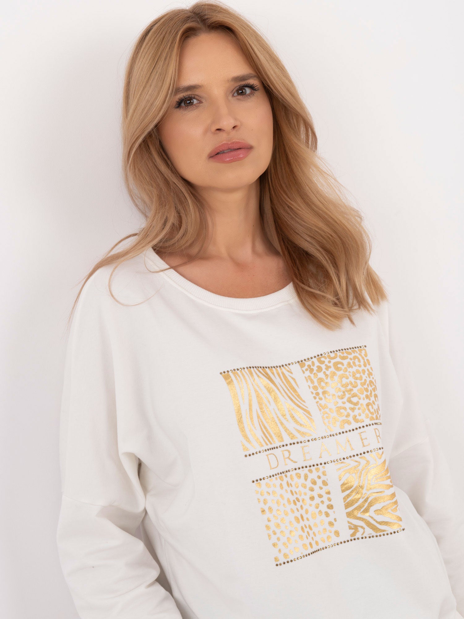 Wymiary bluzki w rozmiarze S mierzone na płasko: szerokość pod pachami - 65 cm, długość bluzy - 63 cm (przód), długość bluzy - 66 cm (tył), długość rękawa - 41 cm (od szwu).