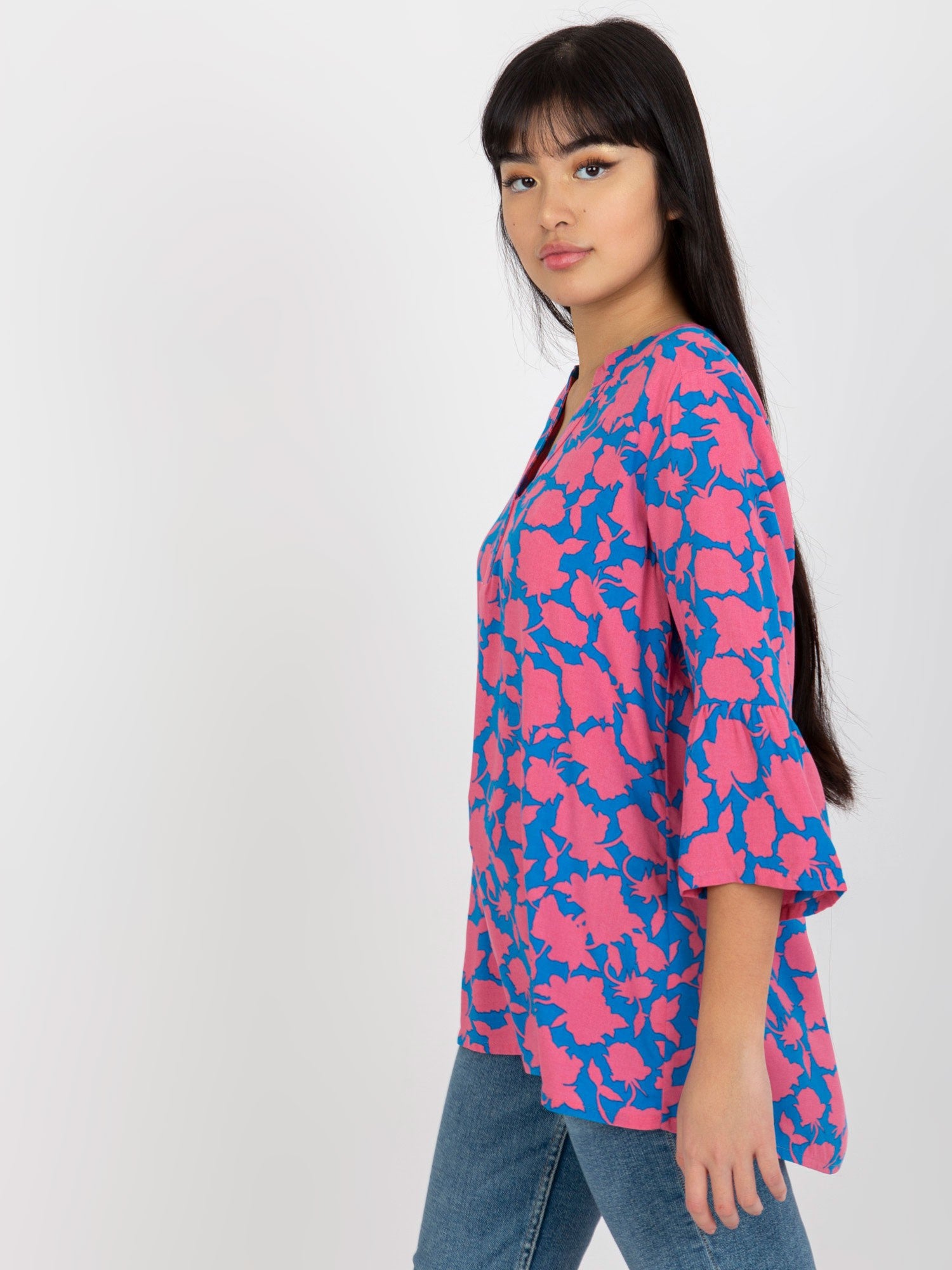 Turkusowo-różowa bluzka z nadrukiem i dekoltem V SUBLEVEL .