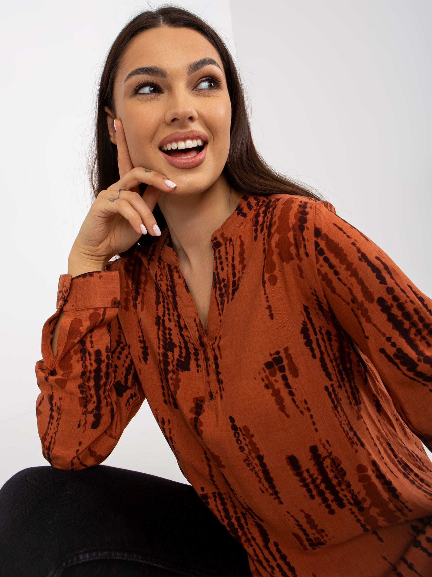 Jasnobrązowa wiskozowa bluzka z nadrukiem SUBLEVEL .