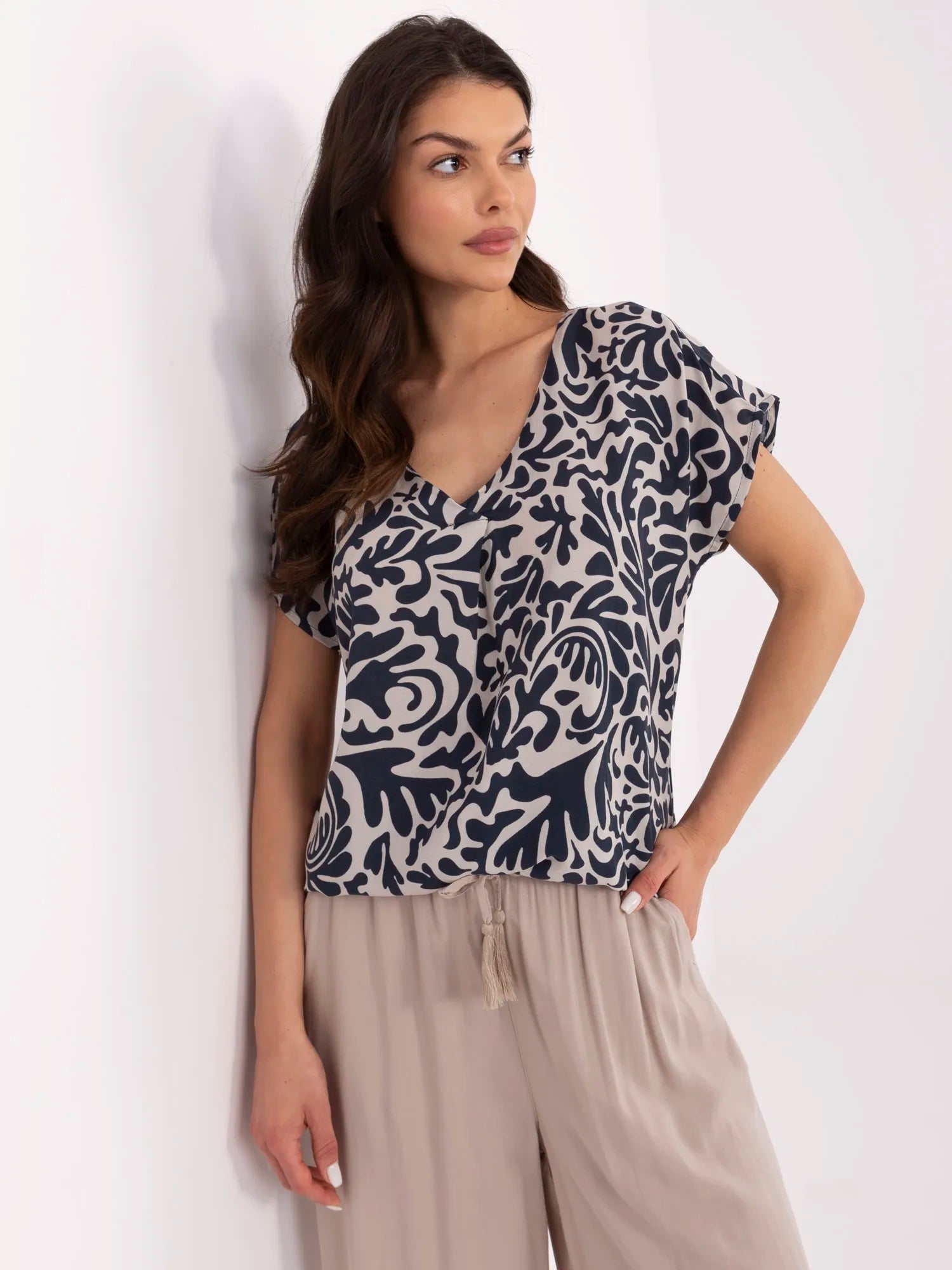 Wymiary bluzki w rozmiarze S mierzone na płasko: szerokość pod pachami - 57 cm długość rękawa - 22 cm (od szwu), szerokość w biodrach - 55 cm, długość całkowita - 63 cm (przód), długość całkowita - 69 cm (tył).