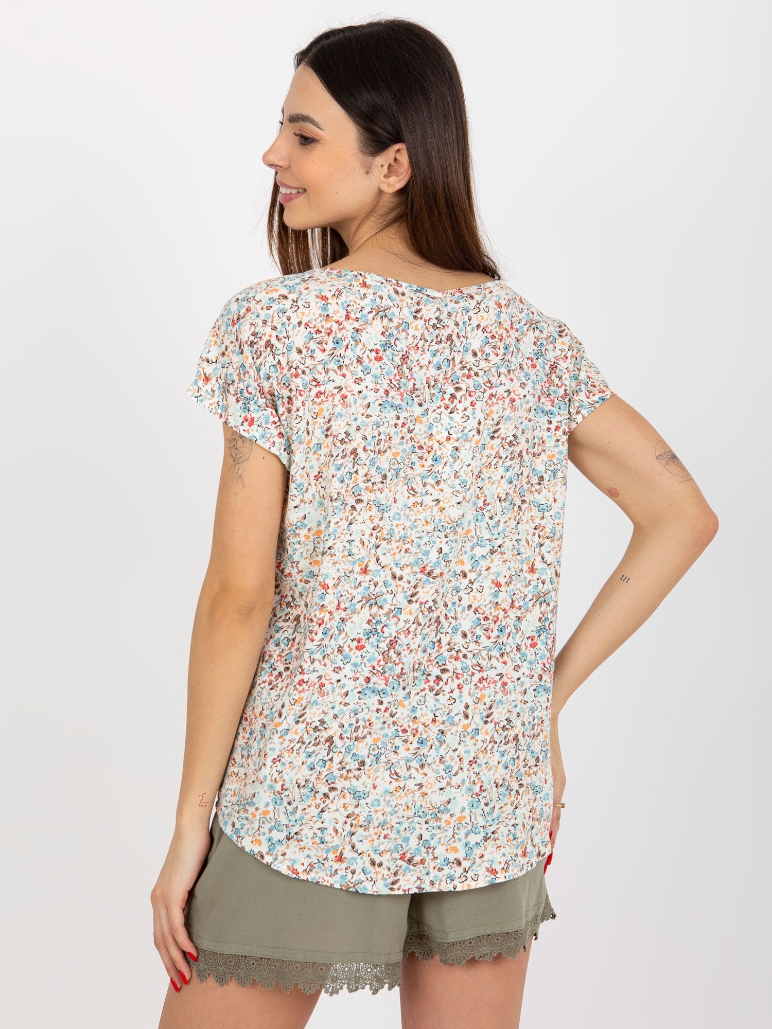 Biała bluzka w kwiaty z krótkim rękawem SUBLEVEL .