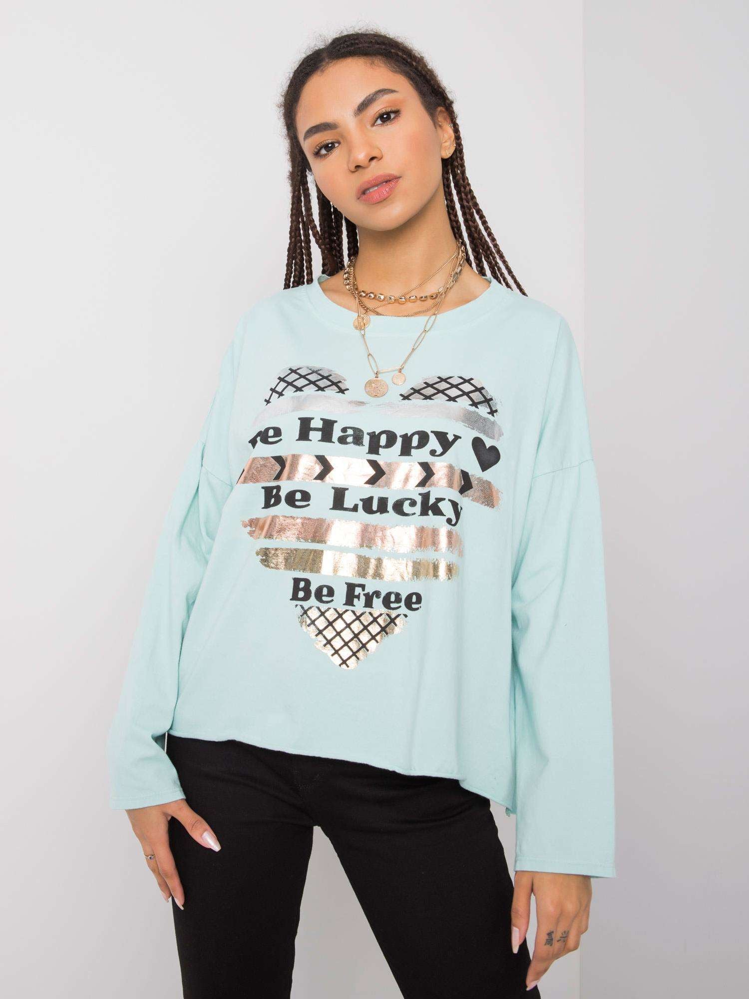 Miętowa bluzka bawełniana z nadrukiem.