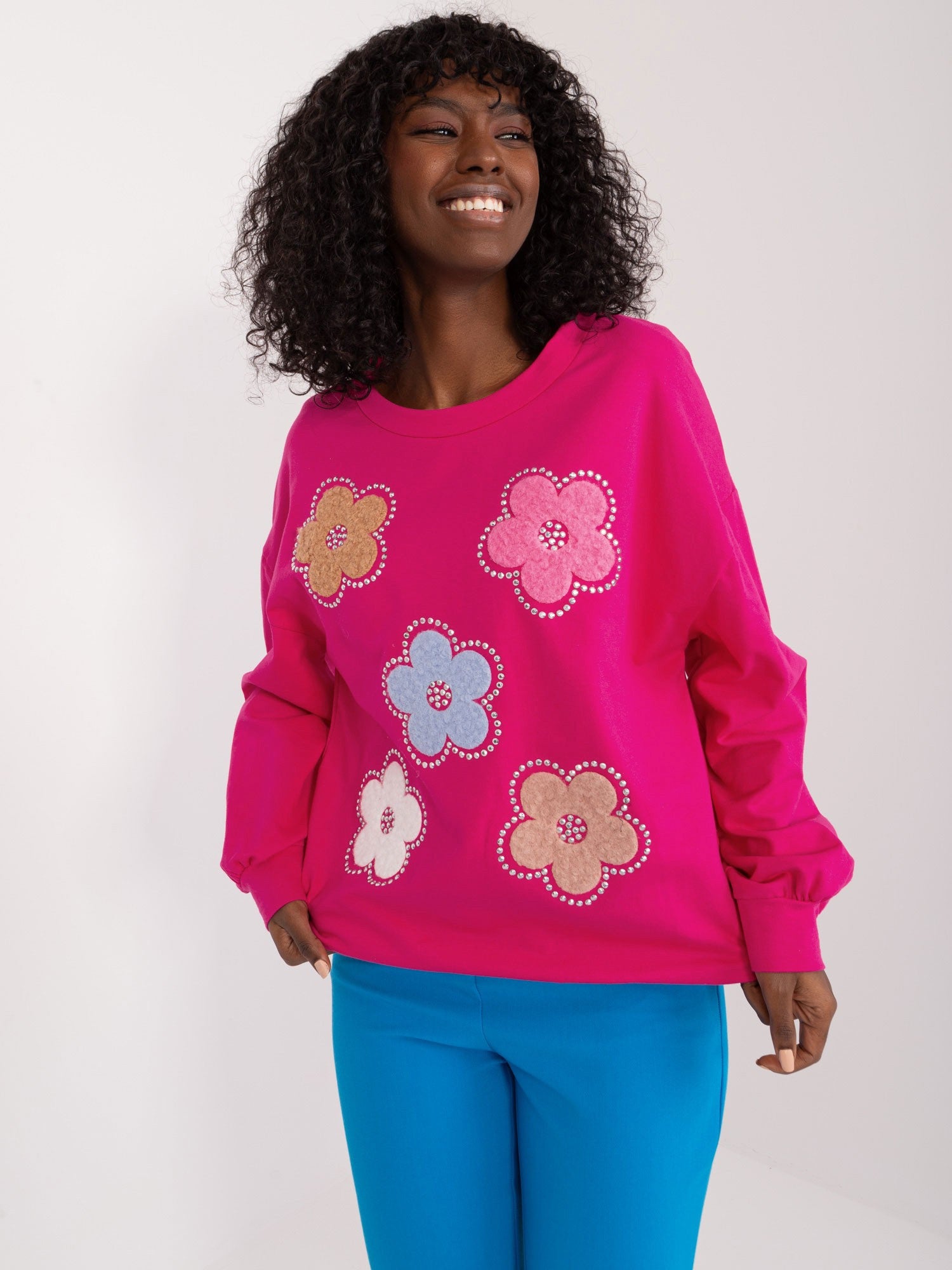 Wymiary bluzy w rozmiarze one size mierzone na płasko: szerokość pod pachami - 58 cm, długość rękawa - 62 cm, długość całkowita - 65 cm.
