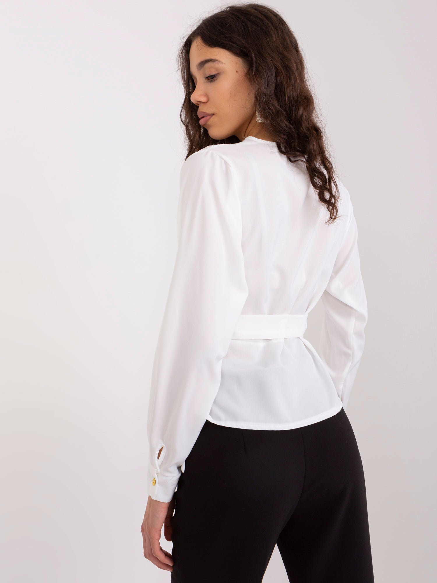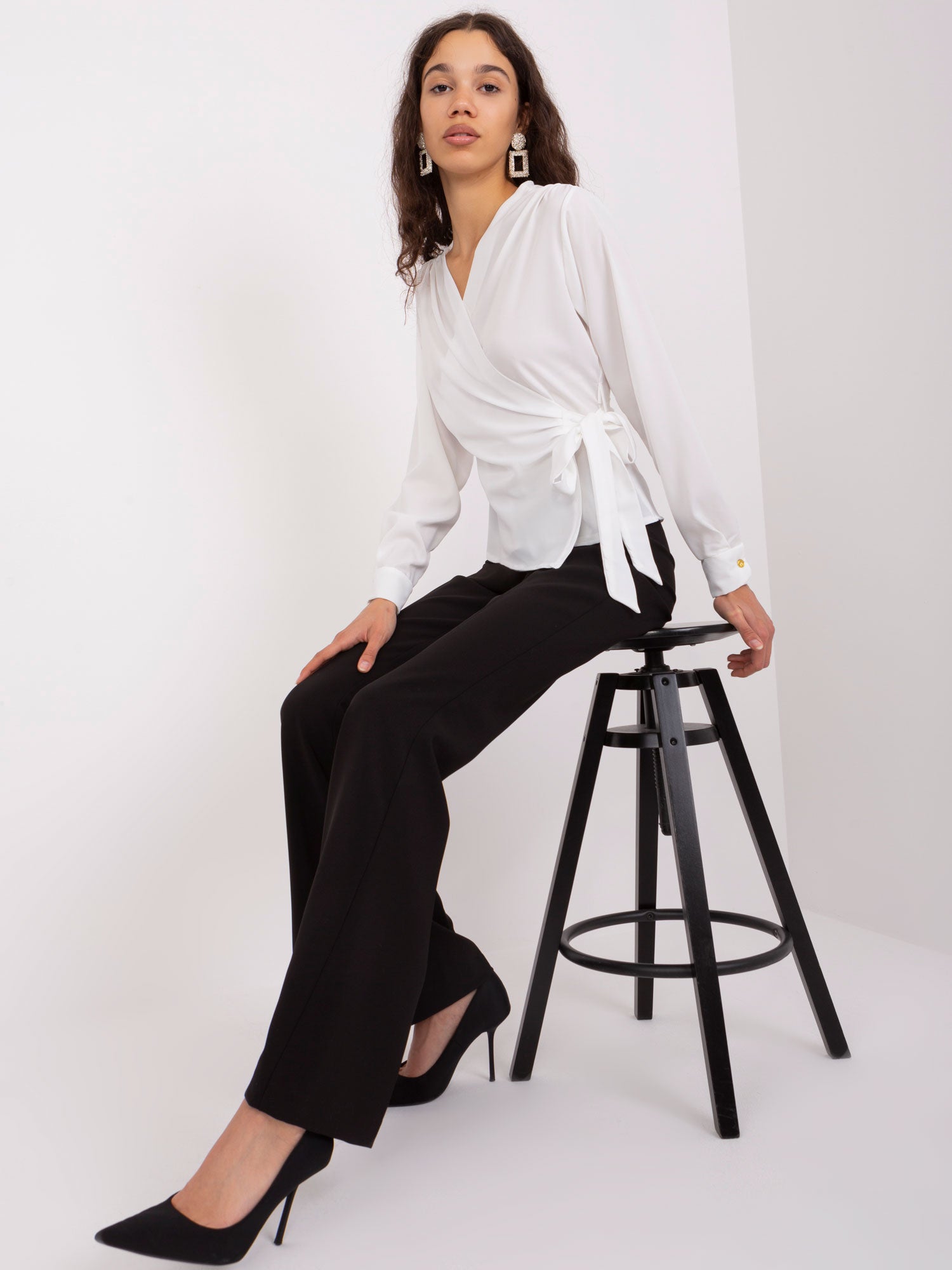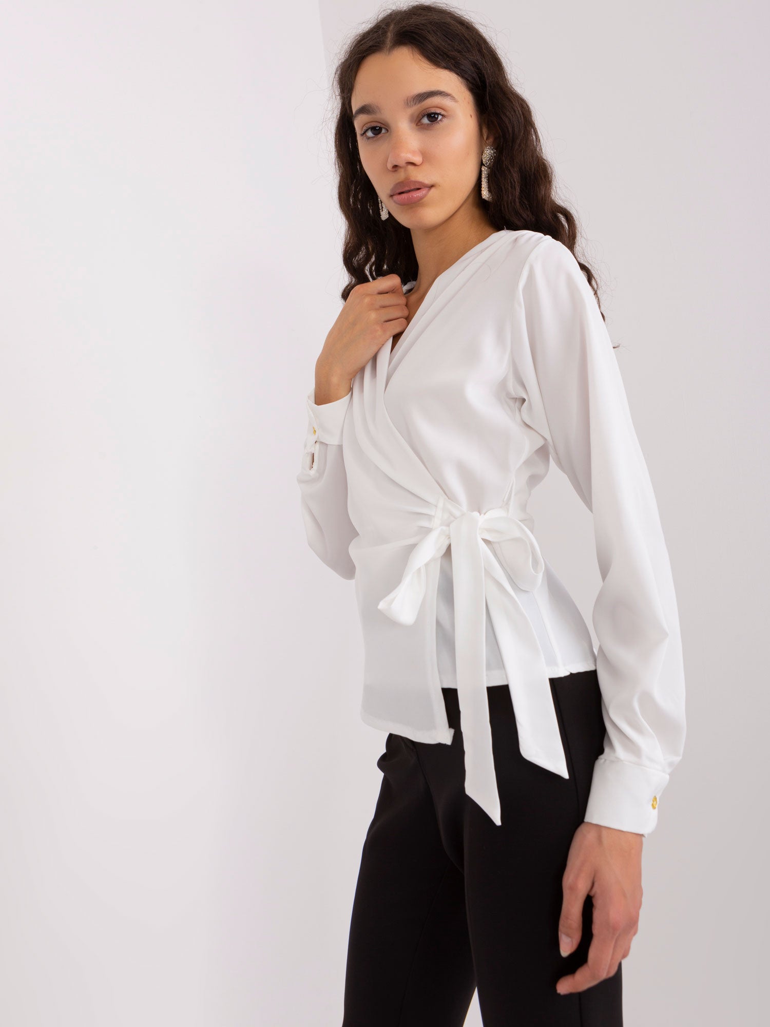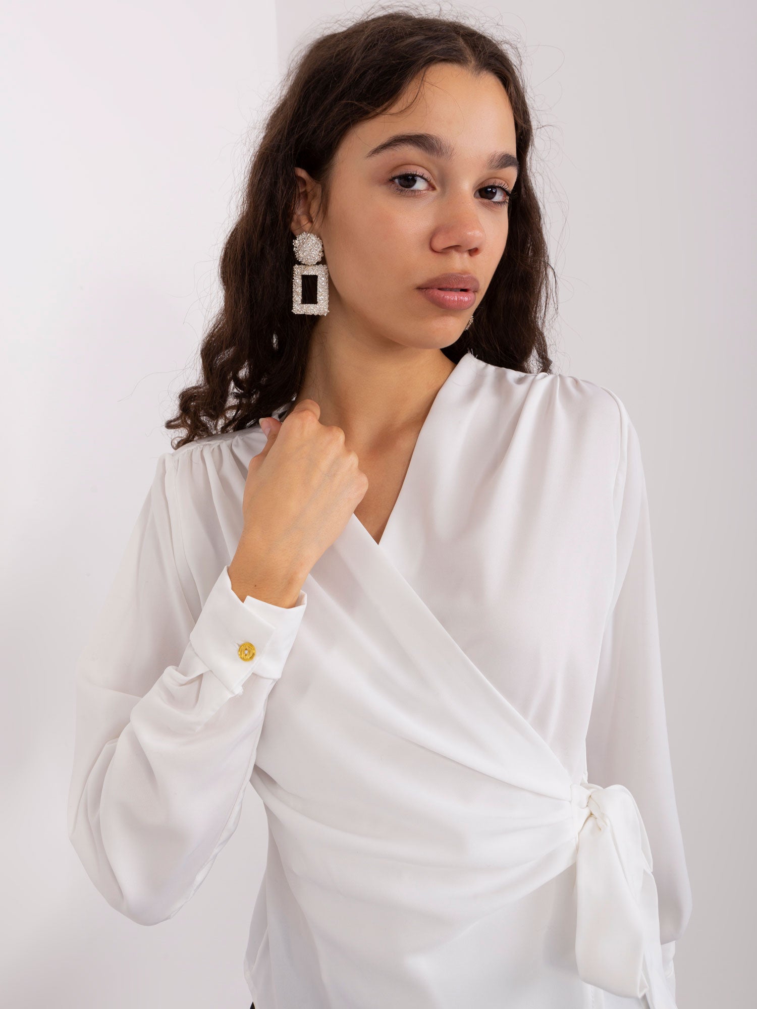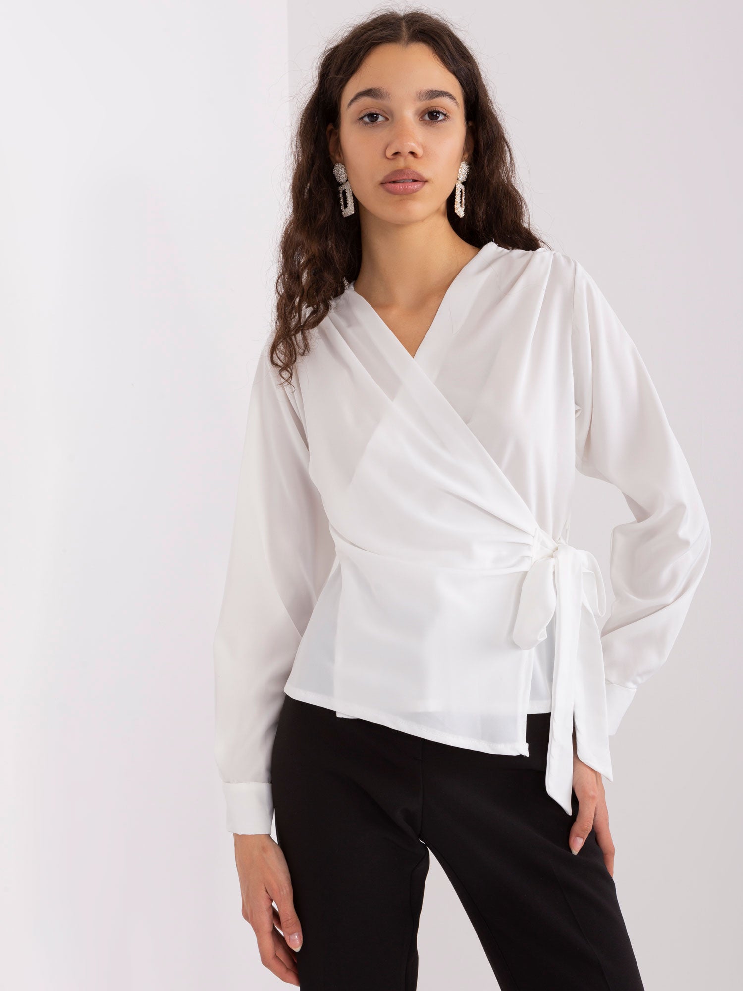 Biała bluzka wizytowa z kopertowym dekoltem .
