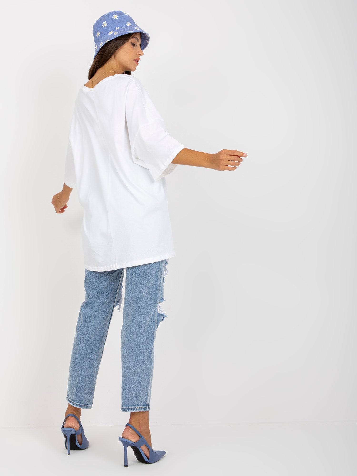 Wymiary bluzki w rozmiarze S/M mierzone na płasko: szerokość pod pachami - 67 cm, długość całkowita - 78 cm, długość rękawa - 38 cm.