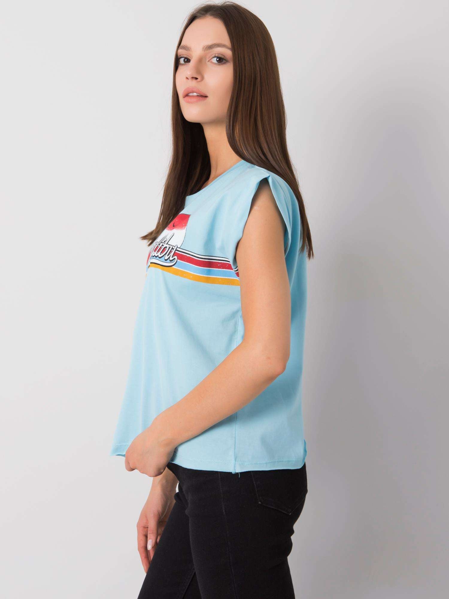 Jasnoniebieski bawełniany t-shirt damski z nadrukiem.