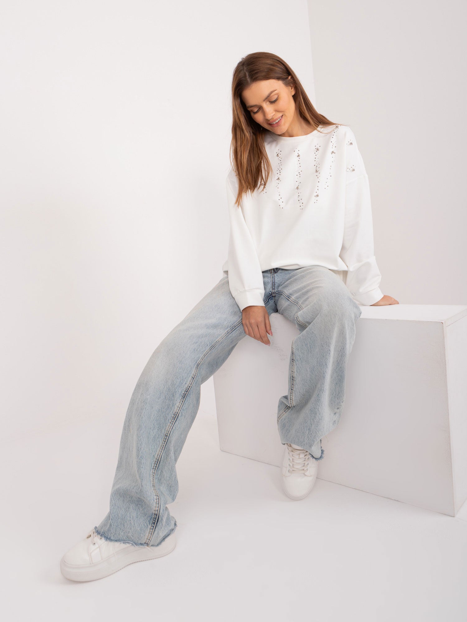 Wymiary bluzy w rozmiarze one size mierzone na płasko: szerokość pod pachami - 60 cm, długość rękawa - 60 cm, długość całkowita (przód) - 62 cm, długość całkowita (tył) - 67 cm .