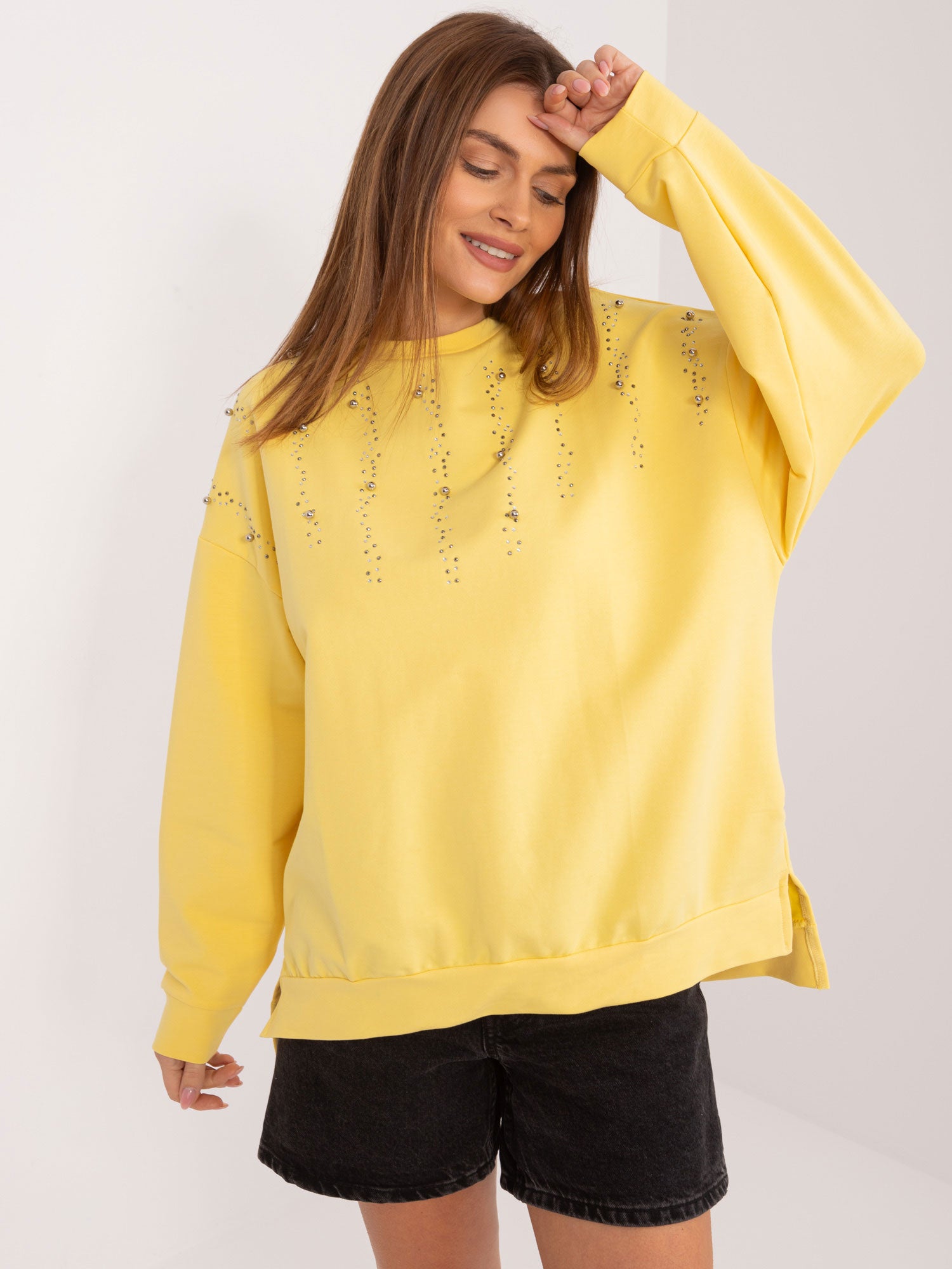 Wymiary bluzy w rozmiarze one size mierzone na płasko: szerokość pod pachami - 60 cm, długość rękawa - 60 cm, długość całkowita (przód) - 62 cm, długość całkowita (tył) - 67 cm .