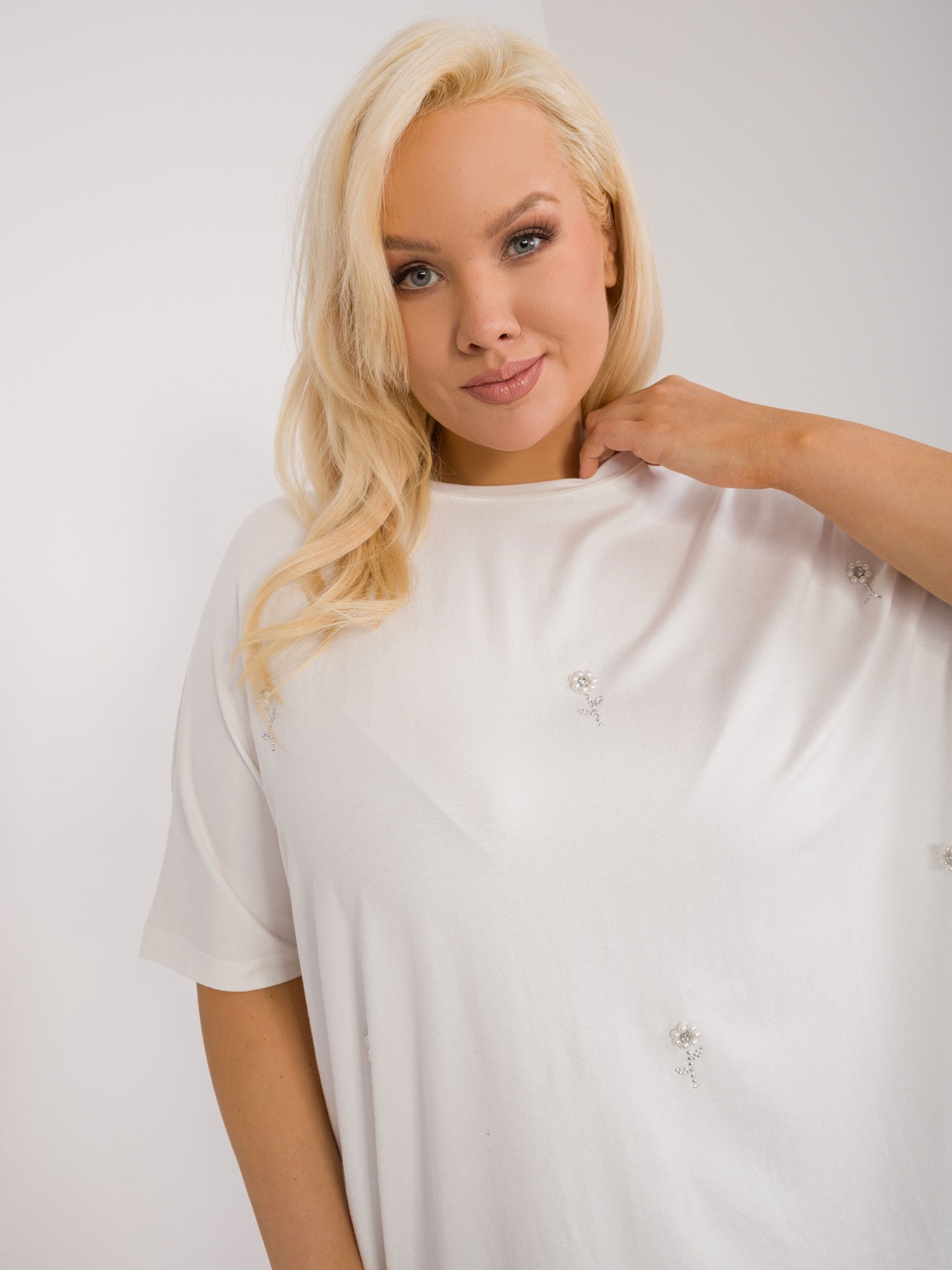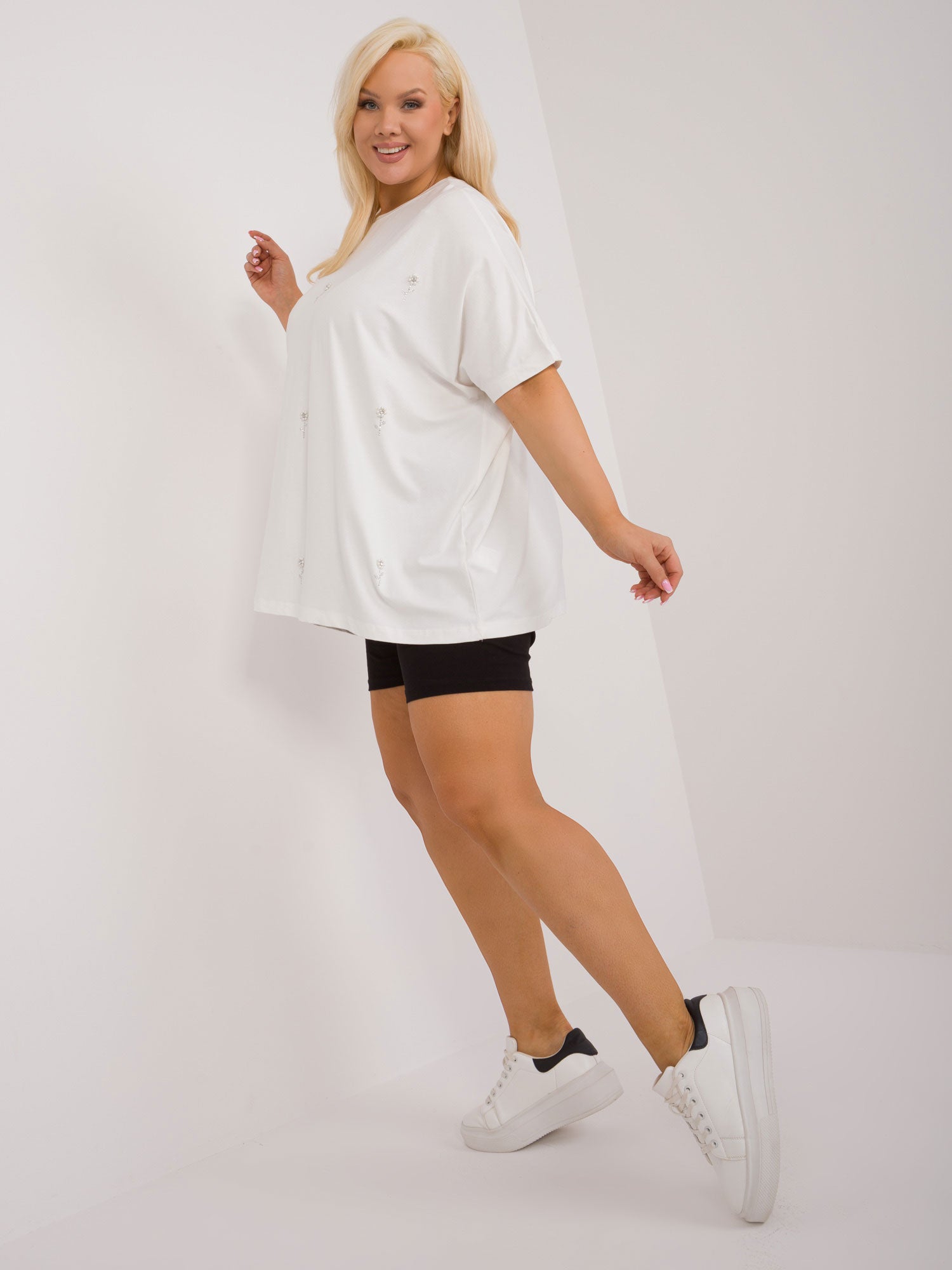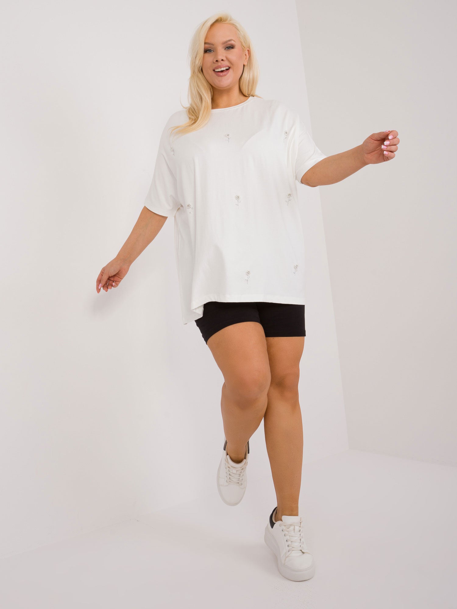 Wymiary bluzki w rozmiarze one size mierzone na płasko: szerokość pod pachami - 80 cm, długość całkowita - 72 cm.