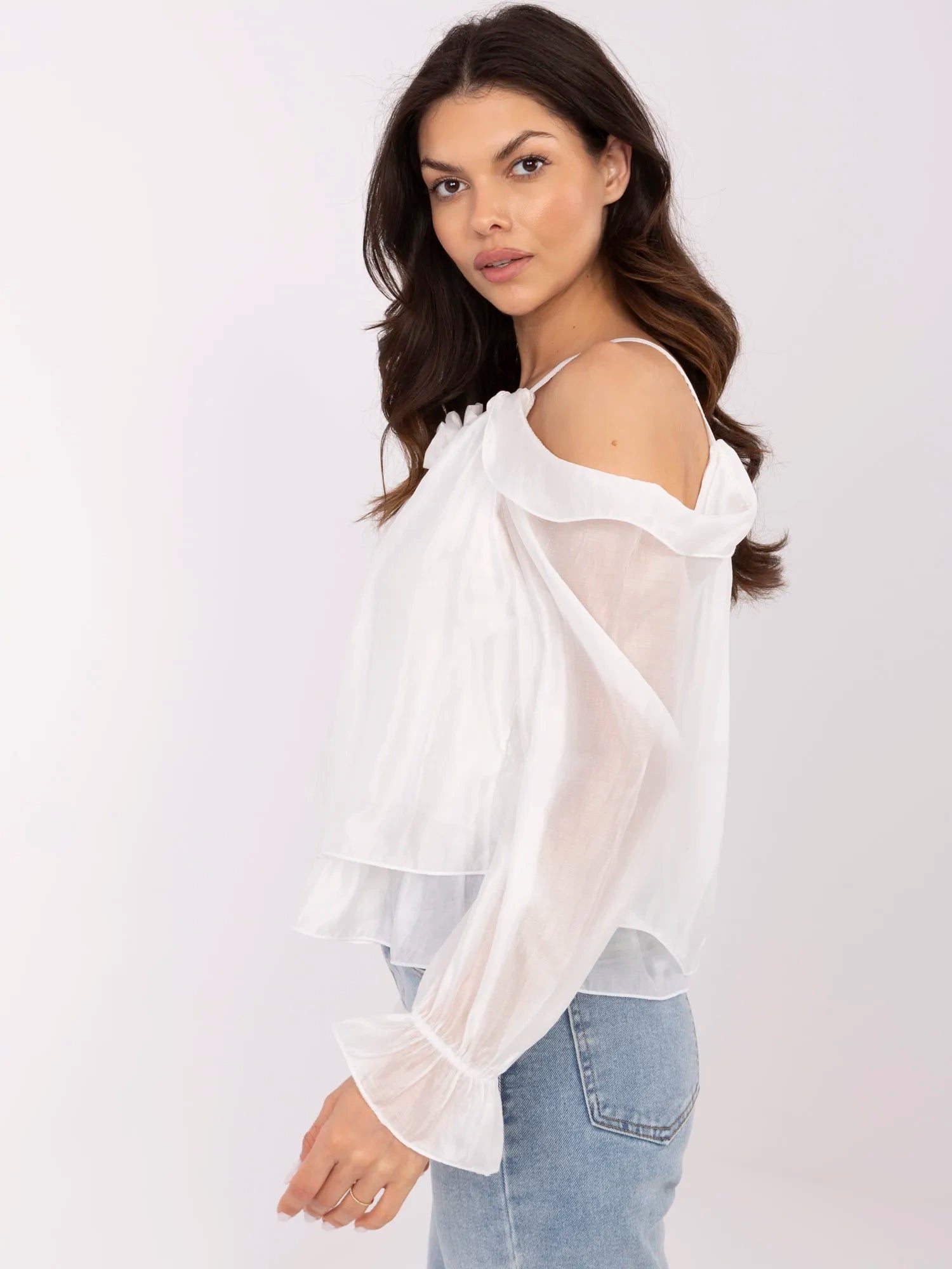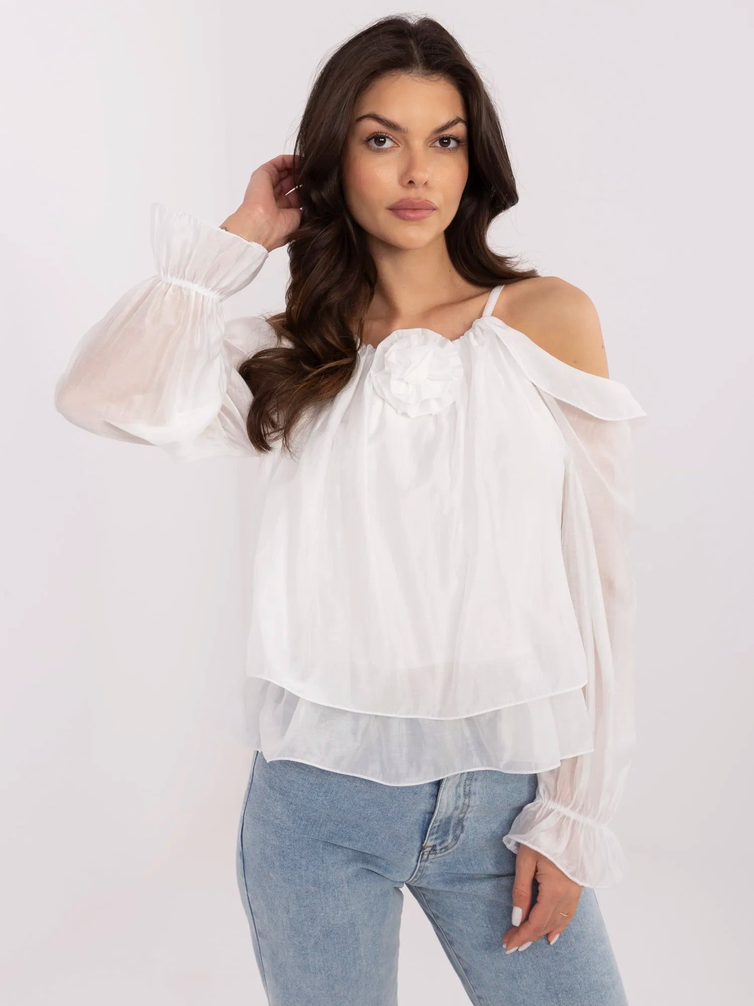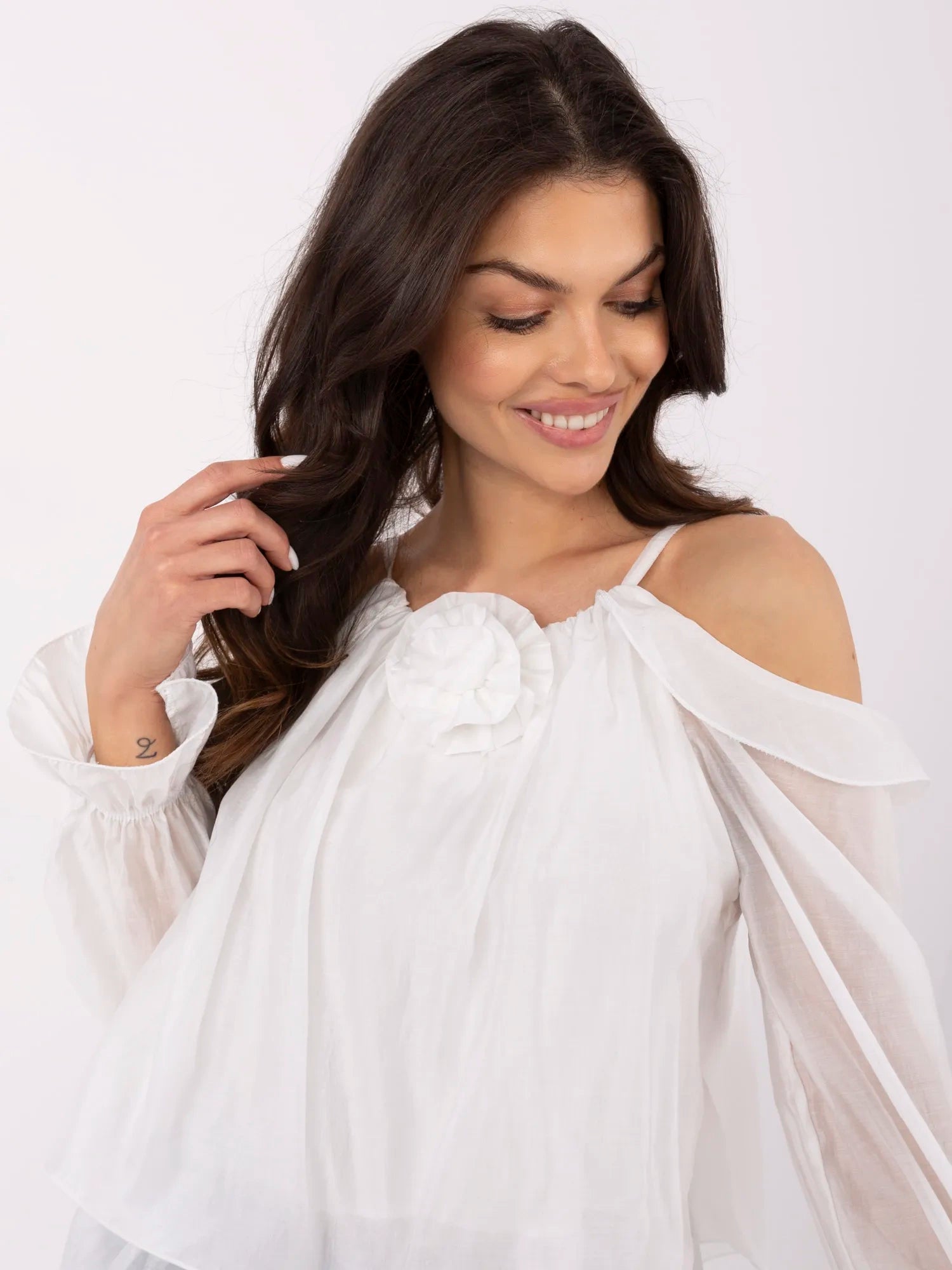 Wymiary bluzki w rozmiarze one size mierzone na płasko: szerokość pod pachami - 48 cm długość rękawa - 55 cm (od szwu), szerokość w biodrach - 58 cm, długość całkowita - 60 cm.