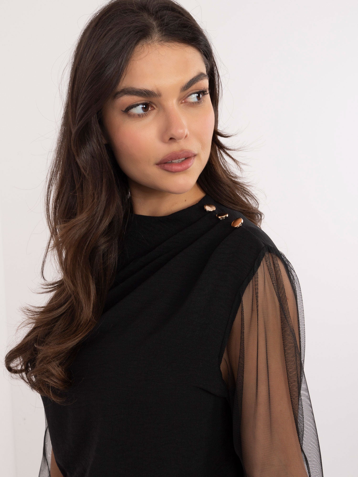 Wymiary bluzki w rozmiarze one size mierzone na płasko: szerokość pod pachami - 52 cm, długość całkowita - 64 cm, długość rękawa - 59 cm.