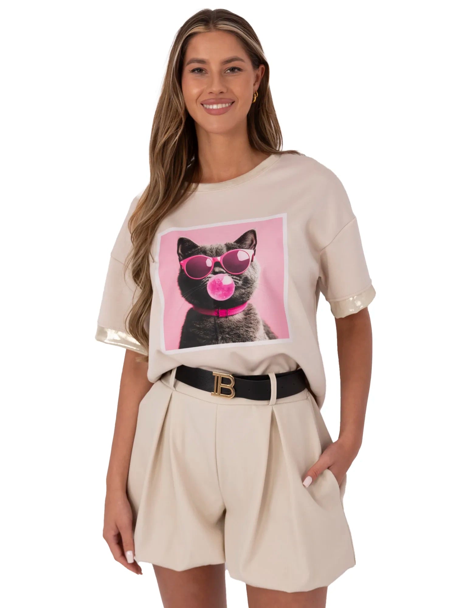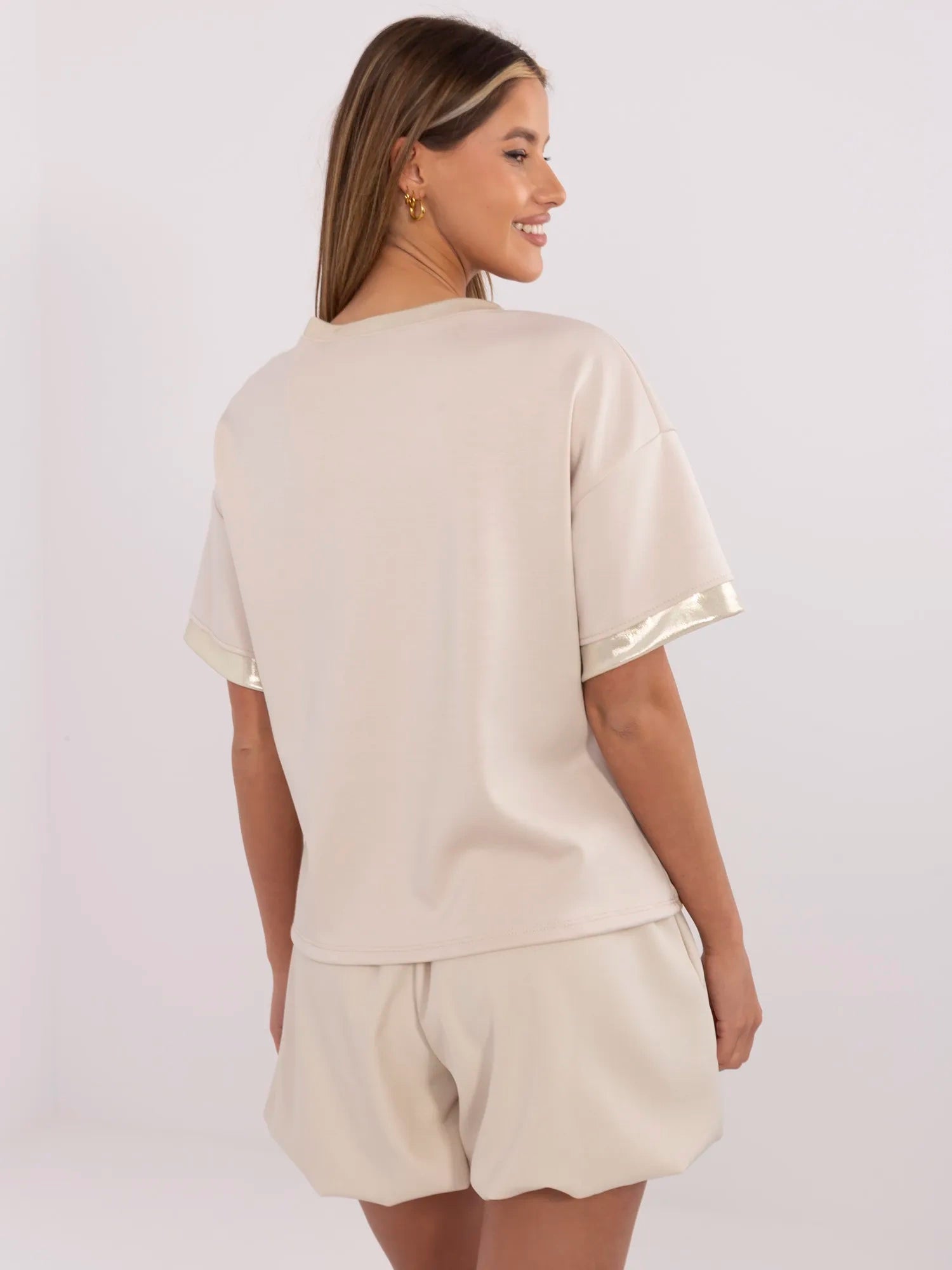 Wymiary bluzki w rozmiarze one size mierzone na płasko: szerokość pod pachami - 55 cm długość rękawa - 18 cm (od szwu), długość całkowita - 60 cm, szerokość w biodrach - 55 cm.