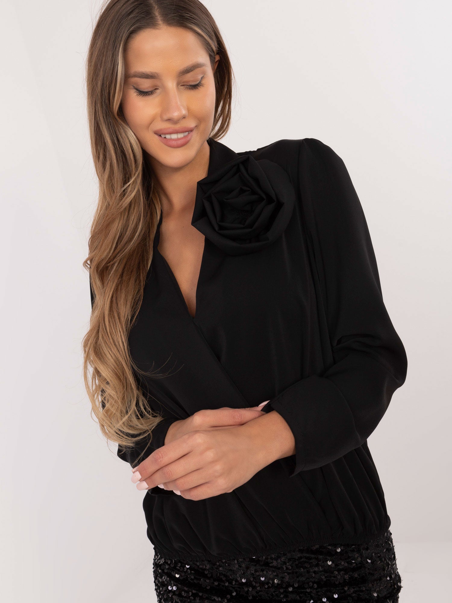 Wymiary bluzki w rozmiarze one size mierzone na płasko: szerokość pod pachami - 55 cm, długość rękawa - 58 cm (od szwu), długość całkowita - 60 cm.