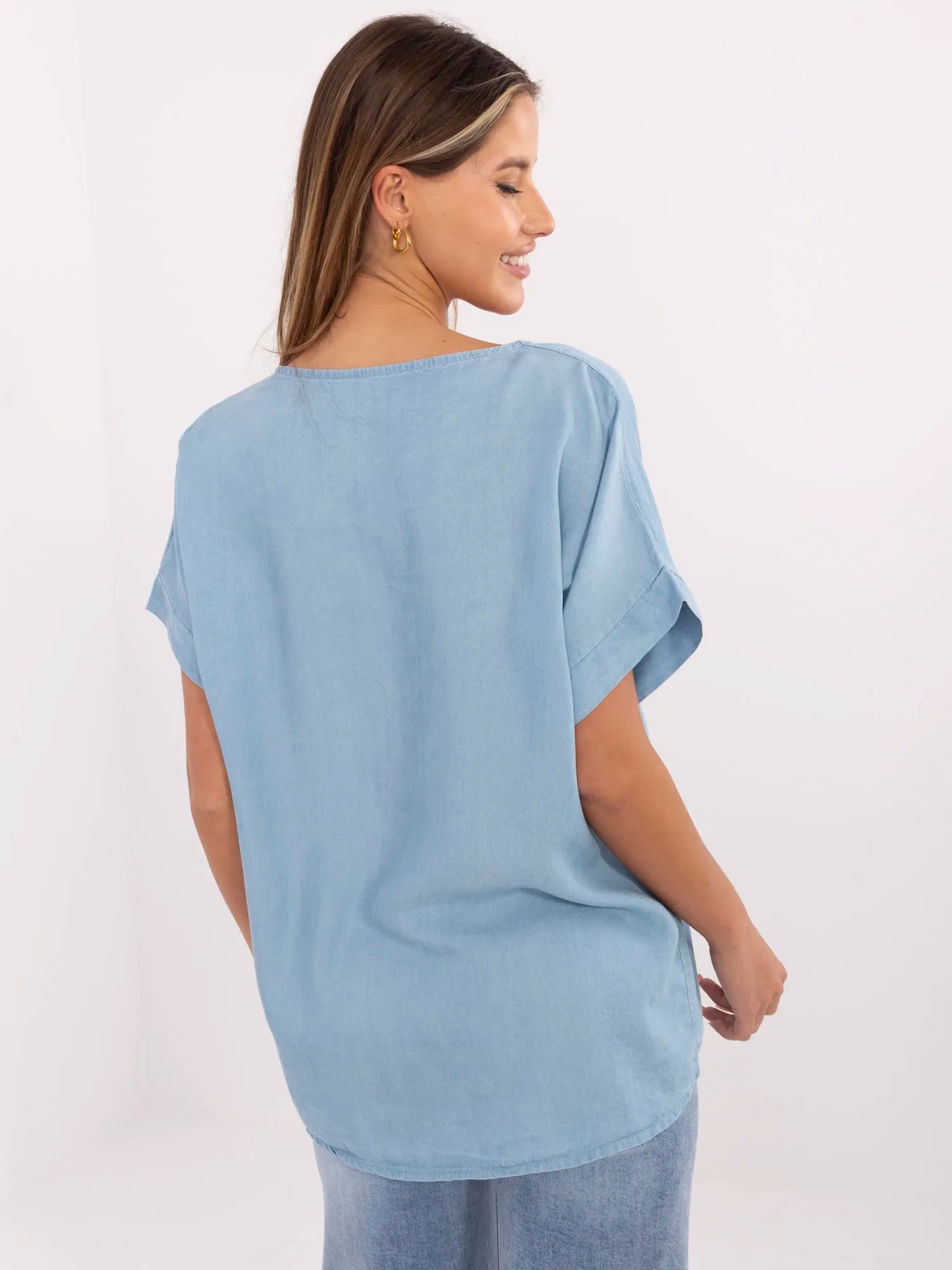 Wymiary koszuli w rozmiarze one size mierzone na płasko: szerokość pod pachami - 62 cm długość rękawa - 28 cm (od szwu), szerokość w biodrach - 57 cm, długość całkowita - 68 cm (przód), długość całkowita - 74 cm (tył).
