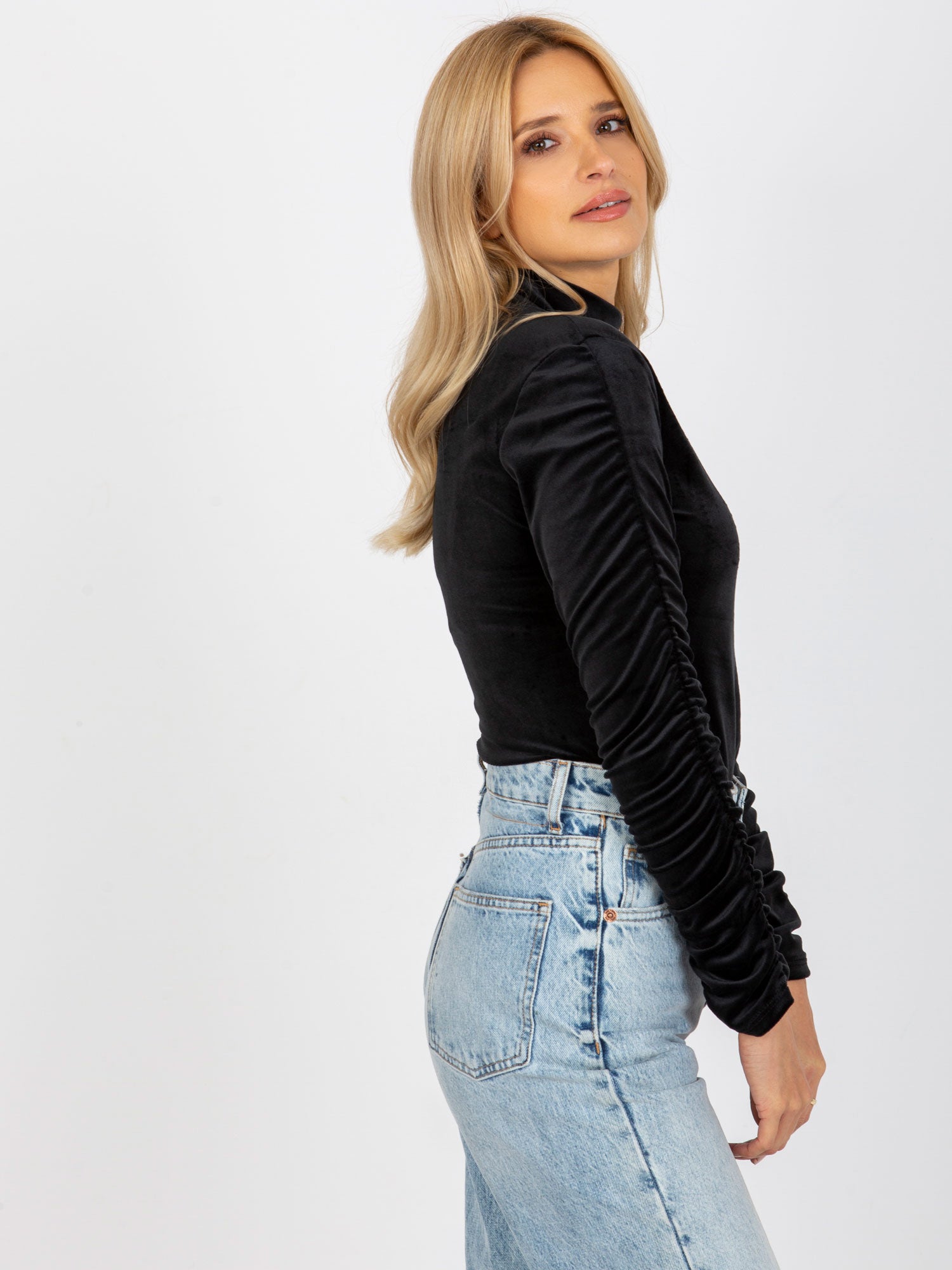 Czarna bluzka welurowa one size z marszczeniami na rękawach RUE PARIS.