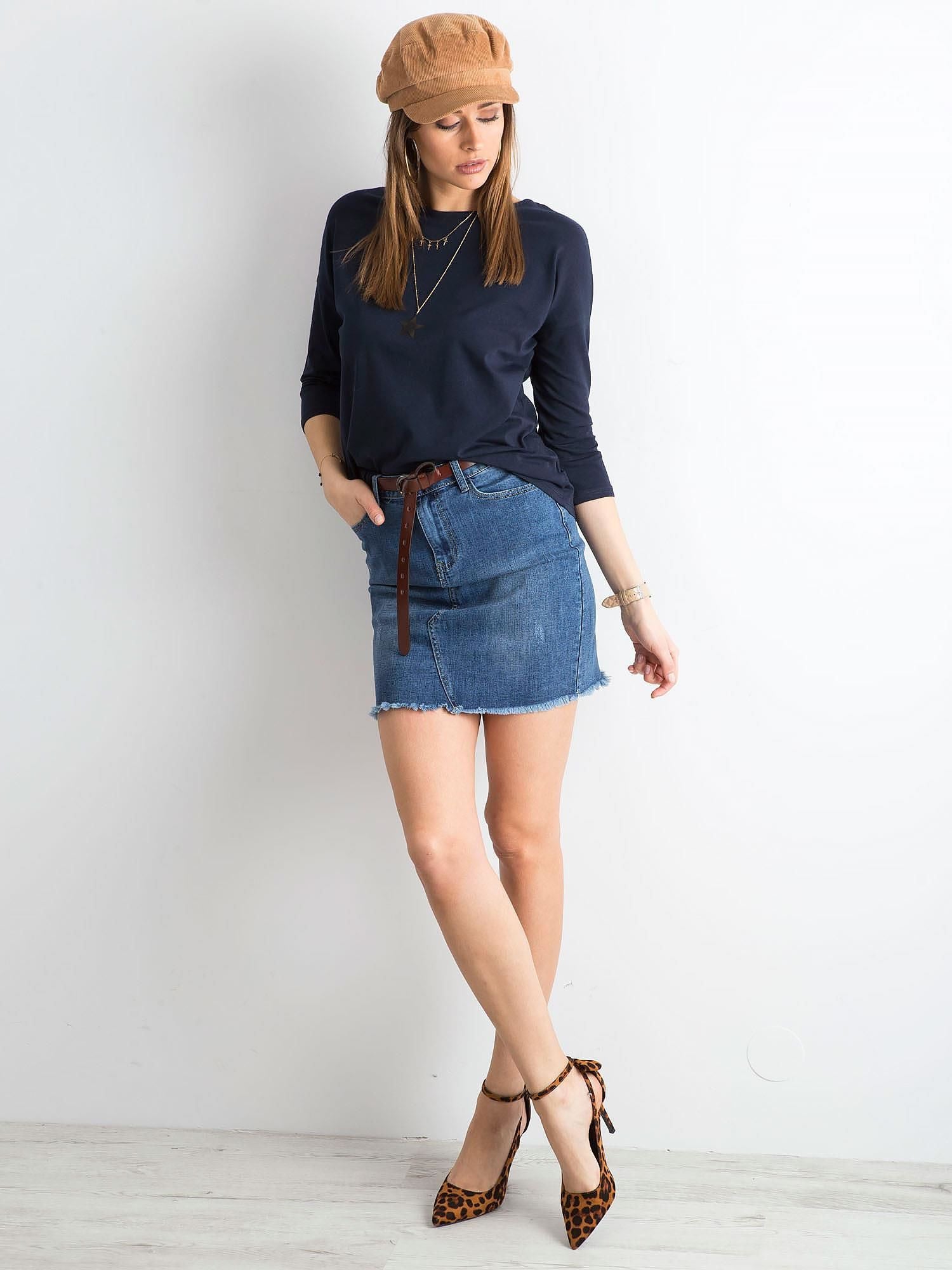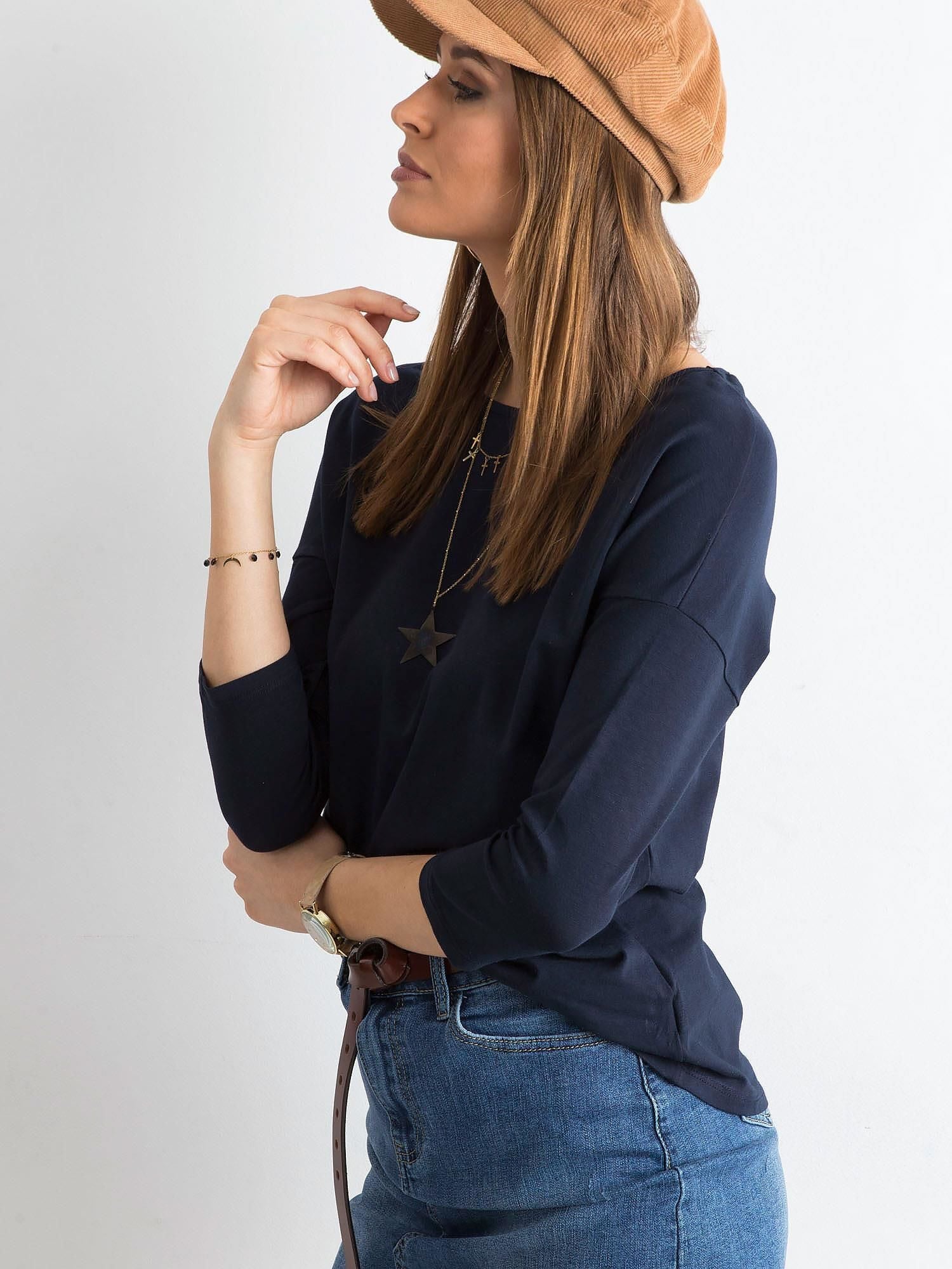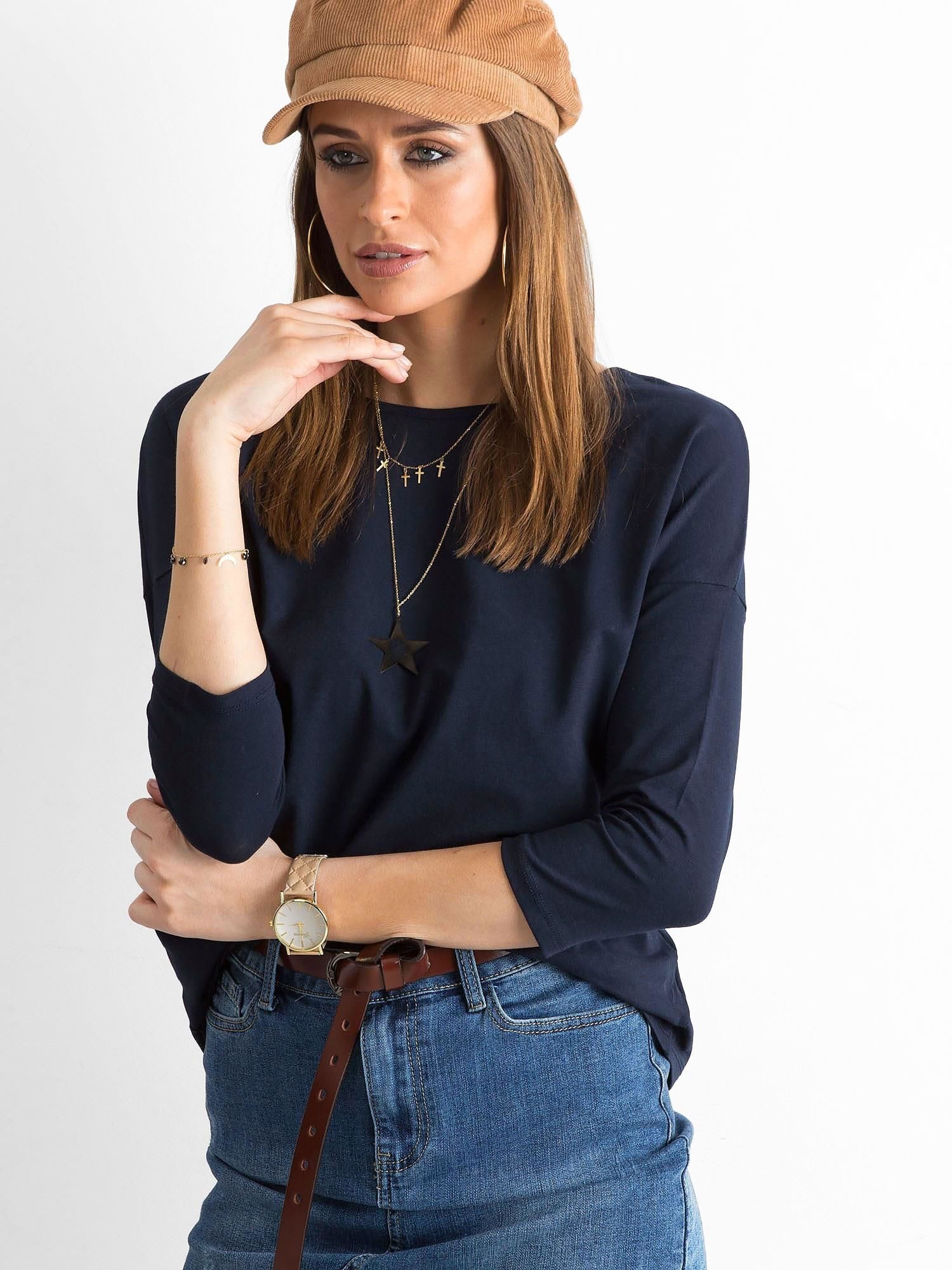 Granatowa bluzka April. Minimalistyczny styl basic jest w modzie damskiej jednym z najbardziej dominujących trendów od kilku sezonów. Nic dziwnego, w końcu odzież bez wzorów jest wybierana przez kobiety zdecydowanie najczęściej, ponieważ jest uniwersalna i ponadczasowa. Prezentowana bluzka z rękawem 3/4 pasuje do większości innych ubrań i możesz nosić ją na wszystkie casualowe okazje. Pójdziesz w niej do pracy, na randkę albo na spotkanie ze znajomymi i zawsze będziesz pewna, że jesteś ubrana adekwatnie do sytuacji. Bluzka zrobiona jest z przyjemnej w dotyku i przewiewnej mieszanki materiałów, dlatego idealnie układa się na sylwetce i gwarantuje wysoki komfort noszenia. Doskonale sprawdzi się do noszenia w czasie każdej pory roku. Ta damska bluzka basic wygląda najlepiej w duecie z naszymi spodniami, legginsami lub kobiecymi spódnicami.