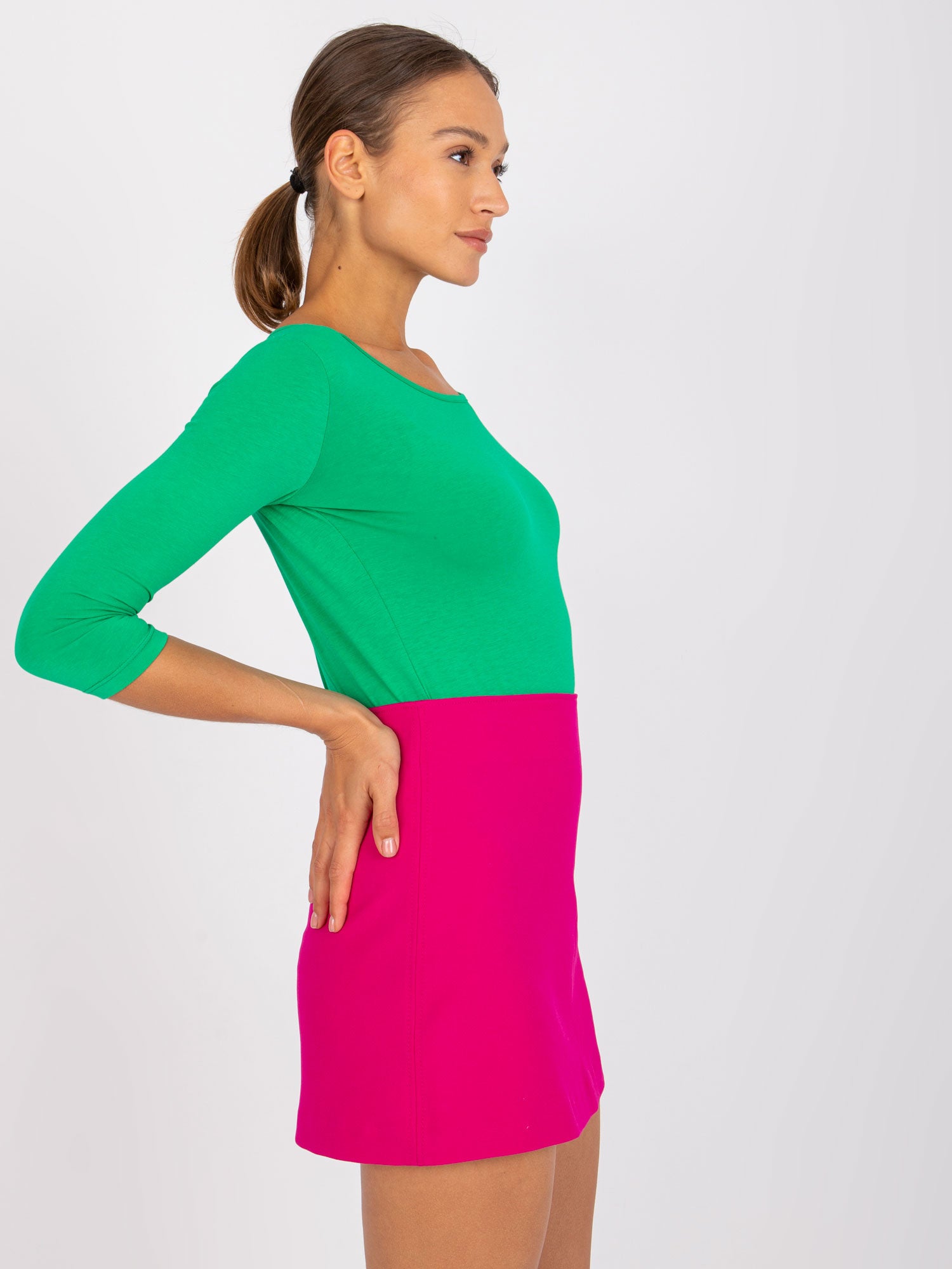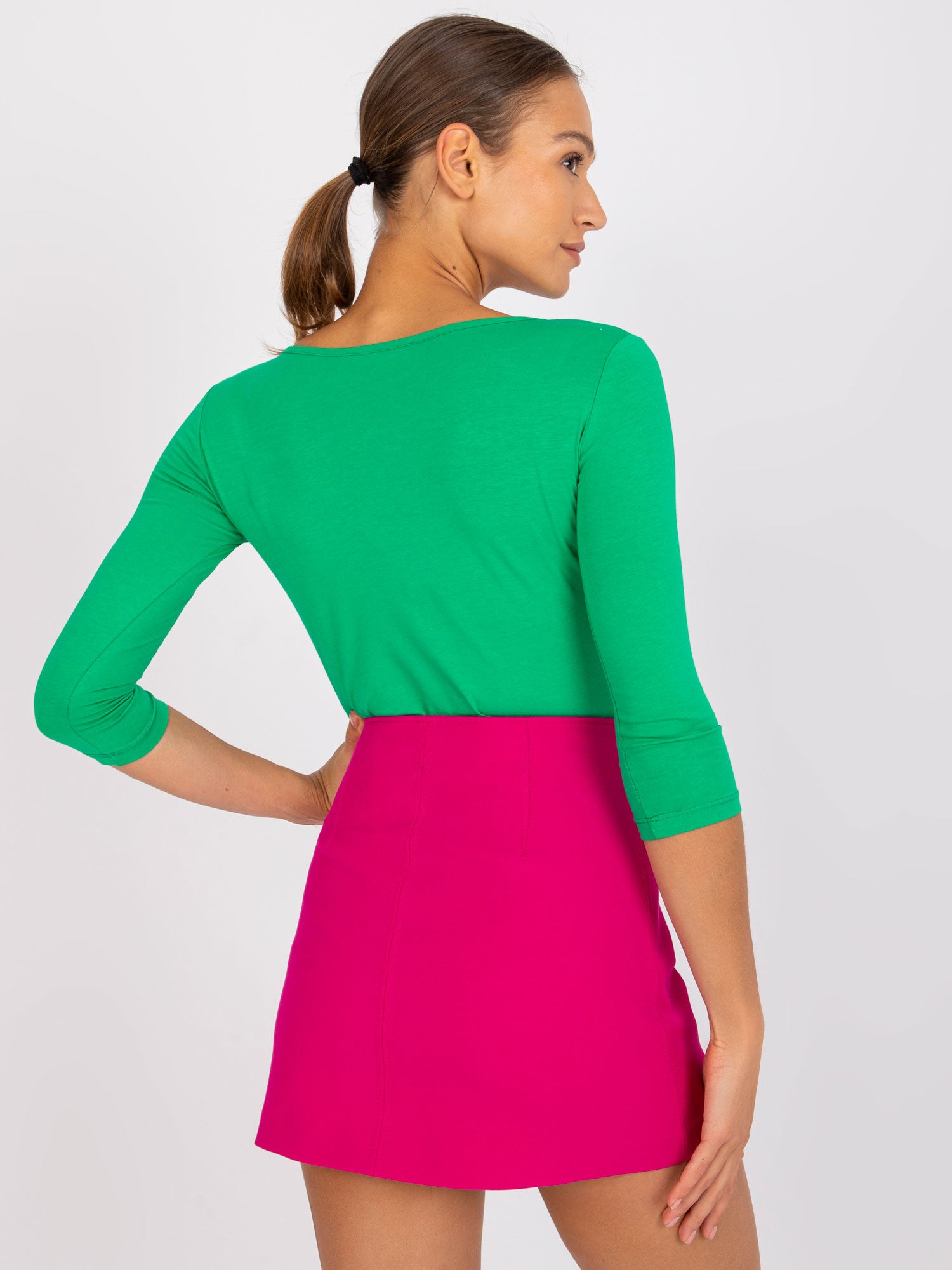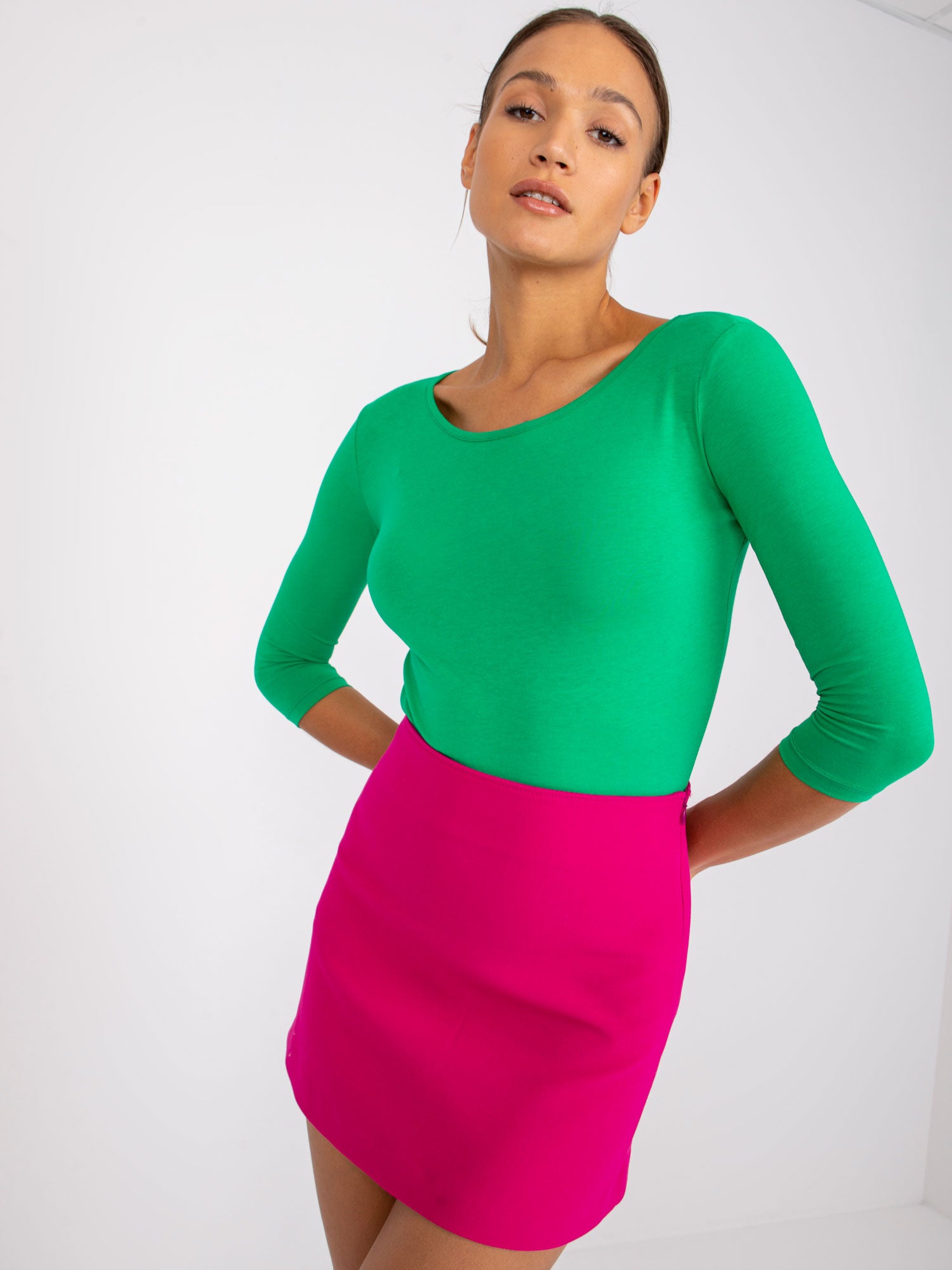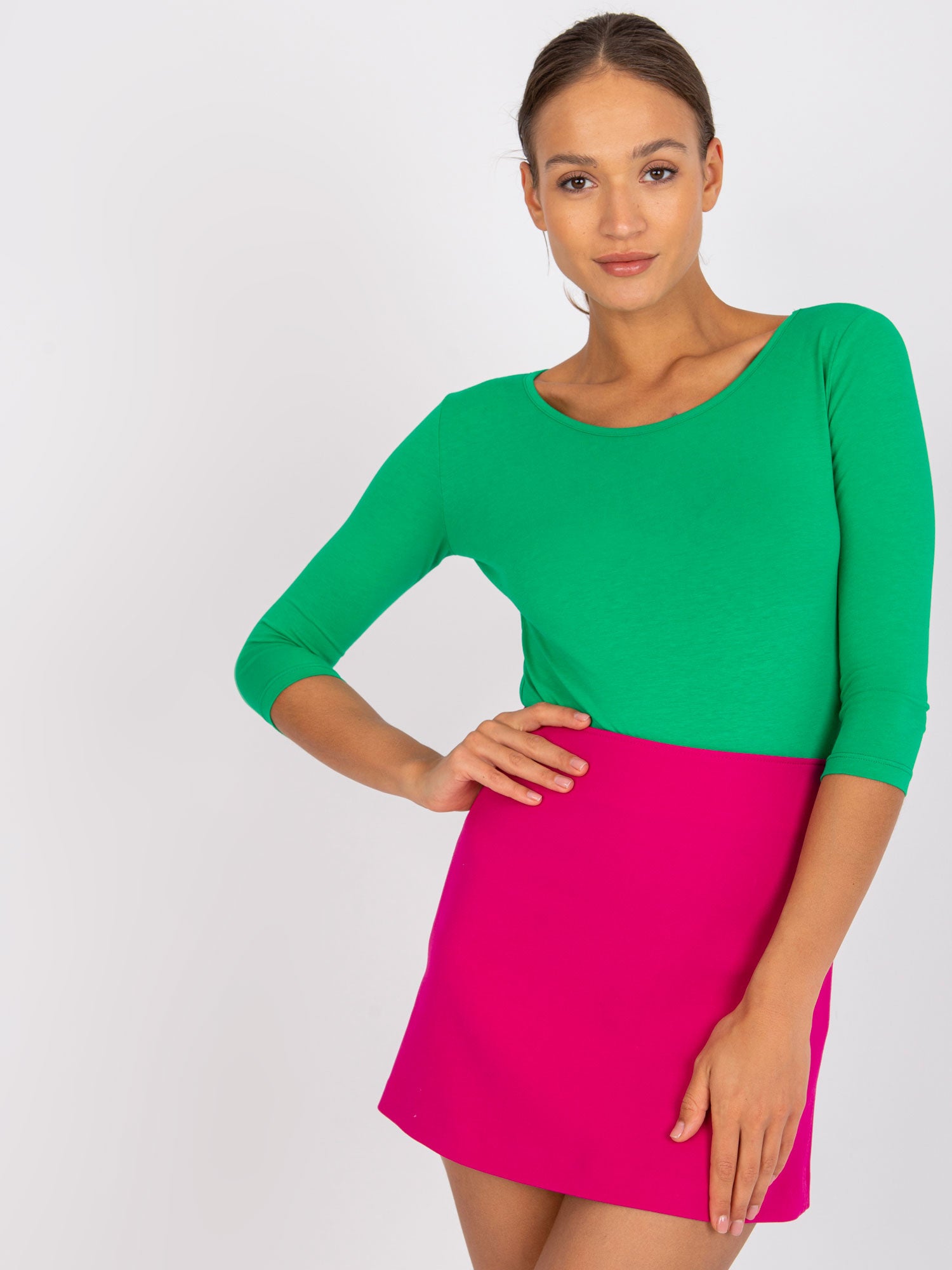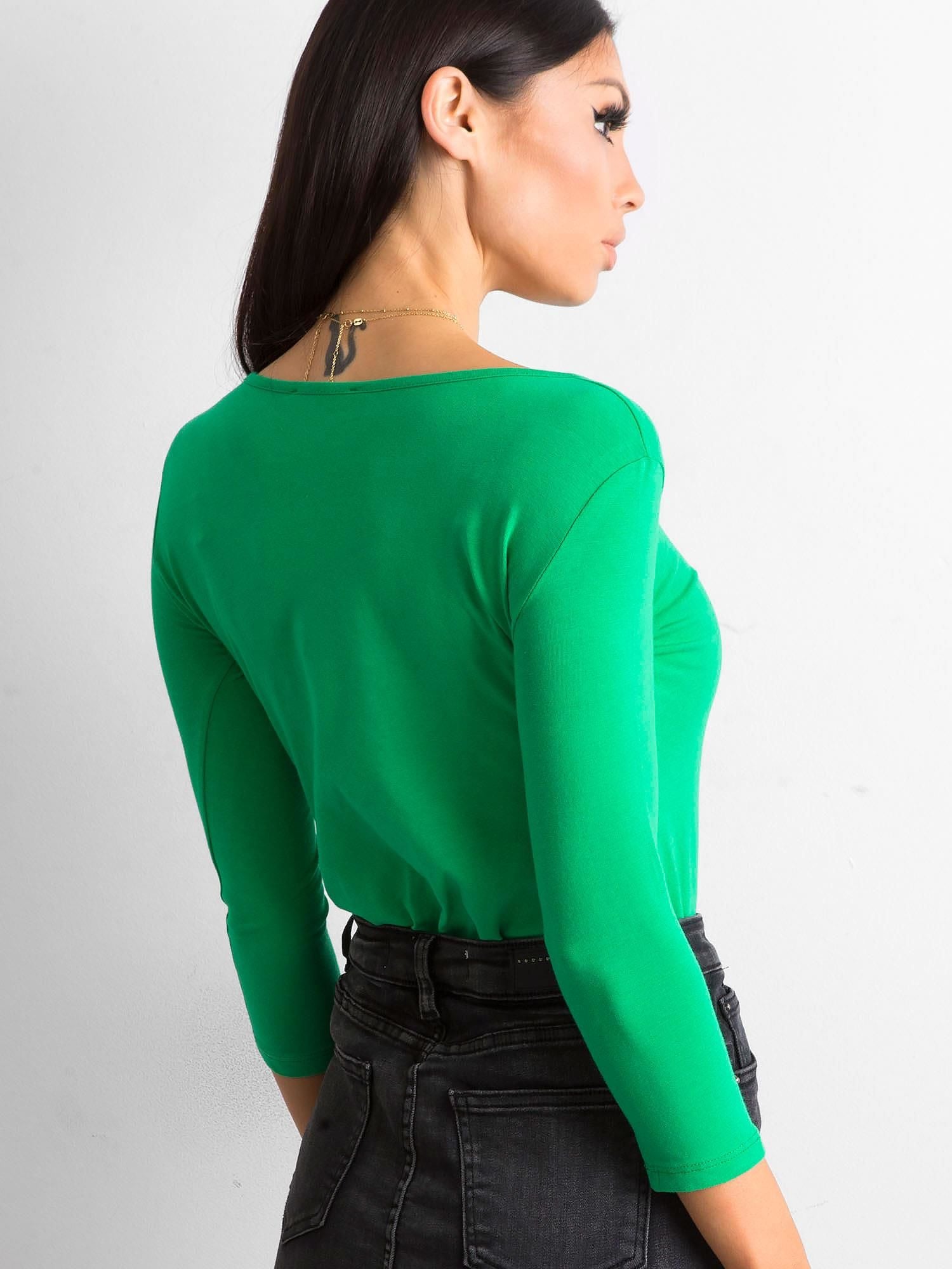 Zielona bluzka basic z bawełny Mona . Gładkie bluzki damskie z bawełny to prawdziwa klasyka w szafach współczesnych kobiet. Warto mieć je w swojej kolekcji, ponieważ przydają nam się często i łatwo dobrać do nich pozostałe elementy garderoby. Ta bluzka basic idealnie wpisuje się w najnowsze trendy i jest bardzo kobieca. Ma komfortowy, odpowiednio wykrojony dekolt oraz najmodniejsze rękawy długości 3/4, zapewniające wygodę podczas codziennych czynności. Bluzka ma też dopasowany do ciała fason, który idealnie przylega do ciała i podkreśla zalety kobiecej sylwetki. Zrobiona jest z wytrzymałych materiałów najwyższej jakości, z których większość stanowi czysta bawełna. Sprawia, to że bluzka basic jest przewiewna i oddychająca, a drobna domieszka elastanu zapewnia jej optymalną miękkość i rozciągliwość. Model dostępny jest w wielu modnych kolorach do wyboru.