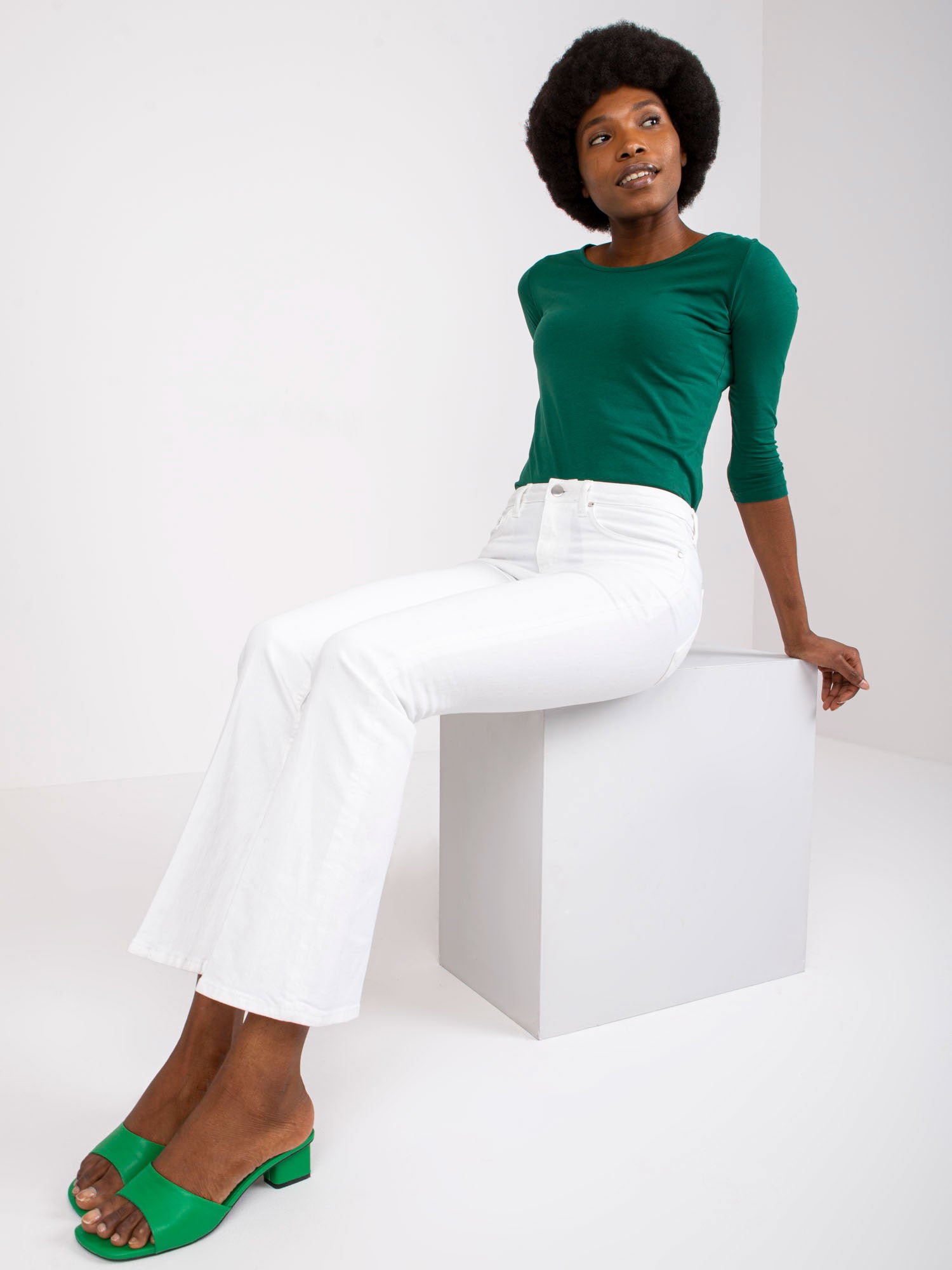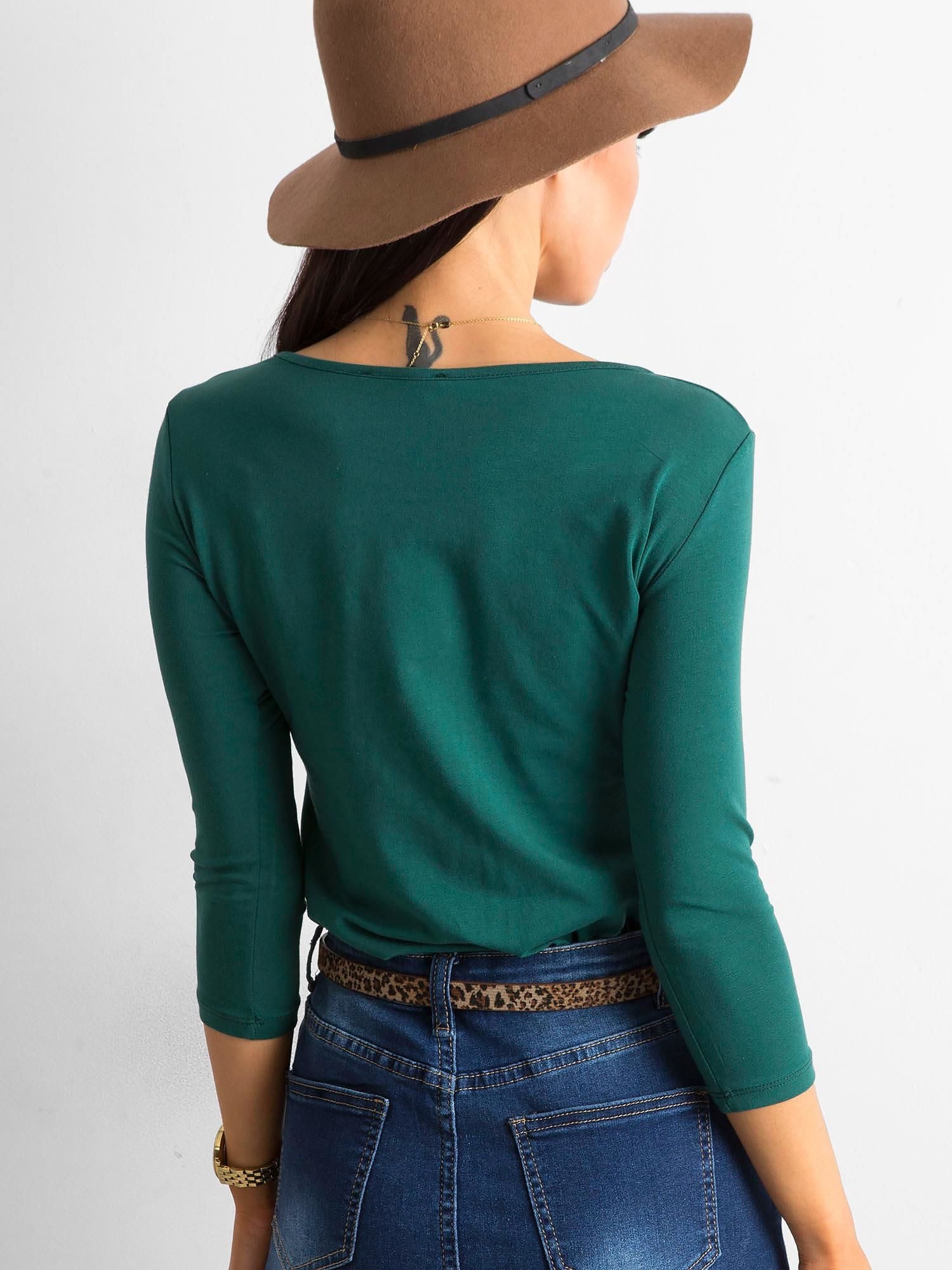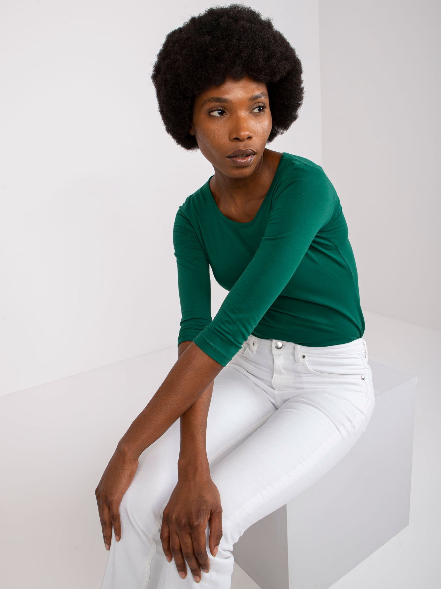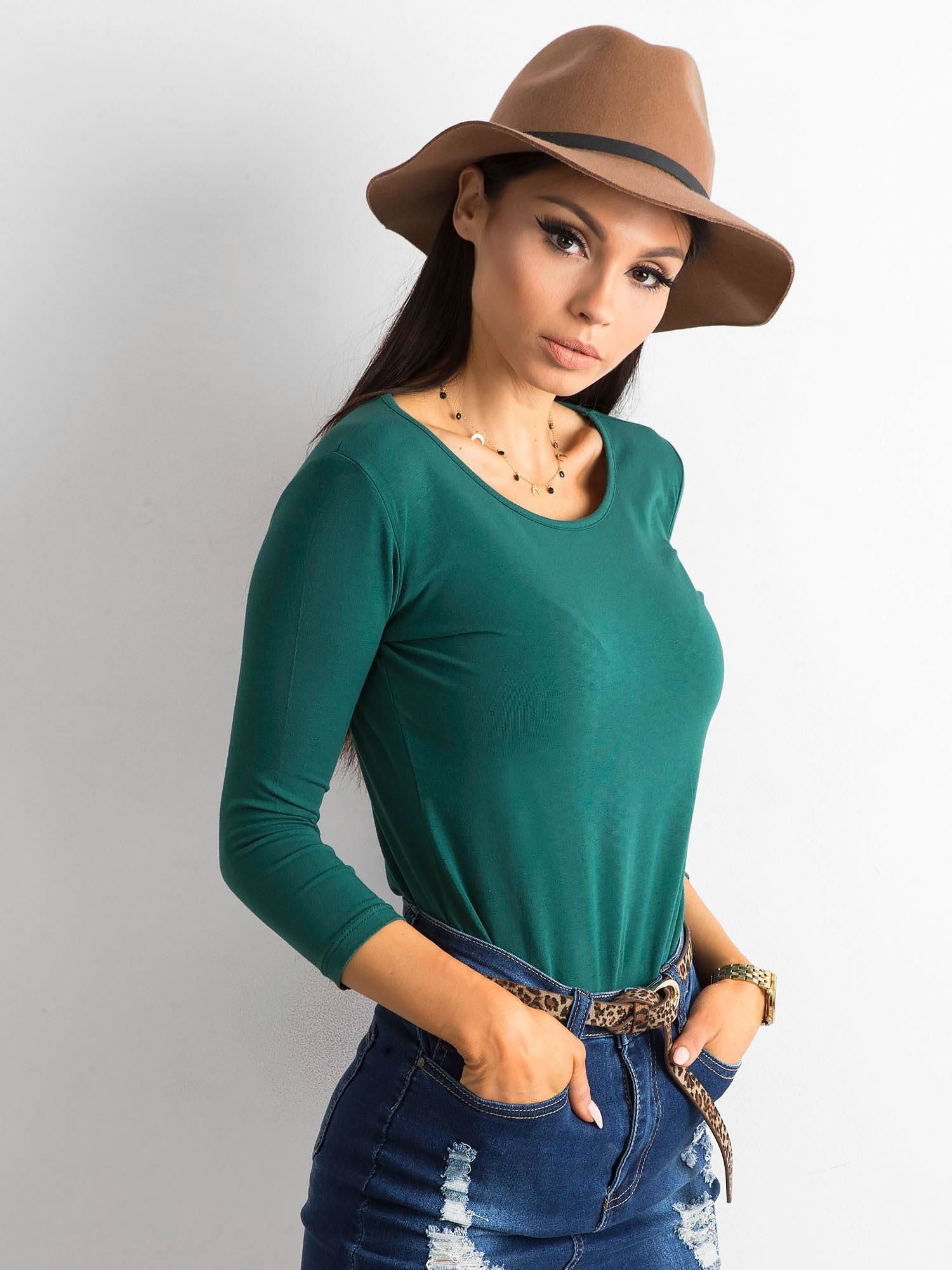 Modnych bluzek basic nigdy nie powinno zabraknąć w Twojej garderobie. Szukasz dla siebie wyjątkowego modelu, który wyróżni Cię na tle innych? Postaw na model z naszej najnowszej kolekcji online. Prezentowany model zachwyca wszechstronnością. Możesz założyć go zarówno do pracy czy na miasto, ale również na oficjalne rodzinne spotkanie. Bluzka basic posiada klasyczny okrągły dekolt oraz wygodne rękawy o długości 3/4. Dzięki swojej ponadczasowej formie pasują do różnorodnych typów odzieży oraz dodatków. Możesz po nią sięgać niezależnie od okazji. W każdym zestawieniu zaprezentuje pełnię swojego uroku. Jeśli marzy Ci się unikalny look na wieczorne wyjście, koniecznie sięgnij po naszą ciemnozieloną bazową bluzkę i dobierz do niej szykowną plisowaną solejkę oraz buty na obcasie. Całość możesz uzupełnić o złoty naszynik lub bransoletkę. W codziennym wydaniu bawełniana bluzka basic będzie świetnie wyglądała z ciemnymi jeansowymi spodniami oraz botkami. Wielkomiejskiego wdzięku całości doda nonszalancko narzucona na ramiona dzianinowa narzutka. W cieplejsze dni polecamy zestawianie naszego produktu ze zwiewnymi spódniczkami mini, sandałkami i ozdobną opaską we włosach.