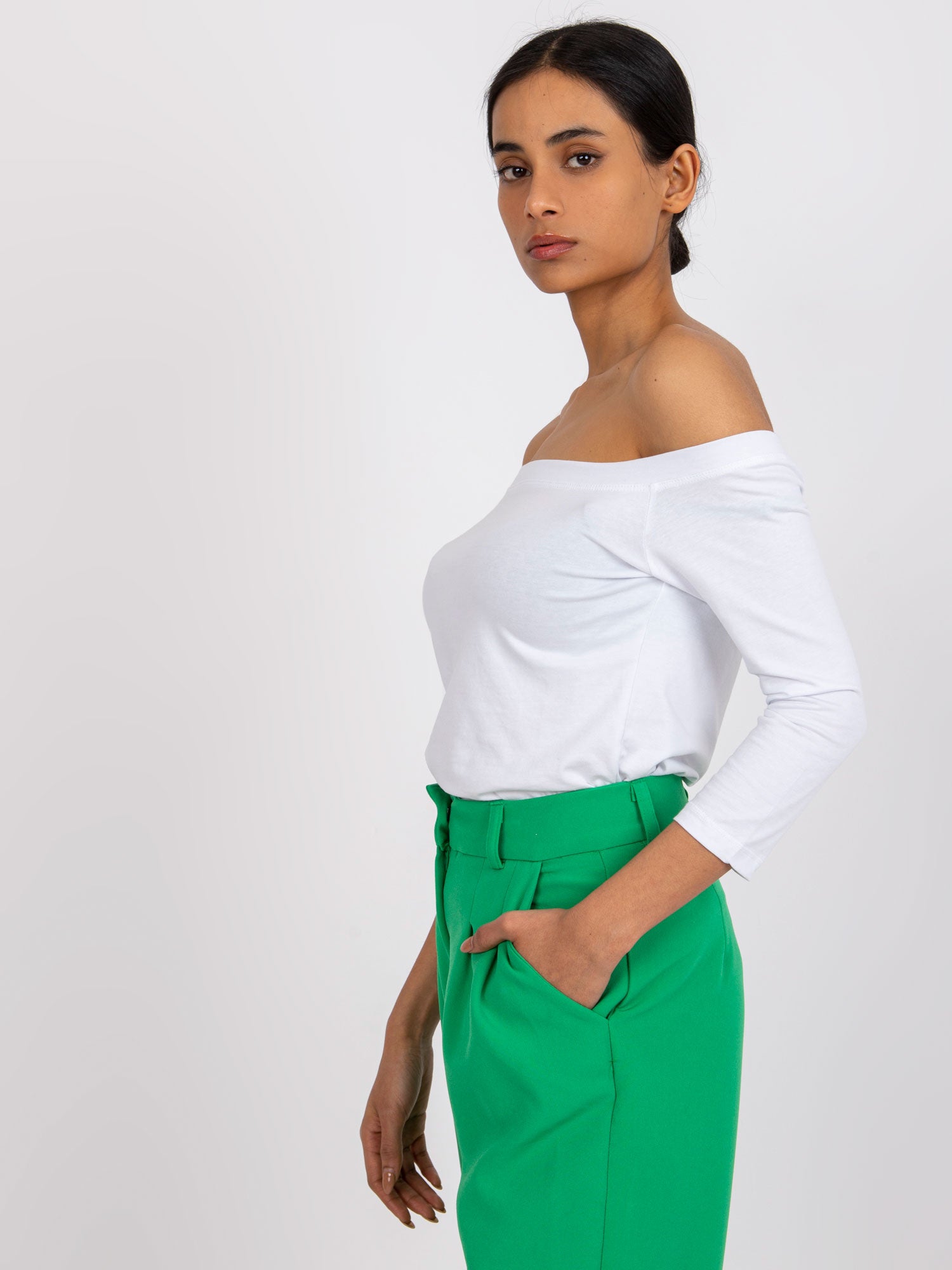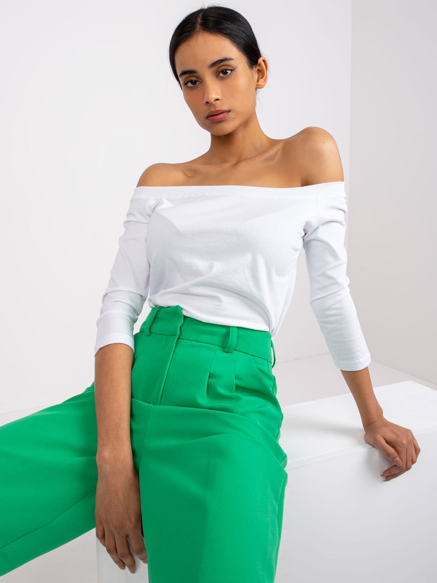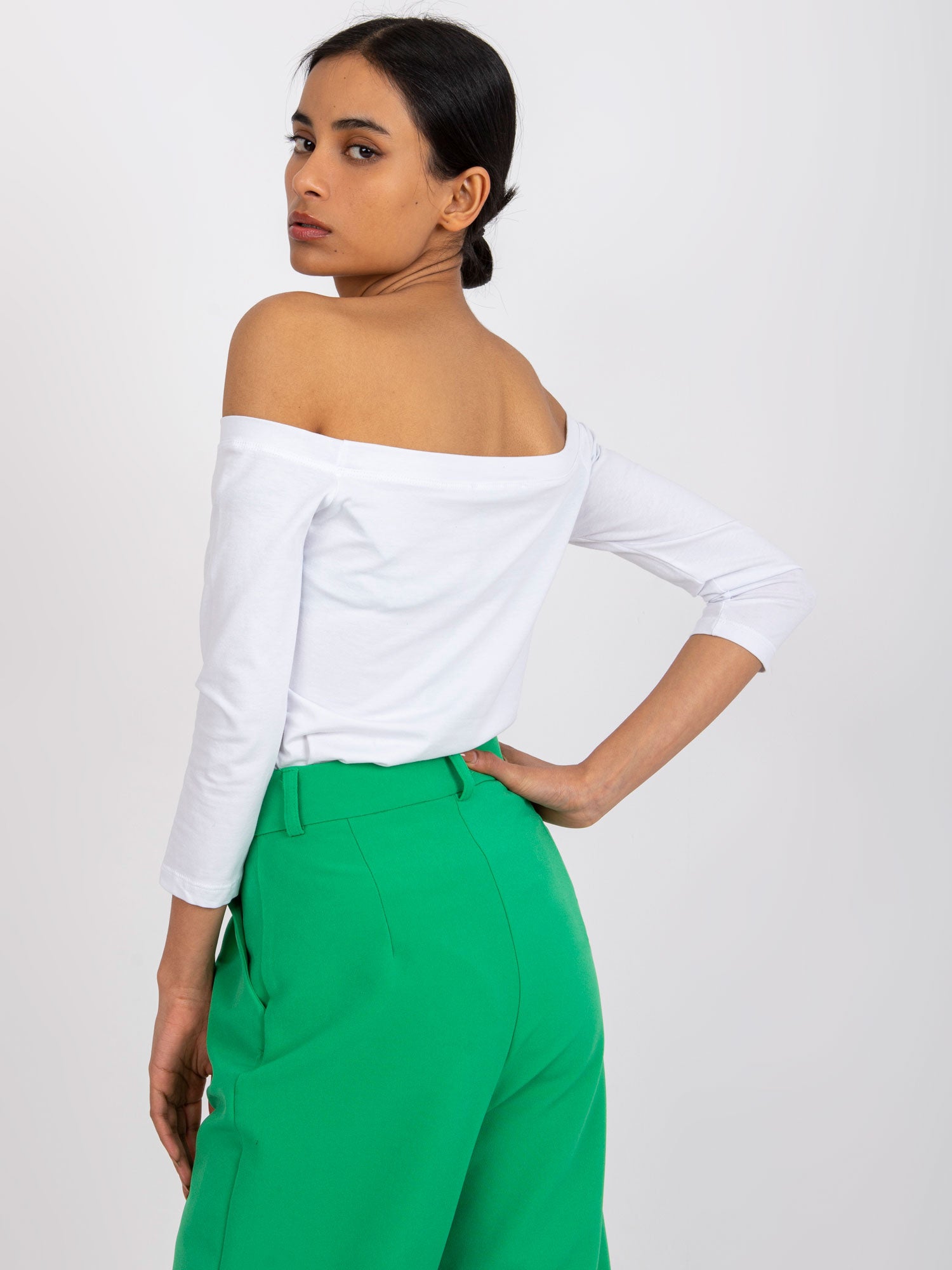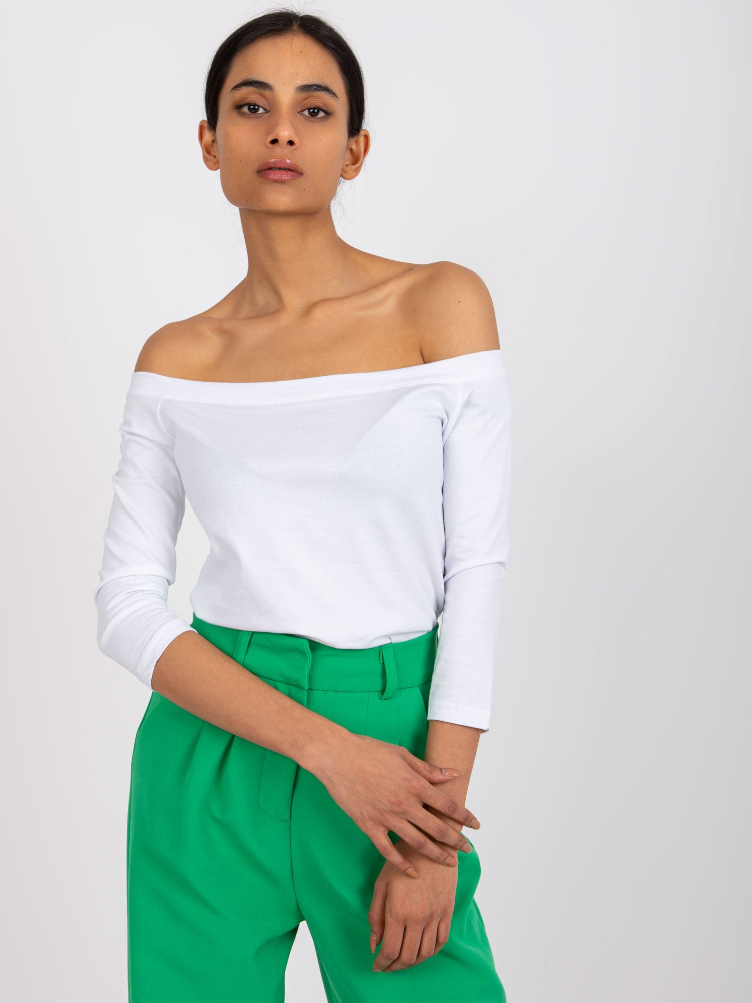 Biała bluzka hiszpanka basic Live . Gładka bluzka to nieodłączny element wielu modnych stylizacji damskich. Dzięki nim możemy łatwo i szybko zbudować look, jaki chcemy bez zbędnego tracenia czasu i niepotrzebnego wysiłku. Ta bluzka basic została zaprojektowana z myślą o kobietach ceniących ubrania podkreślające atuty ciała. Hiszpański dekolt pięknie eksponuje ramiona i szyję, dlatego wygląda bardzo zmysłowo. Bluzka sprawdzi się rewelacyjnie w cieplejsze wiosenne dni oraz w letnie upały. Zrobiona jest z przyjemnego w dotyku materiału, który bardzo dobrze się nosi i jest miły w kontakcie ze skórą. Wysoka zawartość bawełny zapewnia pełne przepuszczanie powietrza przez materiał. Bluzka basic ma dopasowany do sylwetki krój i modne rękawy 3/4, dzięki czemu idealnie wpisuje się w najnowsze trendy.