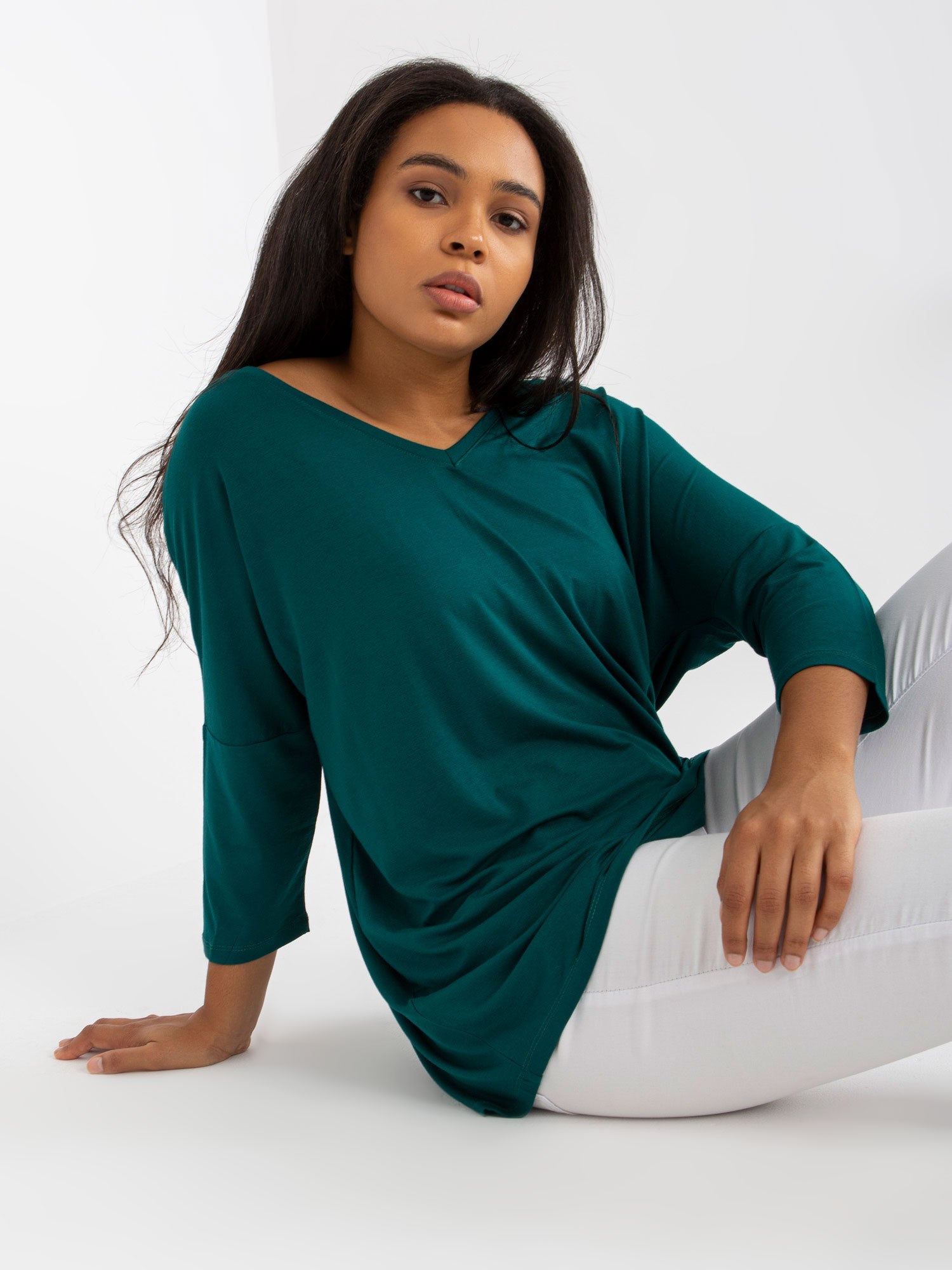 Ciemnozielona gładka bluzka plus size z wiskozy .