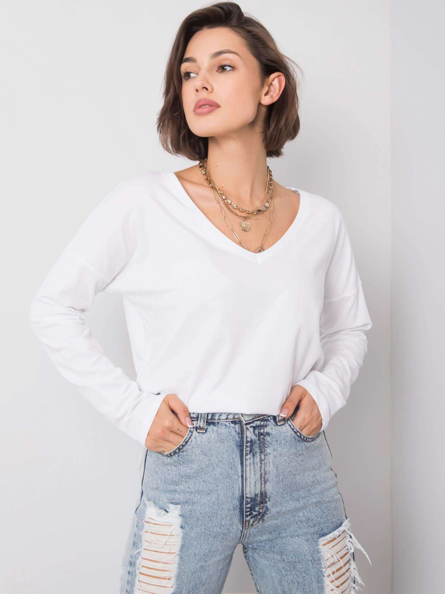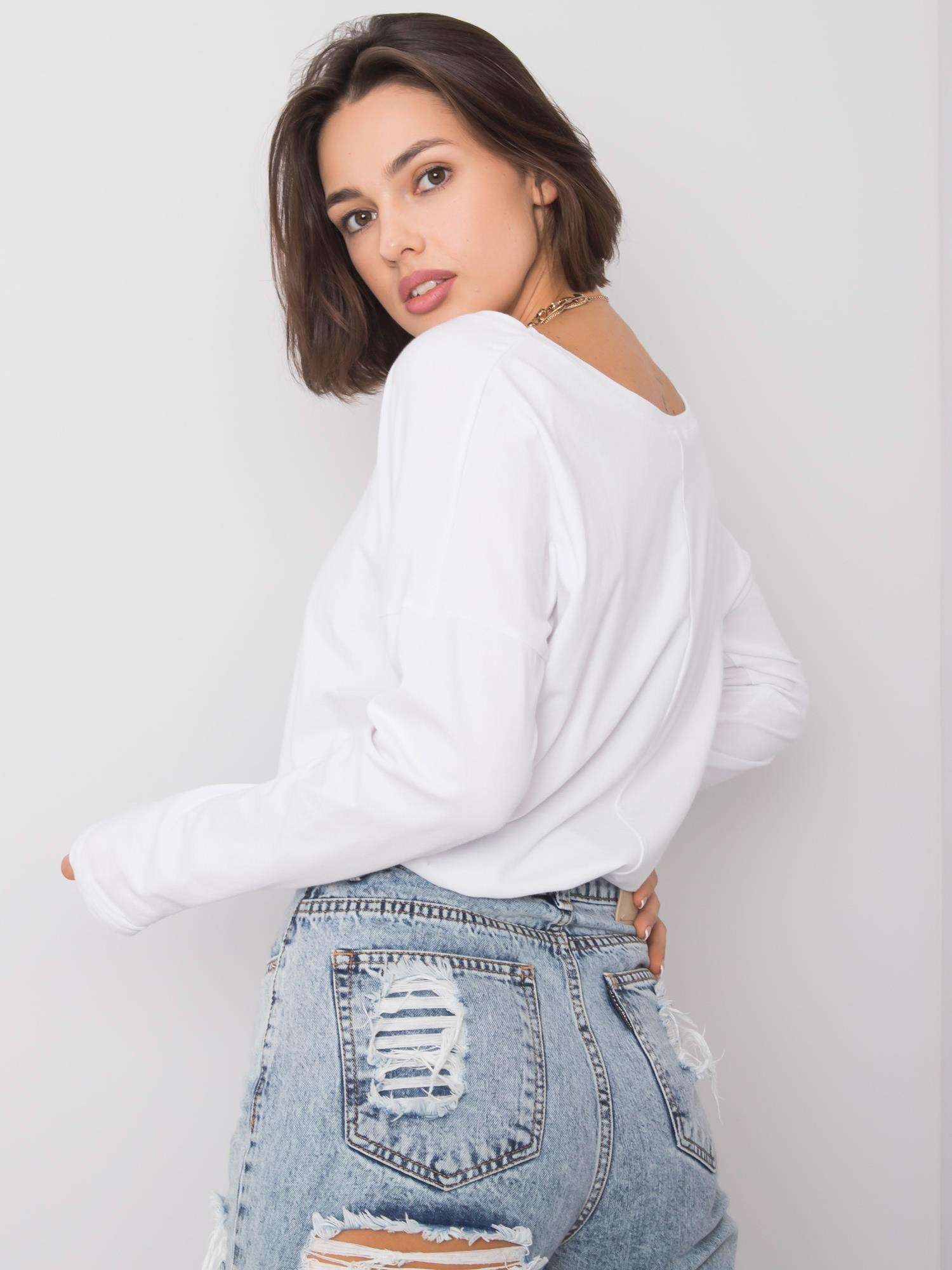 Wymiary bluzki w rozmiarze S mierzone na płasko: szerokość pod pachami - 48 cm, długość całkowita - 61 cm, długość rękawa - 58 cm