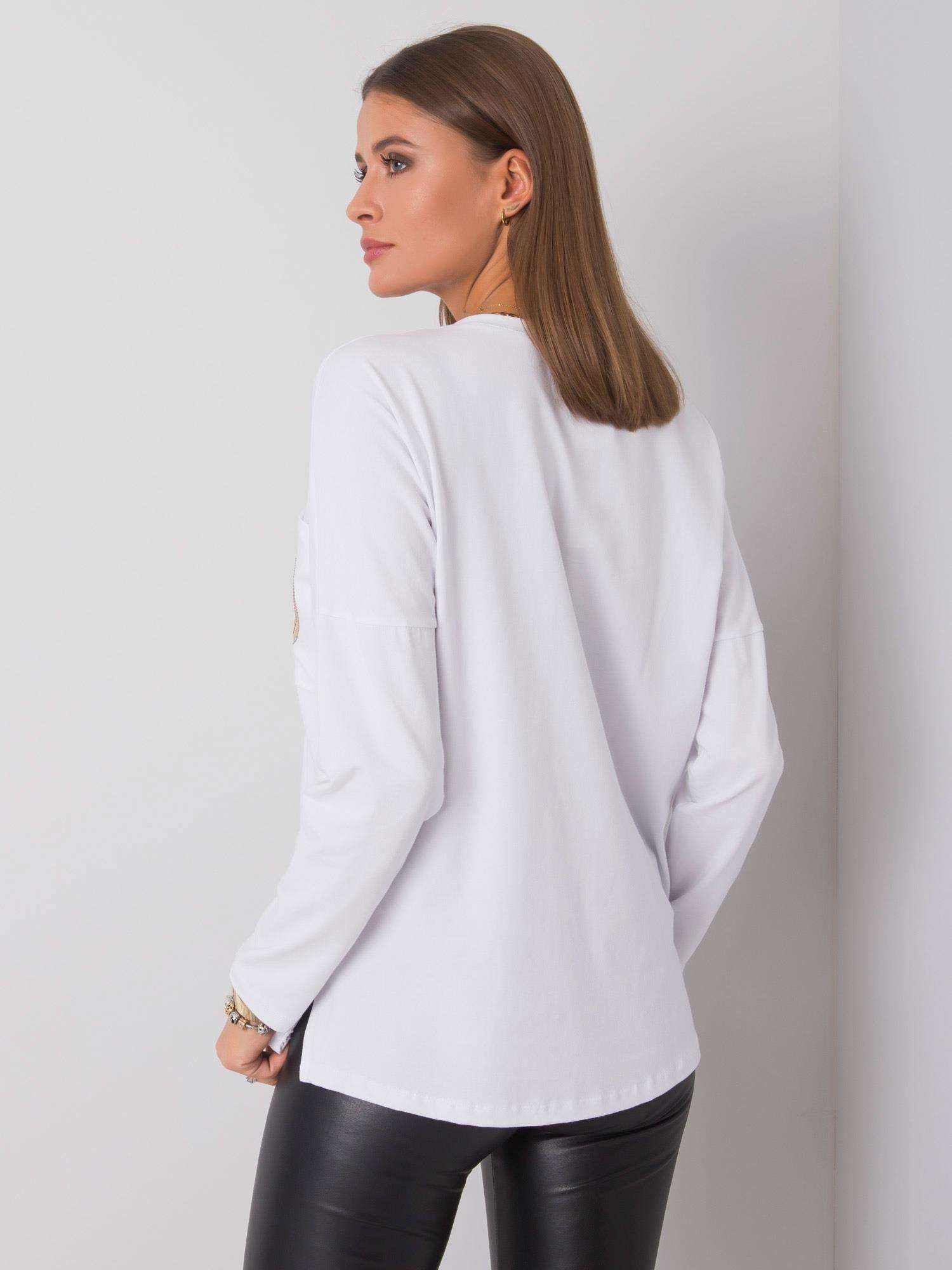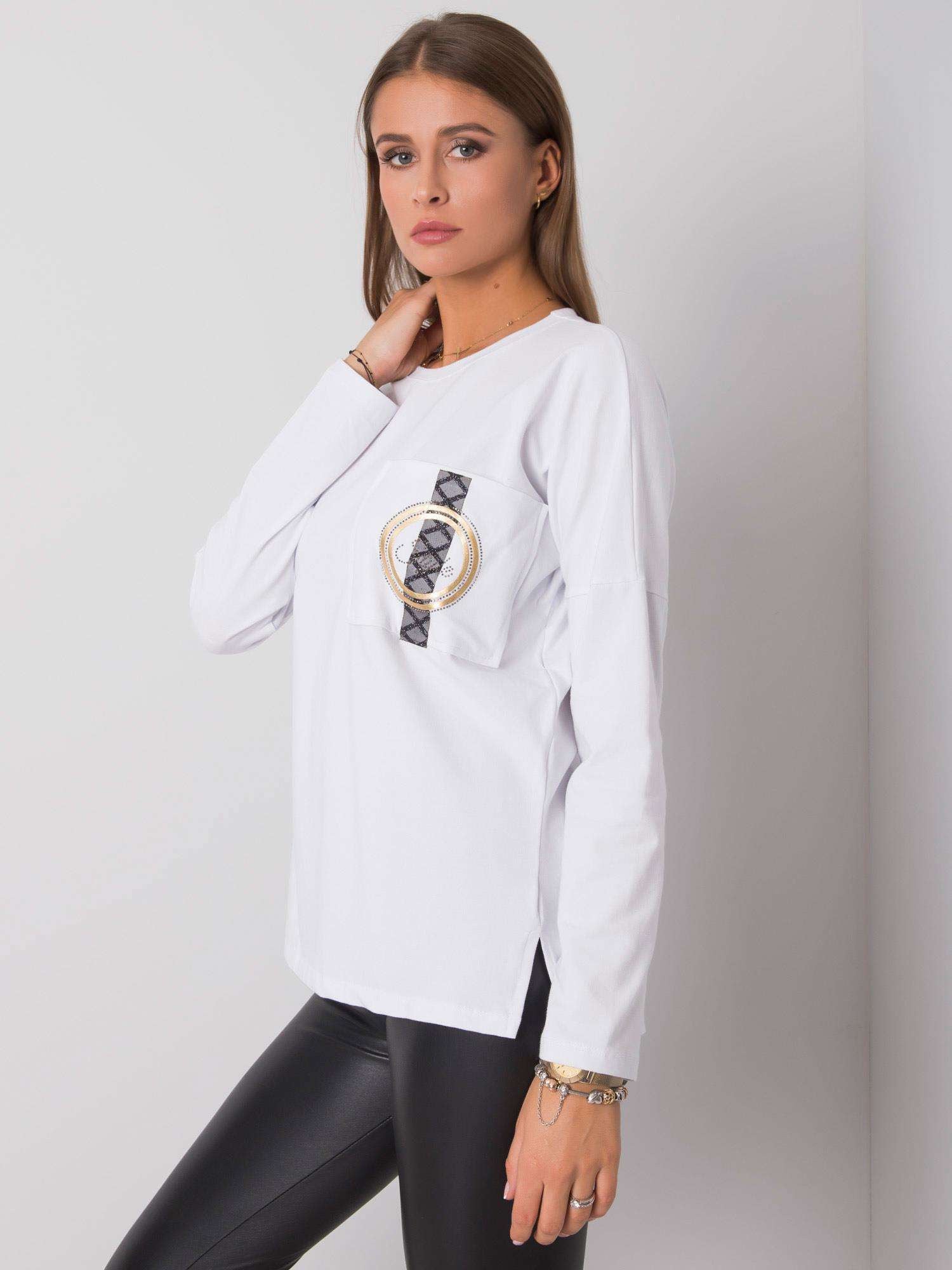 Wymiary bluzki w rozmiarze one size mierzone na płasko: szerokość pod pachami - 61 cm, długość całkowita - 66 cm, długość rękawa - 60 cm