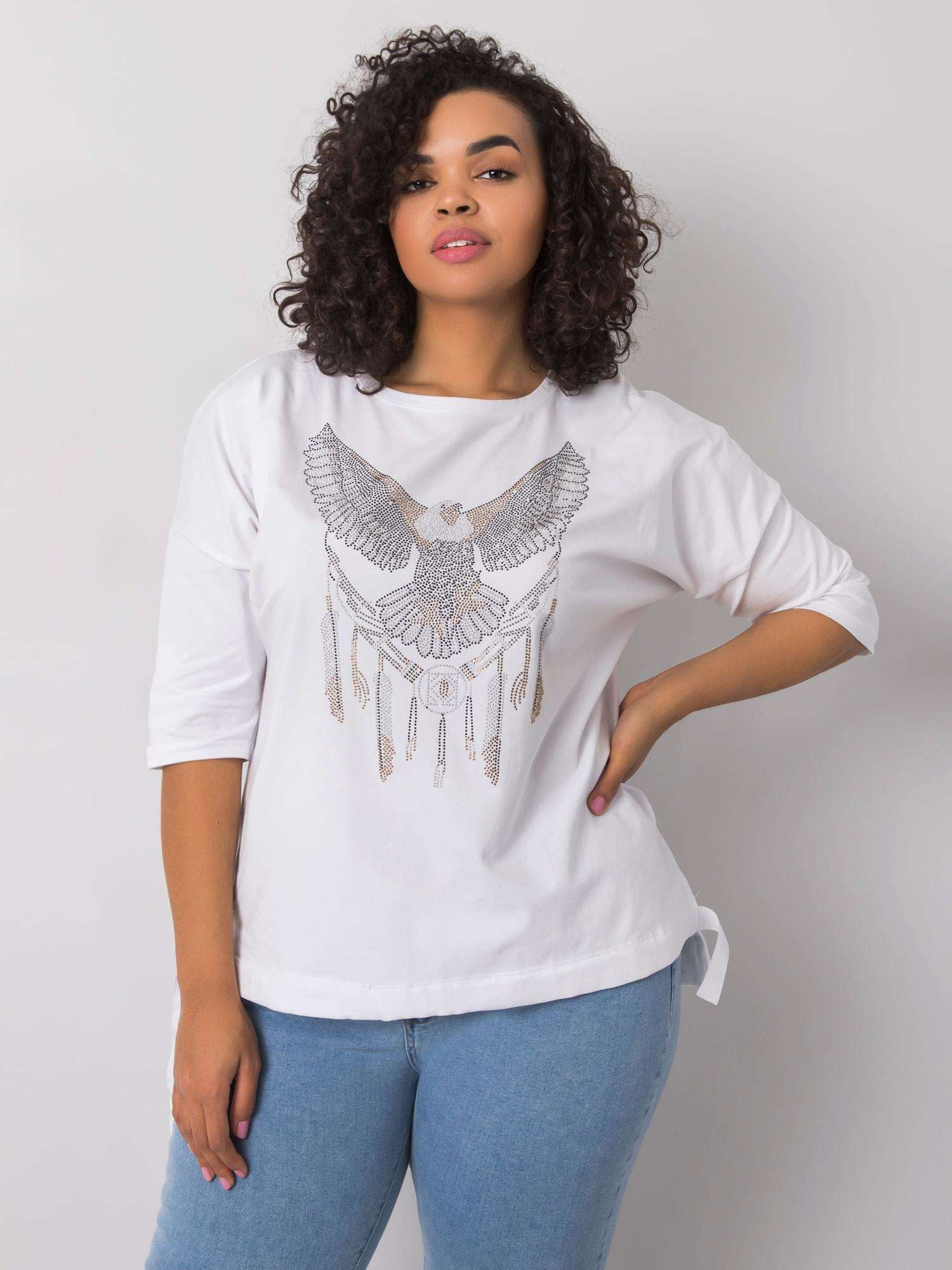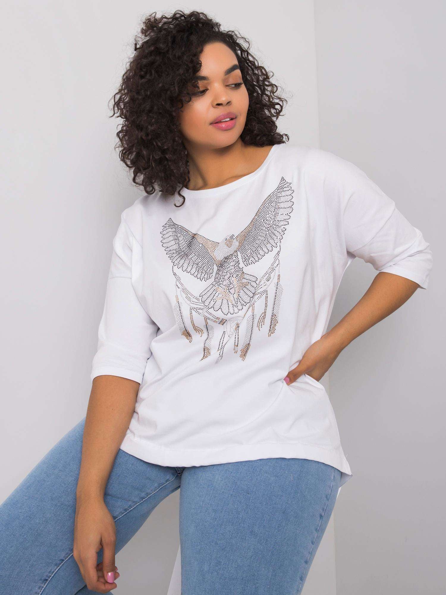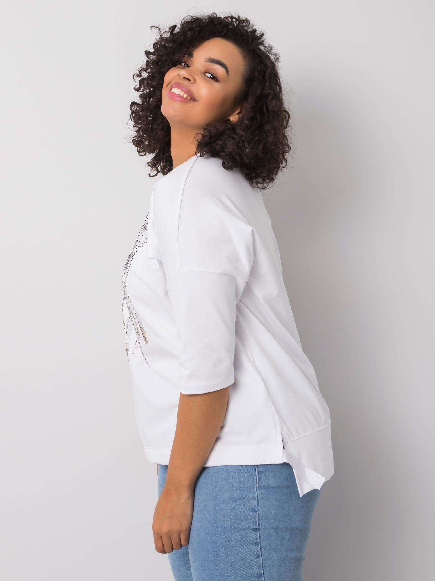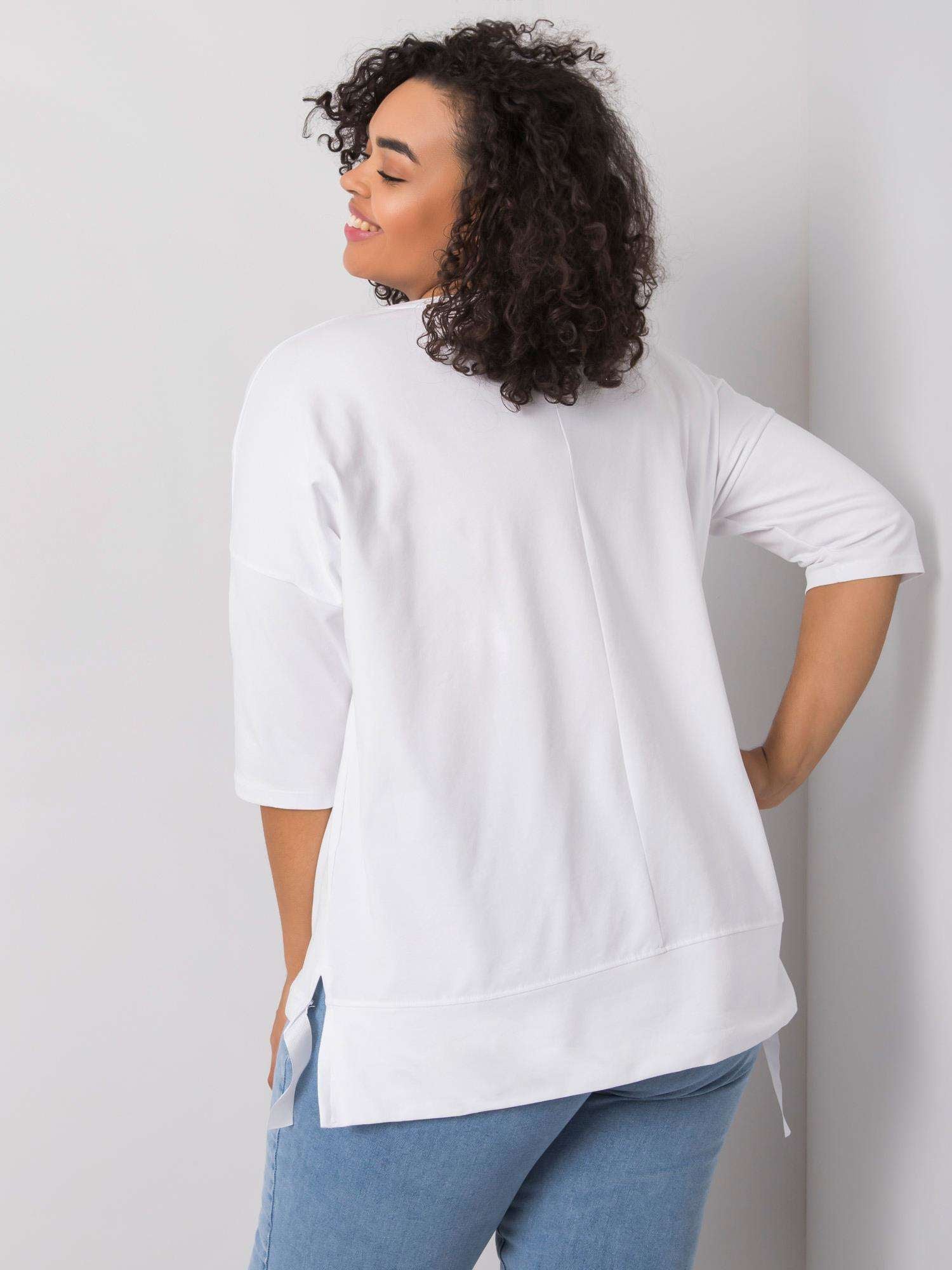 Wymiary bluzki w rozmiarze one size mierzone na płasko: szerokość pod pachami - 65 cm, długość całkowita - 73 cm, długość rękawa - 37 cm