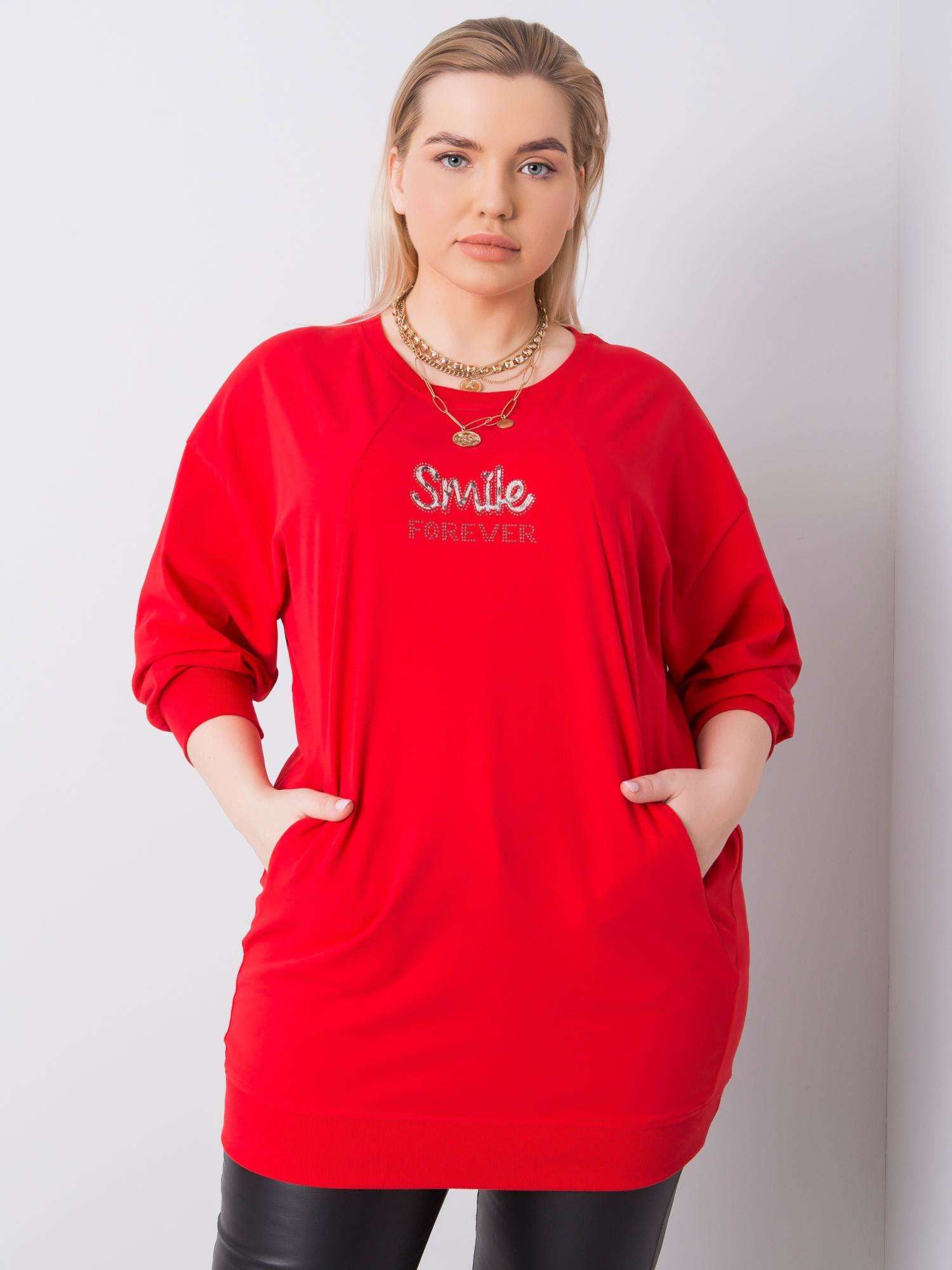 Czerwona bluzka plus size z bawełny.