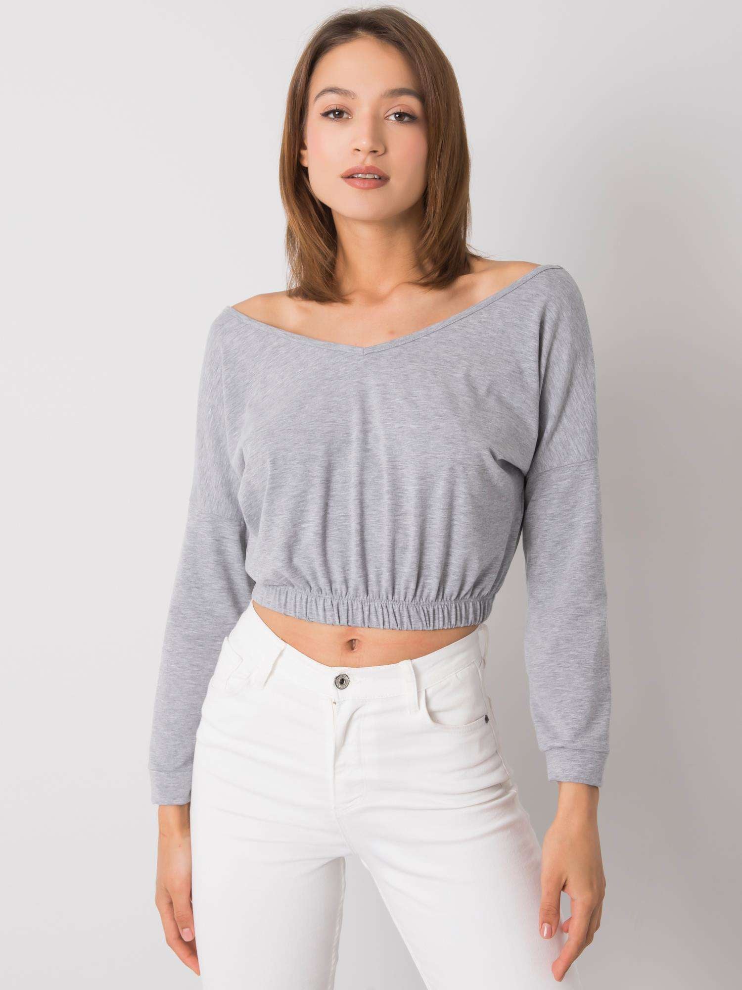 RUE PARIS Szara melanżowa bluzka z długim rękawem.