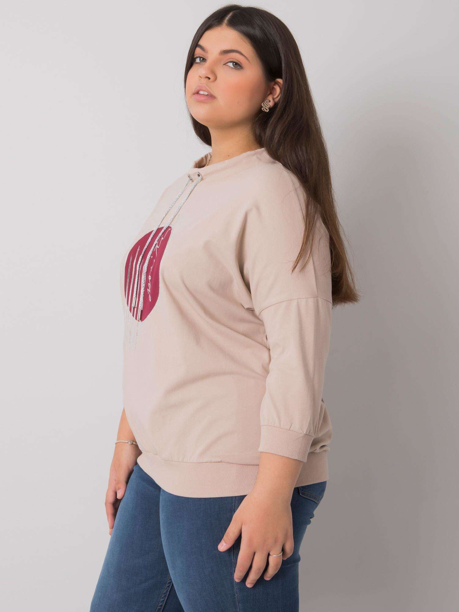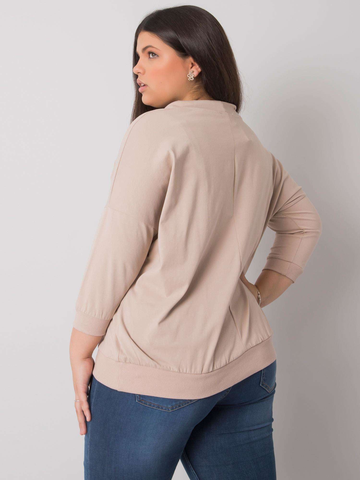 Wymiary bluzki w rozmiarze one size mierzone na płasko: szerokość pod pachami - 68 cm, długość całkowita - 66 cm, długość rękawa - 45 cm.