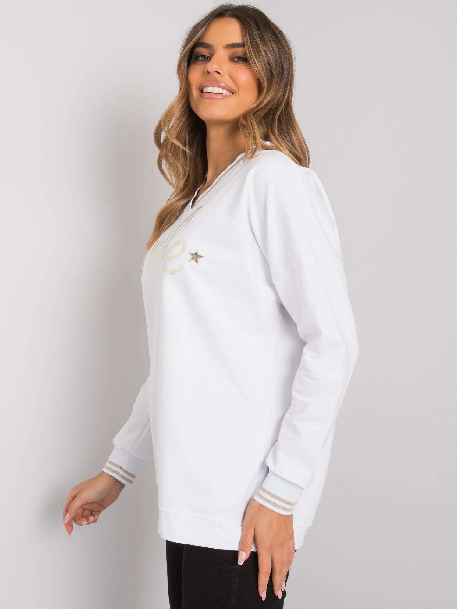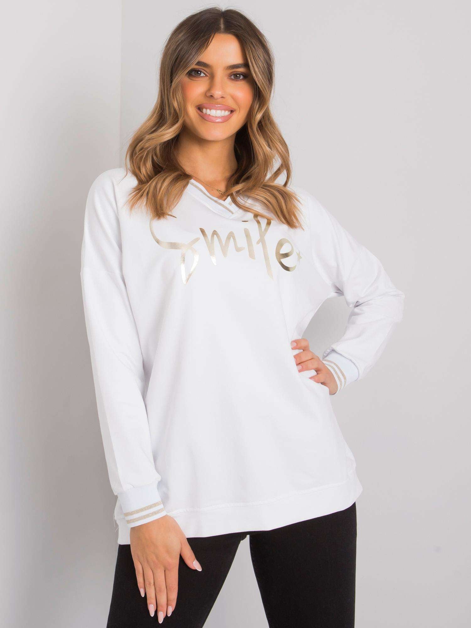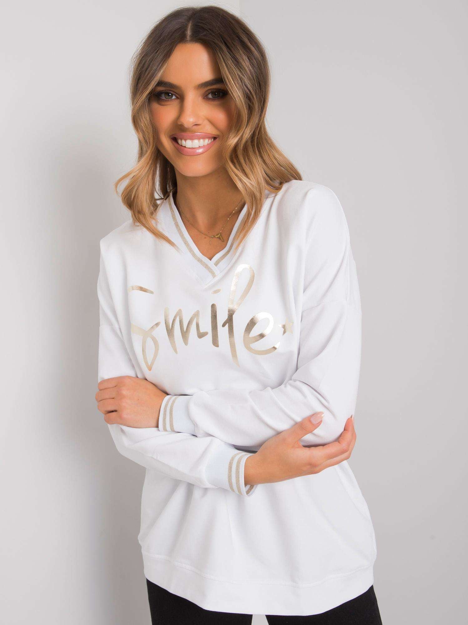 RUE PARIS Biała bluzka damska z nadrukiem.