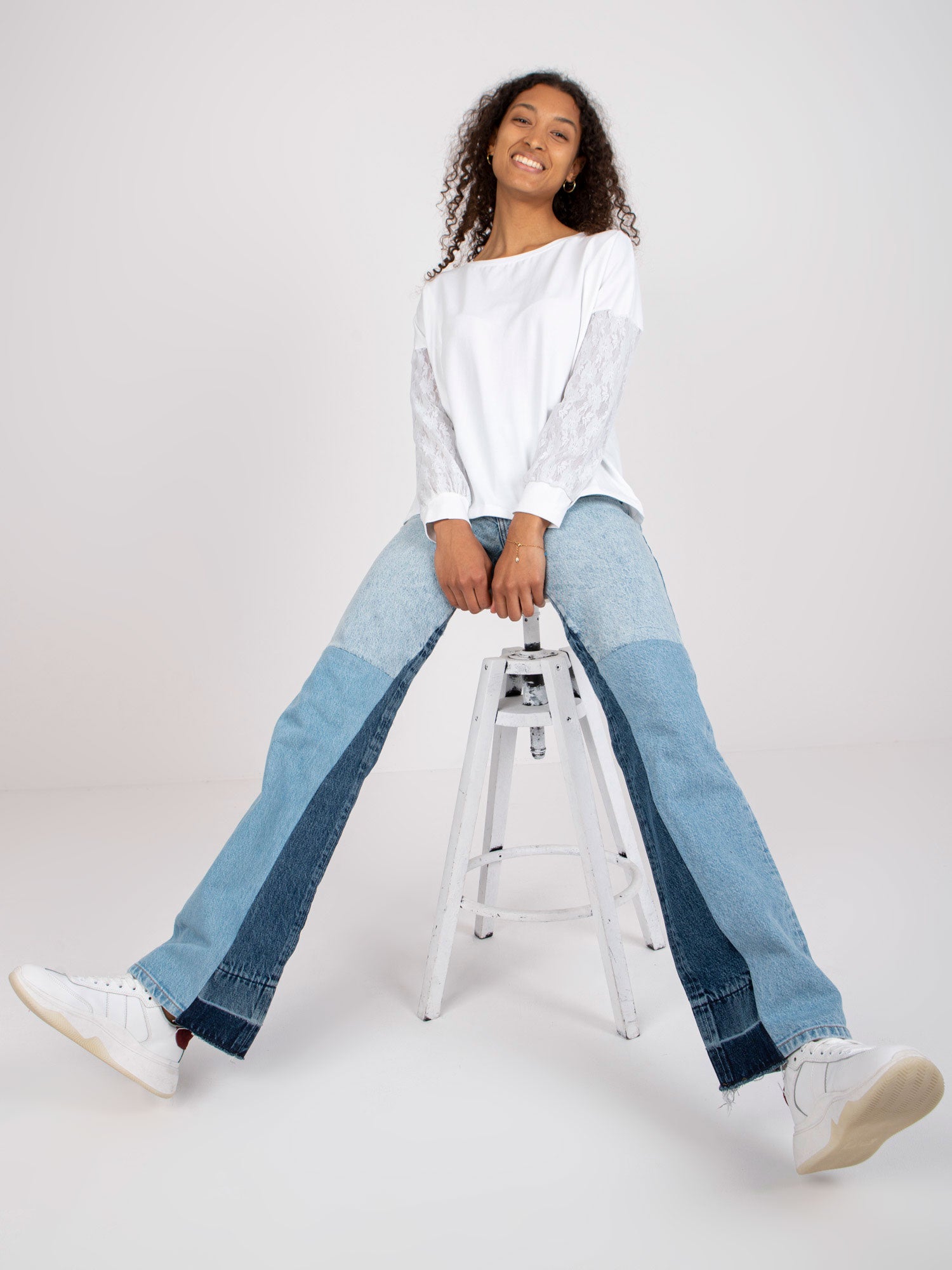 Wymiary bluzki w rozmiarze S/M mierzone na płasko: szerokość pod pachami - 57 cm, długość całkowita - 62 cm, długość rękawa - 56 cm.